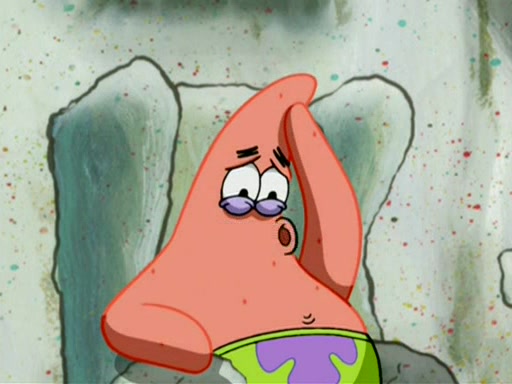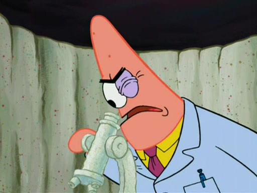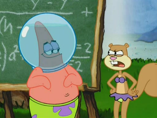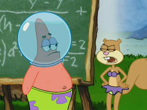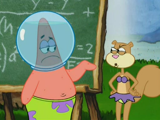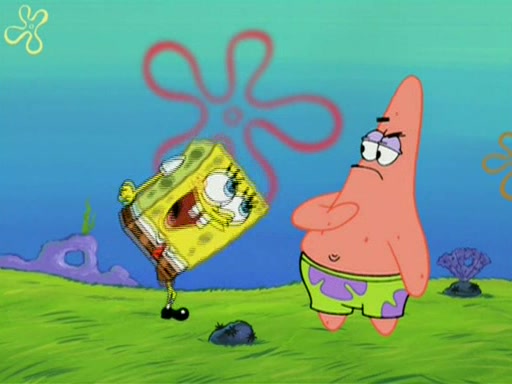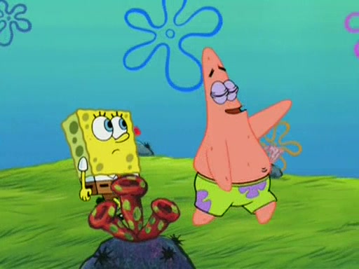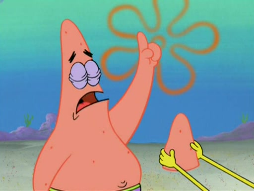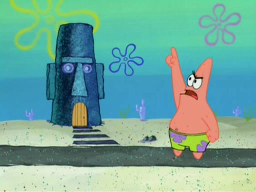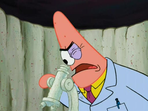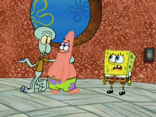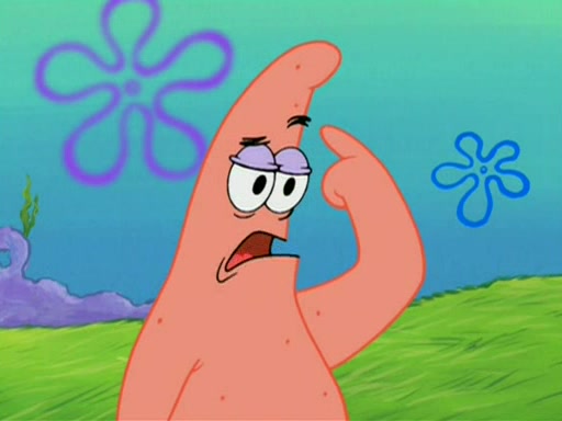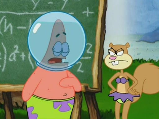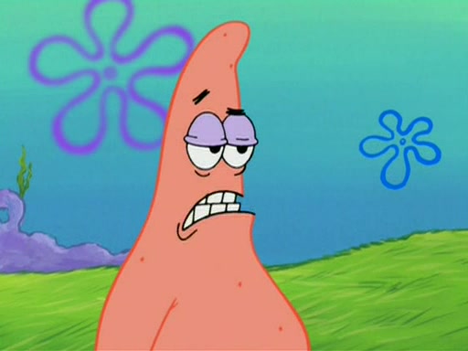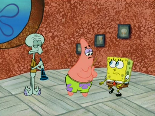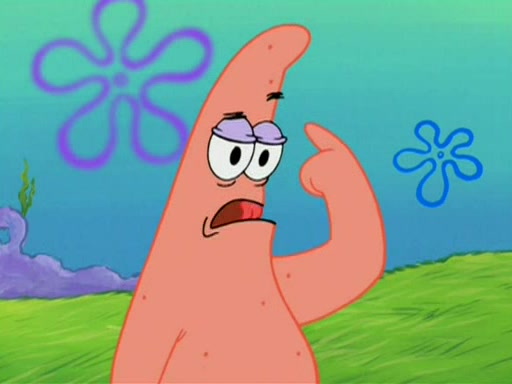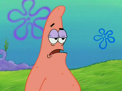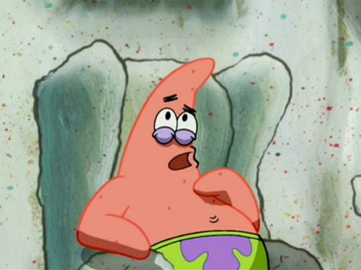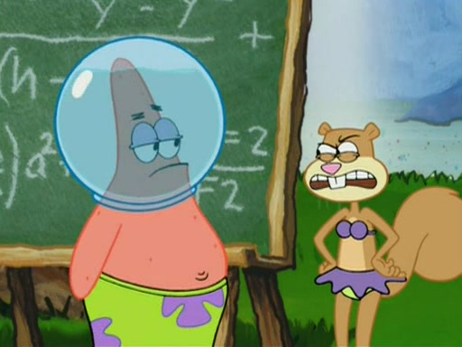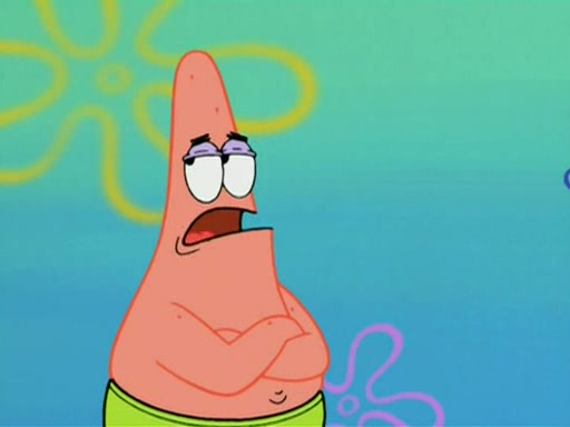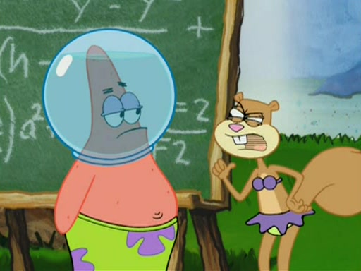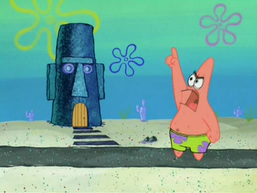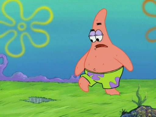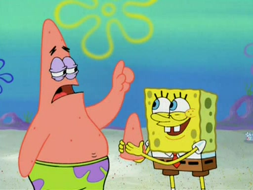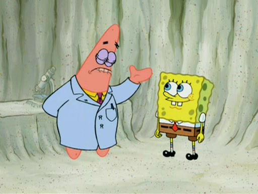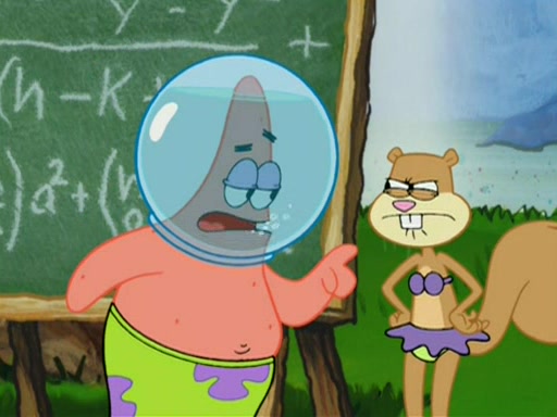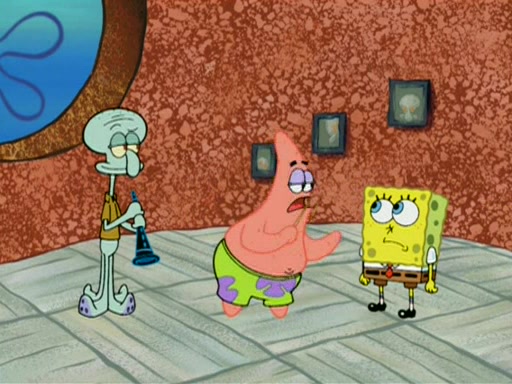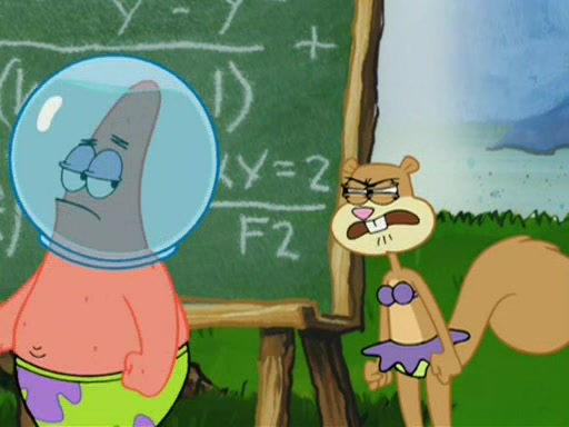 Suddenly, the piece of Brain Coral gains him intelligence. Patrick seems to be interested in nature, work and almost any music when he is intelligent. He loses interest in all the things he and SpongeBob enjoyed, and actually has fun with Squidward and Sandy, until driving them both away with his patronizing attitude (he tells Squidward to find himself a new musical mentor and tells Sandy that she does not have the ability to solve "remedial" equations, causing Sandy to shout "I liked you better when you were a barnacle head!").