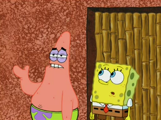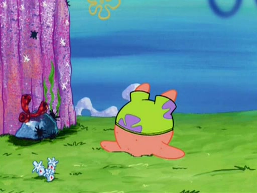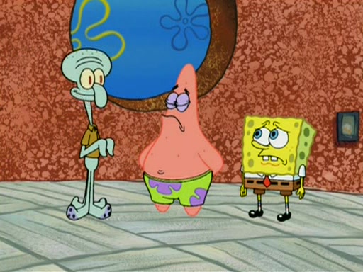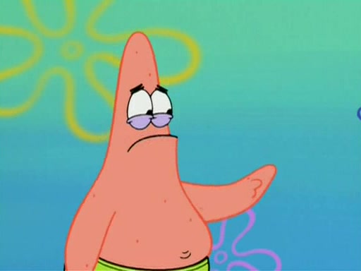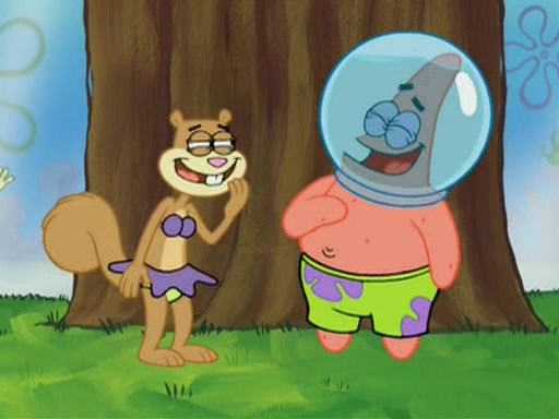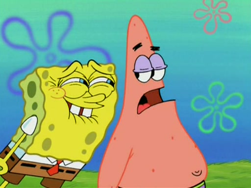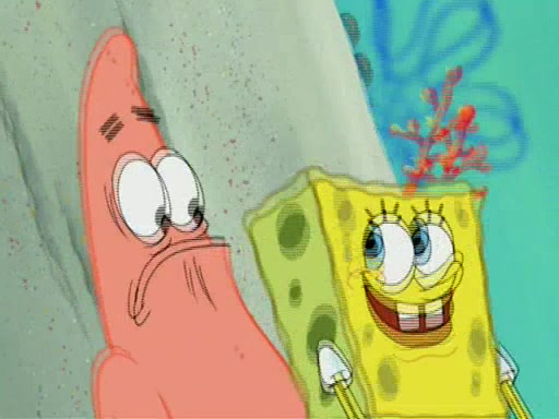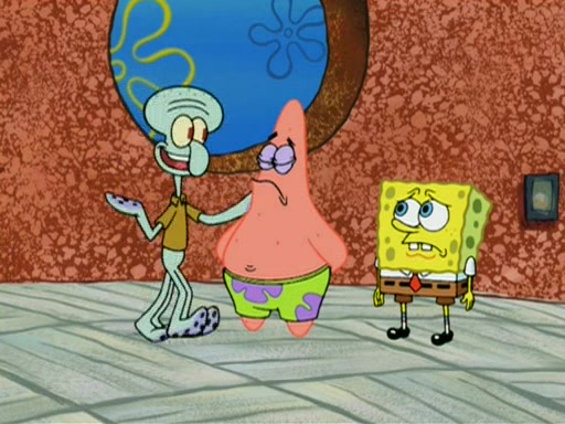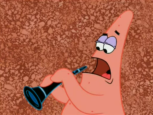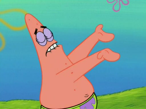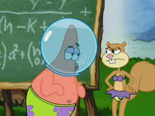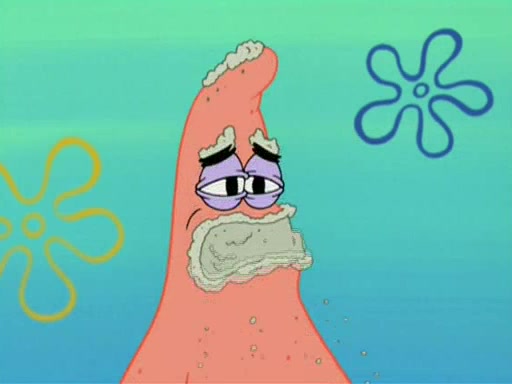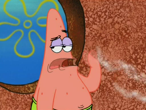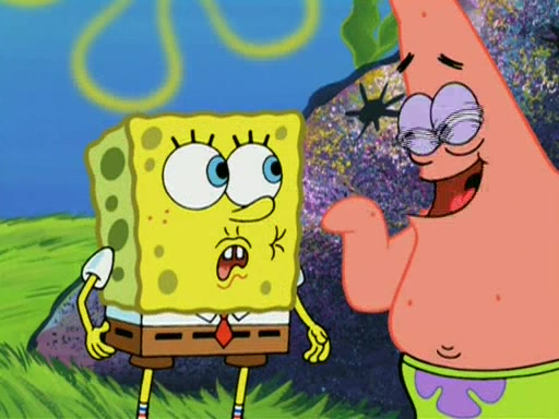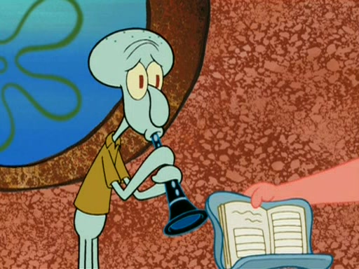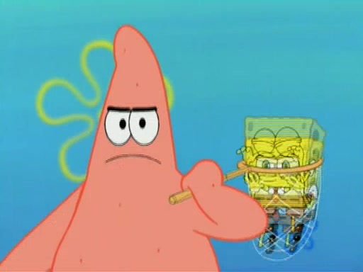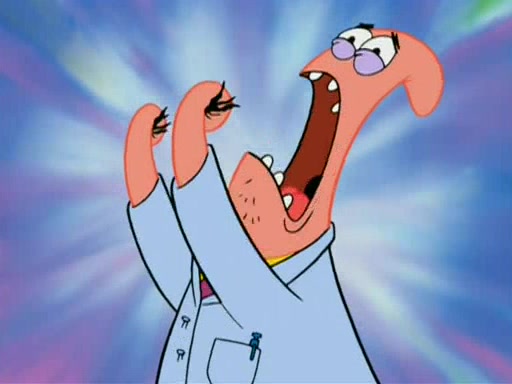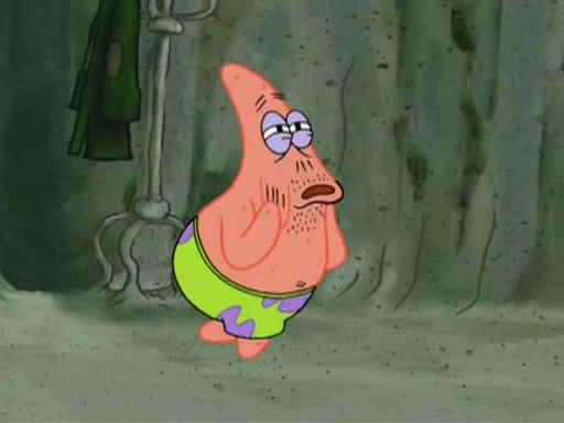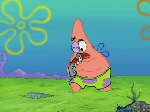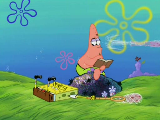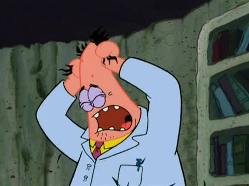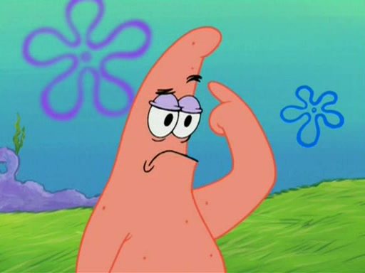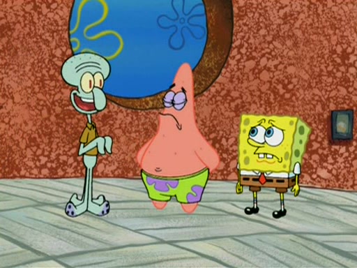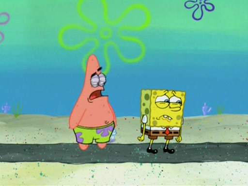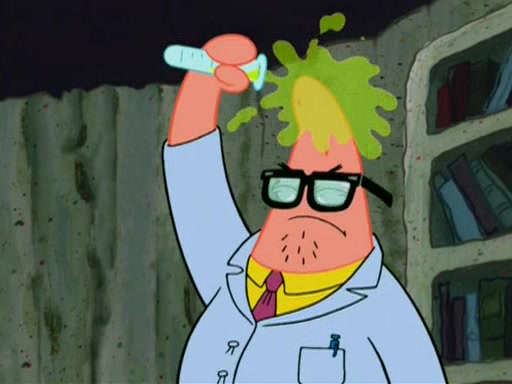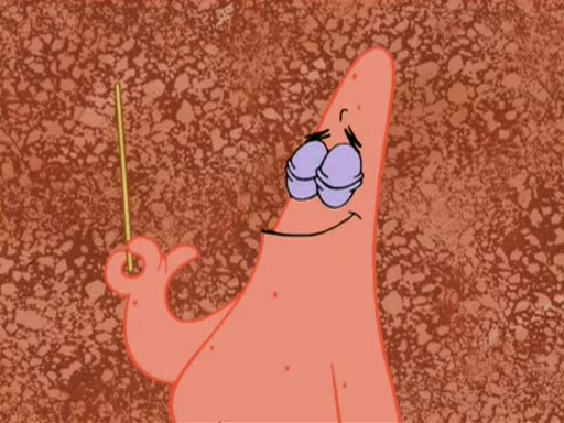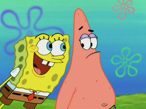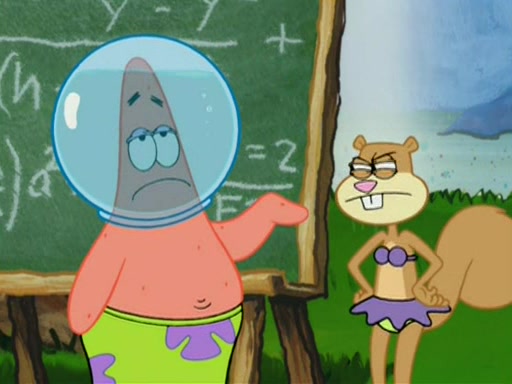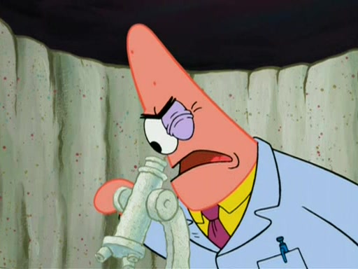 Suddenly, the piece of Brain Coral gains him intelligence. Patrick seems to be interested in nature, work and almost any music when he is intelligent. He loses interest in all the things he and SpongeBob enjoyed, and actually has fun with Squidward and Sandy, until driving them both away with his patronizing attitude (he tells Squidward to find himself a new musical mentor and tells Sandy that she does not have the ability to solve "remedial" equations, causing Sandy to shout "I liked you better when you were a barnacle head!").