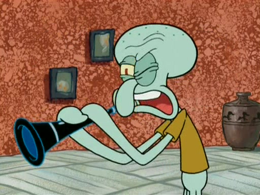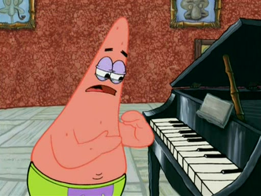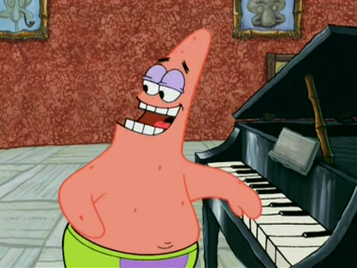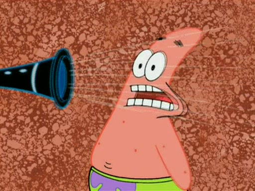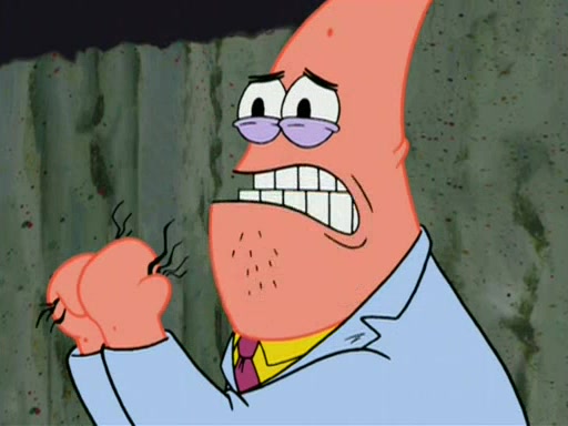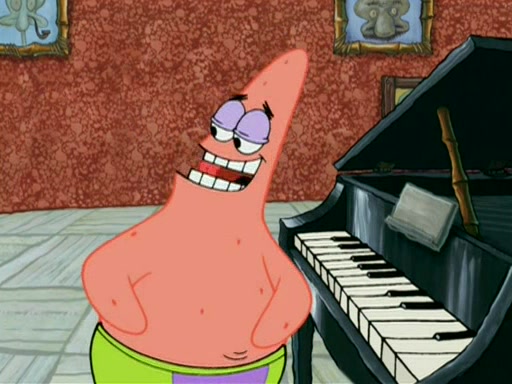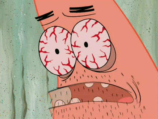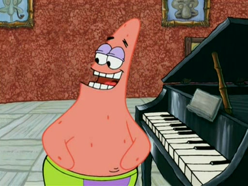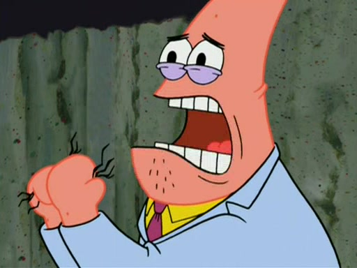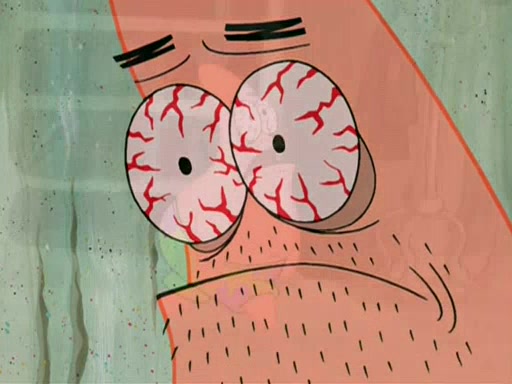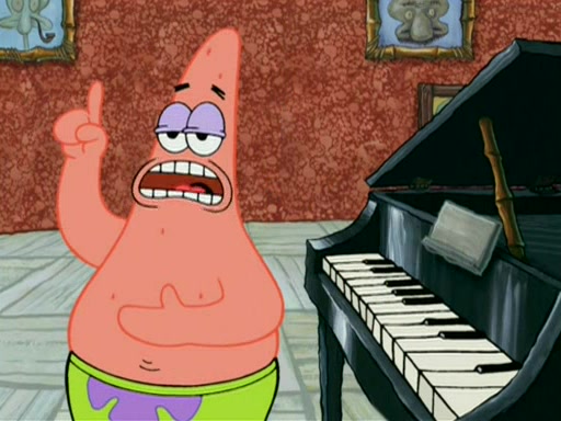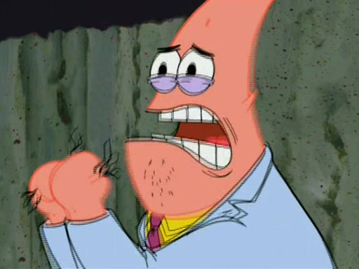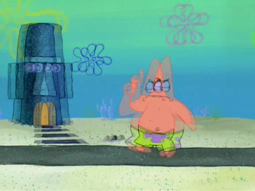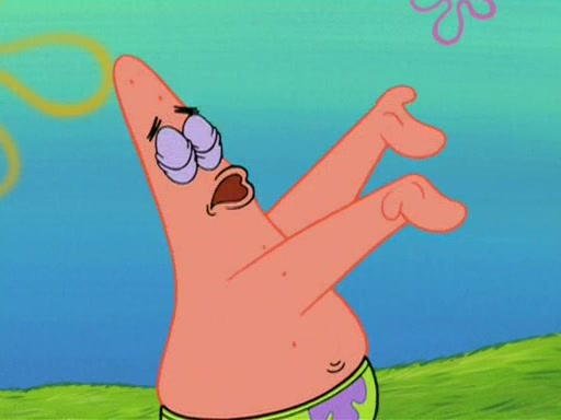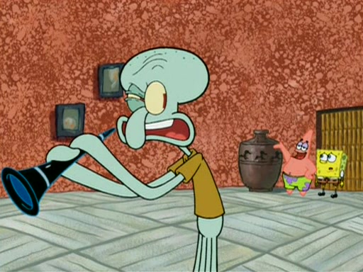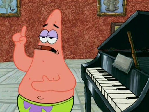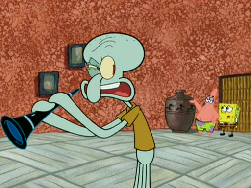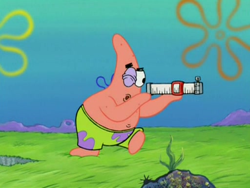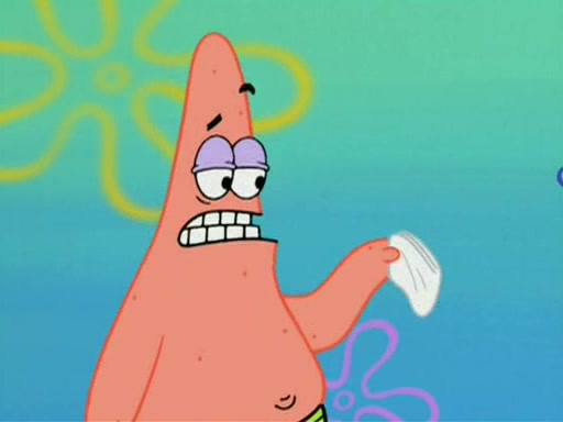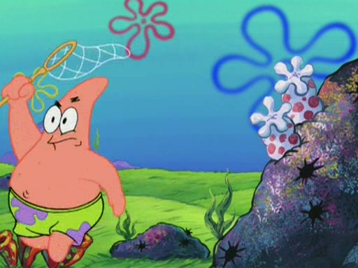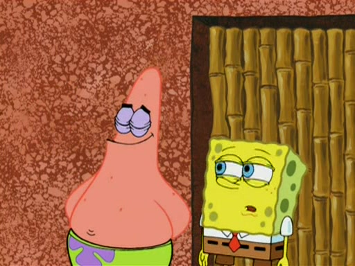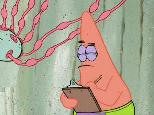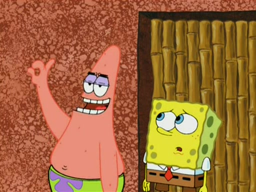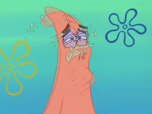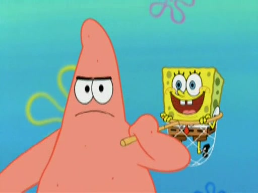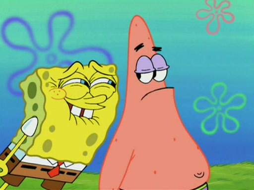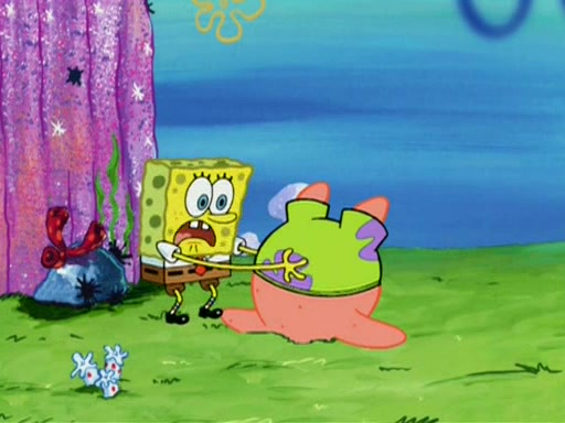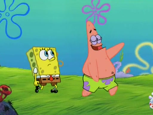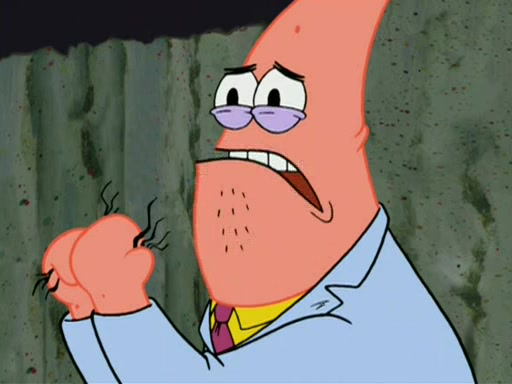 Suddenly, the piece of Brain Coral gains him intelligence. Patrick seems to be interested in nature, work and almost any music when he is intelligent. He loses interest in all the things he and SpongeBob enjoyed, and actually has fun with Squidward and Sandy, until driving them both away with his patronizing attitude (he tells Squidward to find himself a new musical mentor and tells Sandy that she does not have the ability to solve "remedial" equations, causing Sandy to shout "I liked you better when you were a barnacle head!").