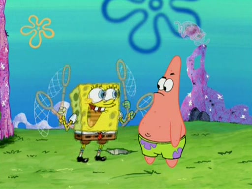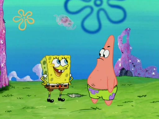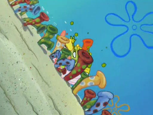 SpongeBob and Patrick are having fun at Jellyfish Fields. Patrick accidentally falls down a cliff and loses his head. SpongeBob mistakenly picks up a piece of Brain Coral and puts it in a big hole on Patrick's head.