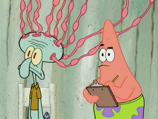 Since he is too hard even for them, Patrick wants to have fun with SpongeBob again. He tries many solutions to solve his problem, such as comparing himself with SpongeBob, meditating, doing research on Squidward, reading books about smarts, and even growing hair, but none of these things work.