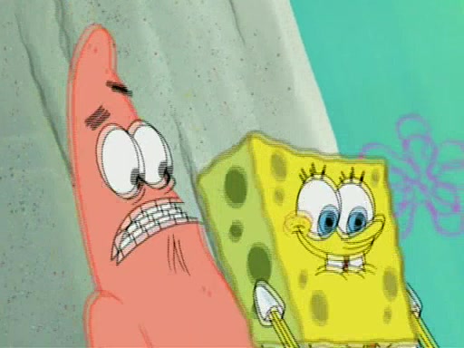 Eventually he kidnaps SpongeBob and tries doing all the activities he used to do. When this doesn't work, he tries to redo his actions by falling off the cliff again. Patrick lets his body remain without a forehead (again), then SpongeBob puts on Patrick's original forehead, which makes him normal again. Then Patrick starts to burp, and SpongeBob and Patrick make loud, obnoxious noices and start giggling and running off.