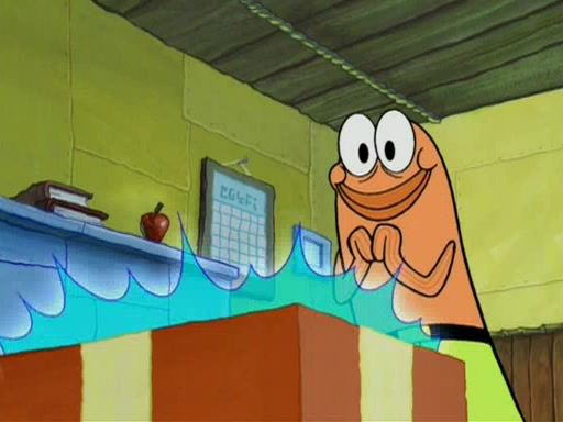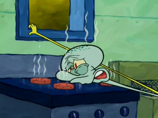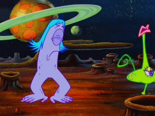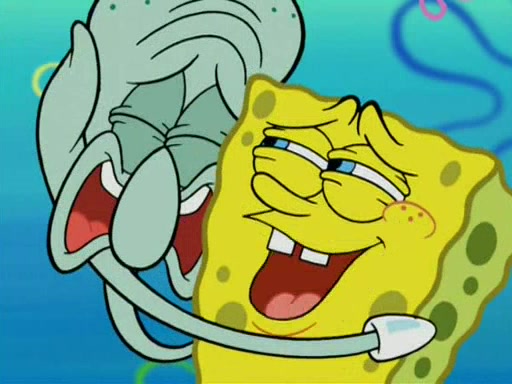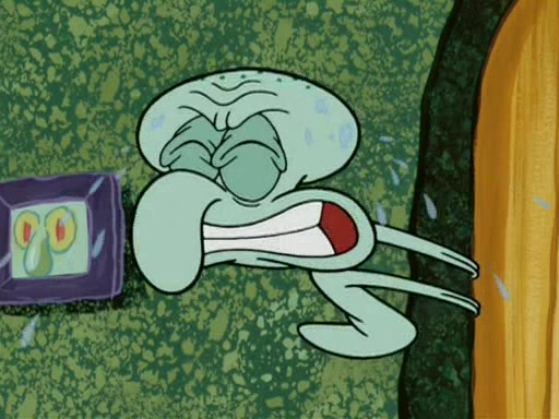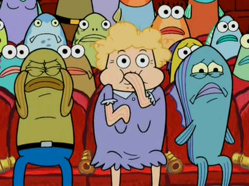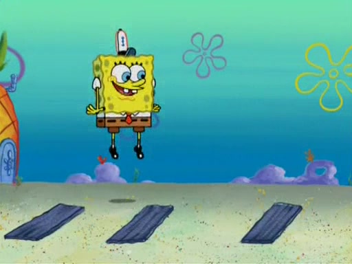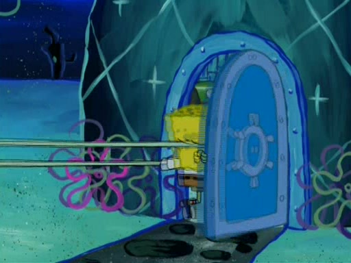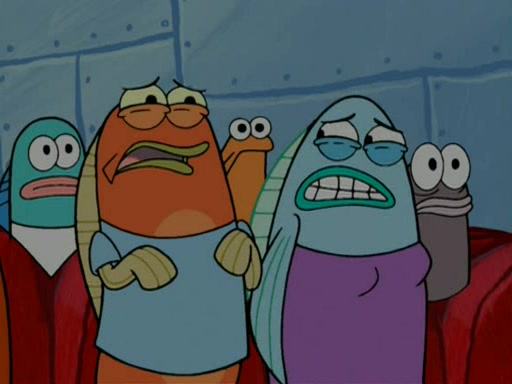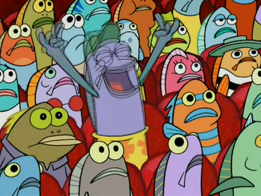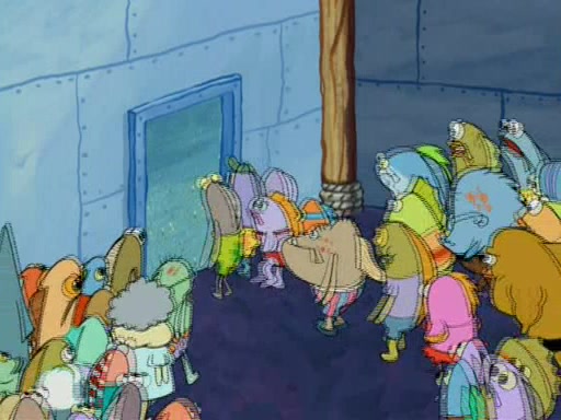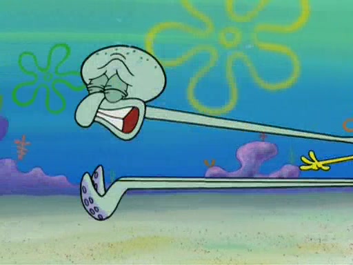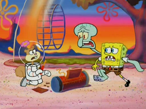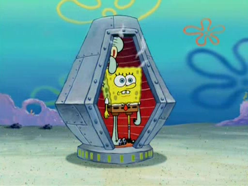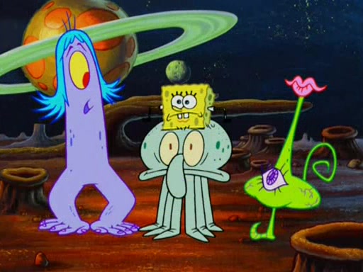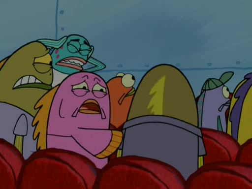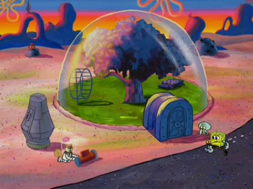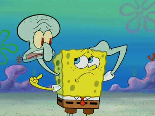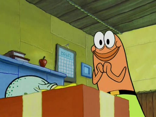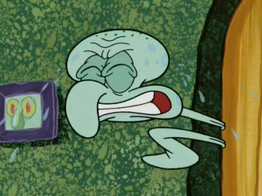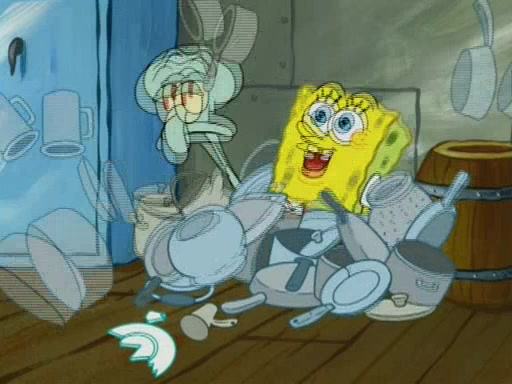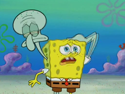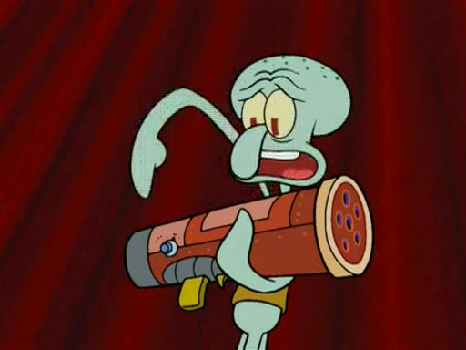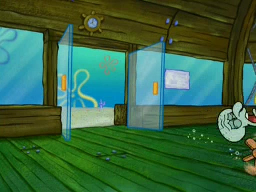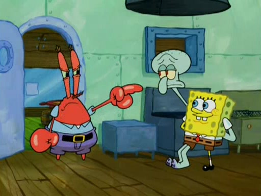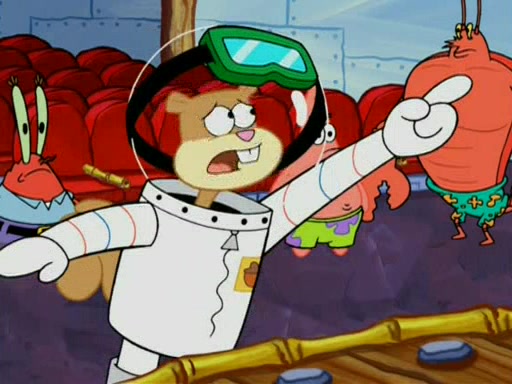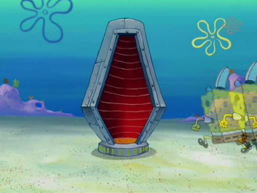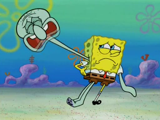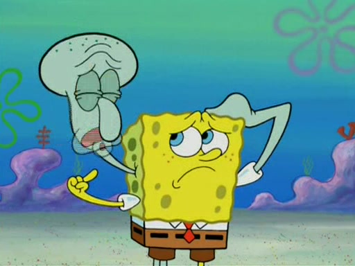 Squidward tries by force, but it pushes their houses together. At the clarinet performance, Squidward is wondering where Sandy is. He thinks about giving up, but SpongeBob tells him this is his big chance to be a star. He decides to wear a cloak in order to hide SpongeBob. He starts playing his clarinet, upsetting everyone. A loose nail pulls the cloak off, revealing their secret. Amazingly, the crowd loves and starts cheering. Squidward finally knows what stardom fells like. Suddenly, Sandy shows up and tells Squidward she finished the device. Squidward tries to tell her not to, but she separates the two, displeasing the crowd. Squidward starts playing his clarinet again, but everyone hates the sound of it.