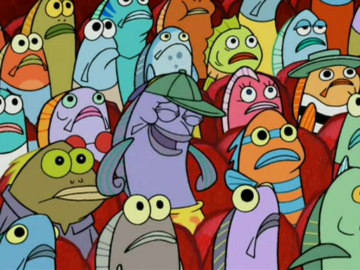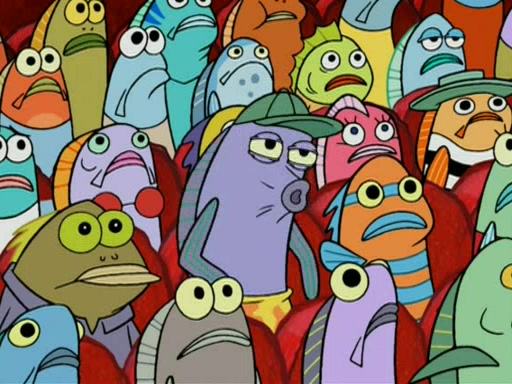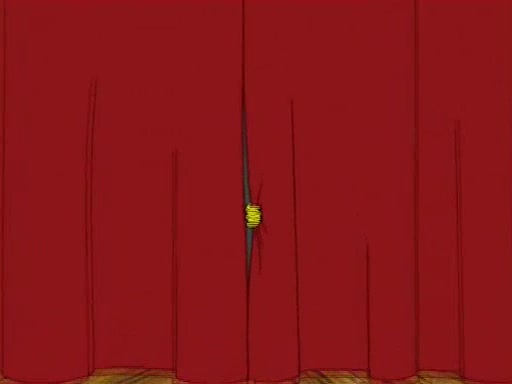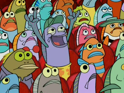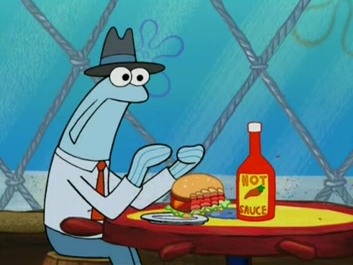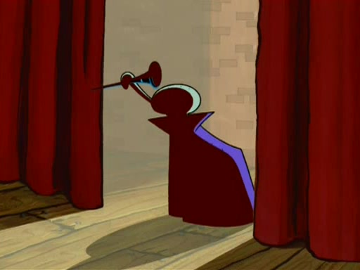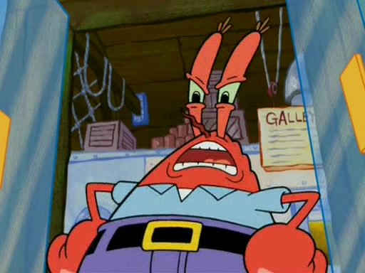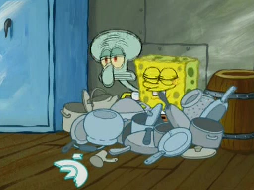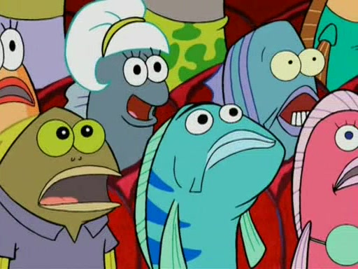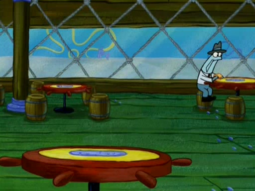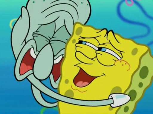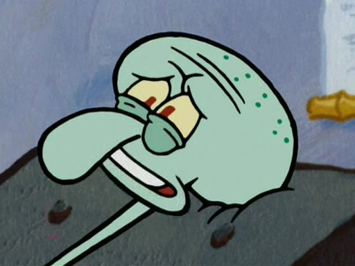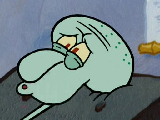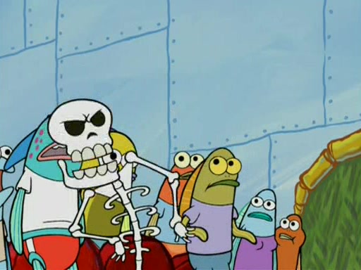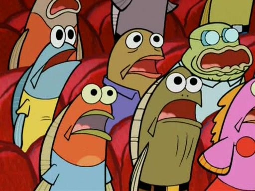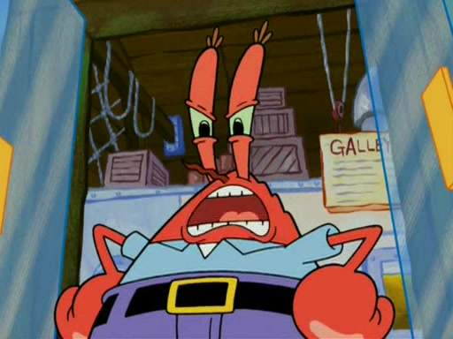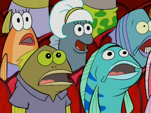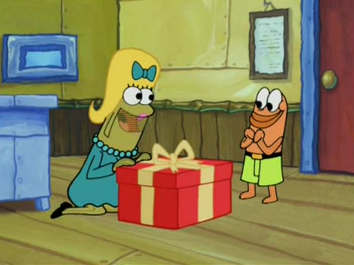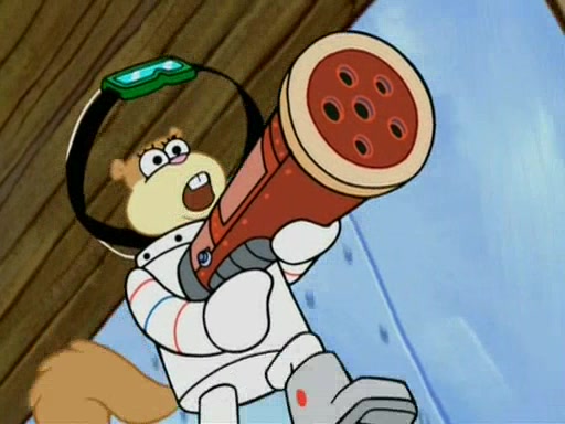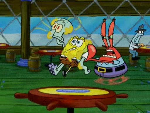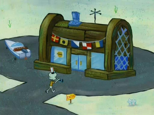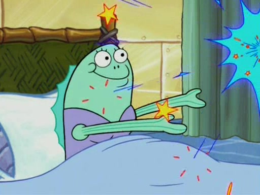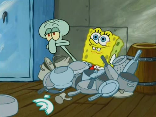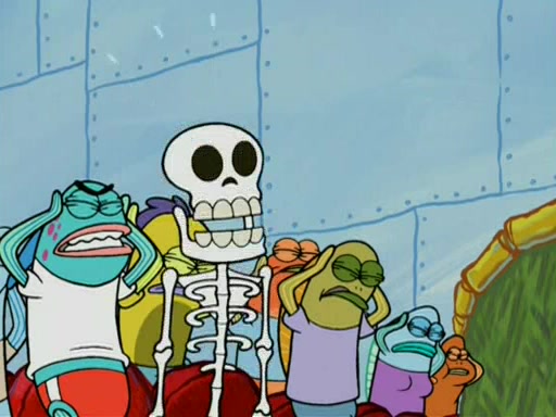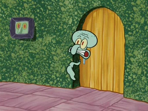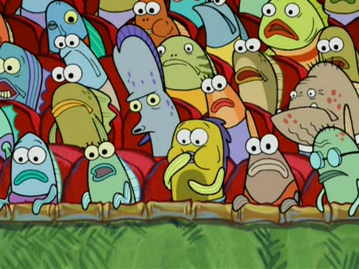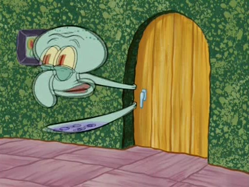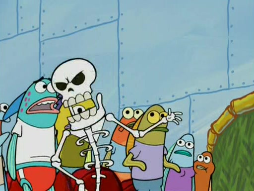 Squidward tries by force, but it pushes their houses together. At the clarinet performance, Squidward is wondering where Sandy is. He thinks about giving up, but SpongeBob tells him this is his big chance to be a star. He decides to wear a cloak in order to hide SpongeBob. He starts playing his clarinet, upsetting everyone. A loose nail pulls the cloak off, revealing their secret. Amazingly, the crowd loves and starts cheering. Squidward finally knows what stardom fells like. Suddenly, Sandy shows up and tells Squidward she finished the device. Squidward tries to tell her not to, but she separates the two, displeasing the crowd. Squidward starts playing his clarinet again, but everyone hates the sound of it.