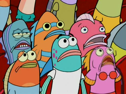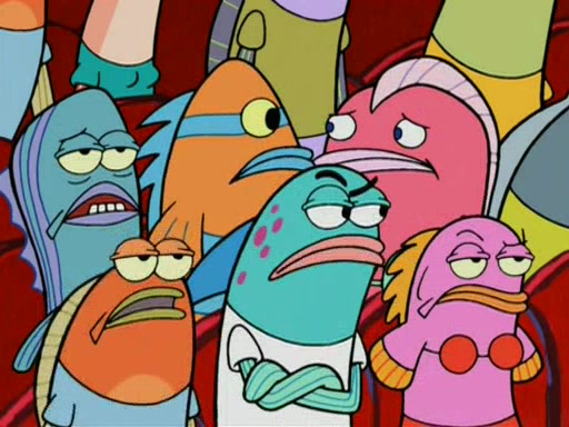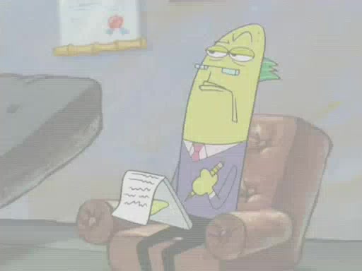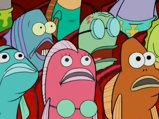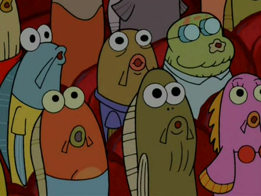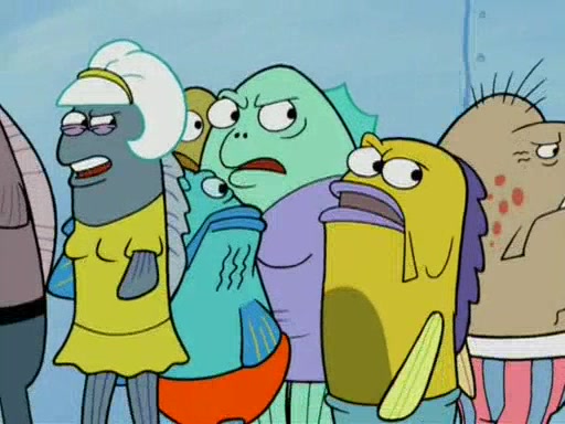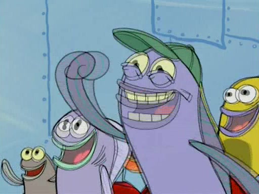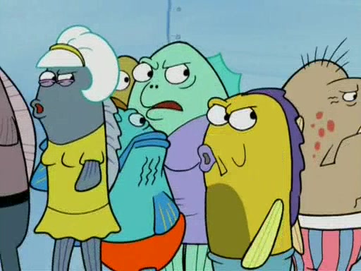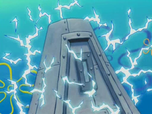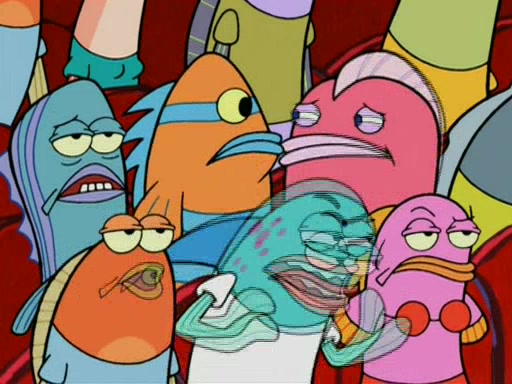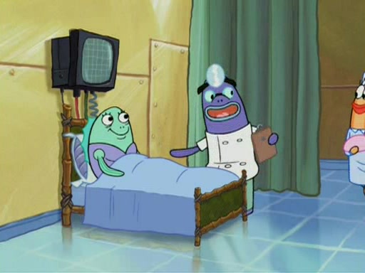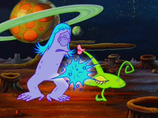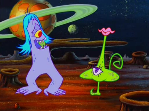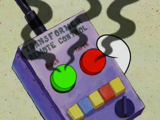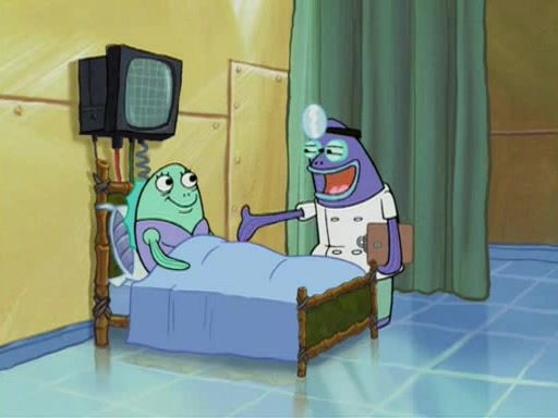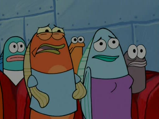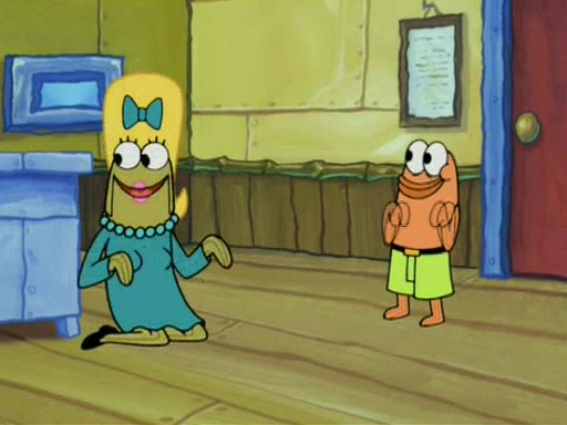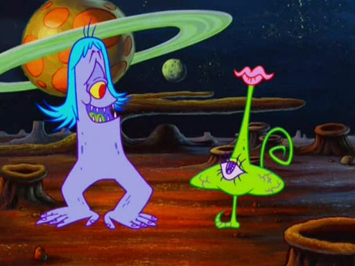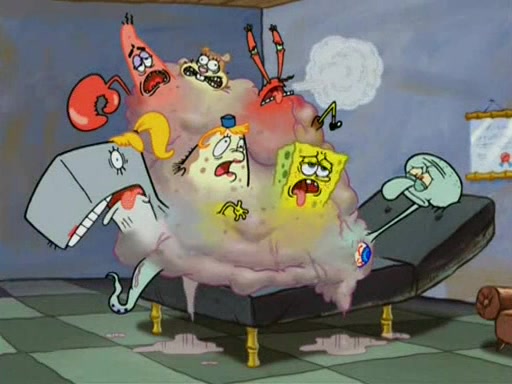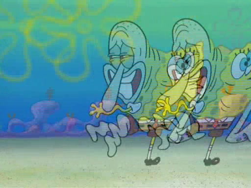 They leave in anger and disgust. Squidward says his one moment of fame is gone. He yanks the machine from Sandy and tries to reverse it. Sandy tries telling him that it's a very sensitive device. Suddenly, the machine breaks and Squidward is morphed. Squidward is seen at a psychiatrist's office. The doctor asks Squidward what the problem is. Squidward says it all started when he was born. It's revealed that Squidward morphed together with SpongeBob, Patrick, Sandy, Pearl, Mr. Krabs, and Mrs. Puff. He now looks even worse than before.