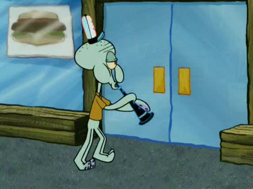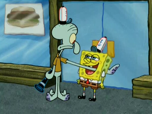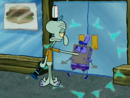 Squidward is dreaming he is a great musician. Suddenly, his alarm clock goes off, waking him. He prepares for another day at the Krusty Krab. SpongeBob gets ready to go to work also. SpongeBob sees Squidward and asks him why he's playing his clarinet. Squidward says he's practicing for his performance tomorrow. Squidward keeps walking to work while SpongeBob visits Sandy. He finds Sandy with a machine that can transport things. Sandy shows SpongeBob how it works by teleporting an apple to Mrs. Puff's desk. SpongeBob asks Sandy if it can transport him to the Krusty Krab. She allows him to try it. When he gets there, part of Squidward's arm gets stuck in him.
