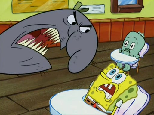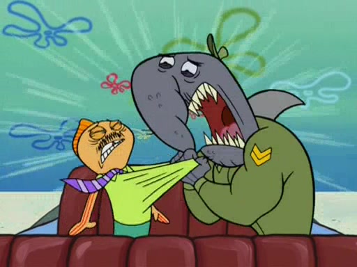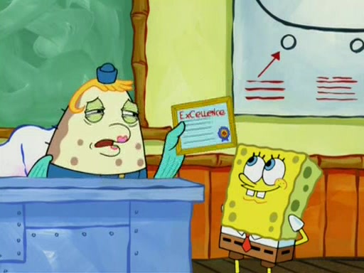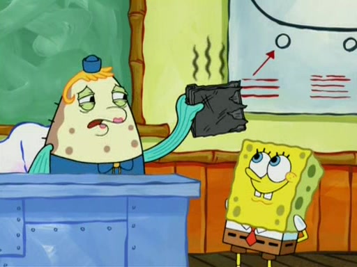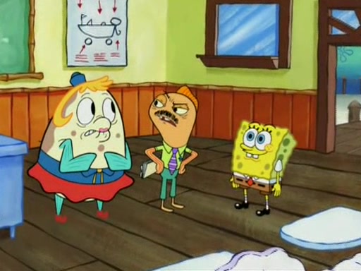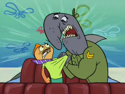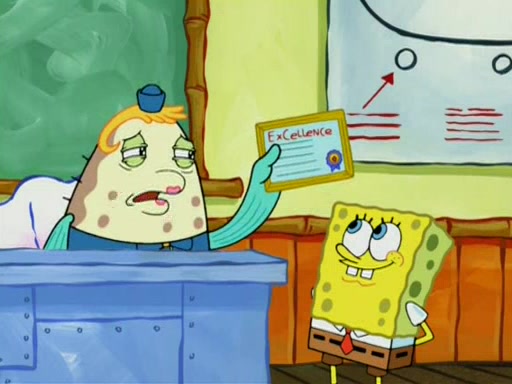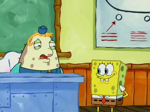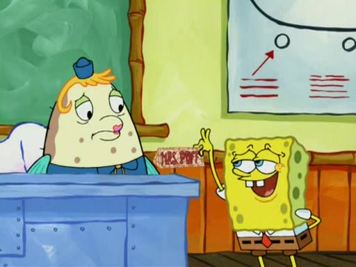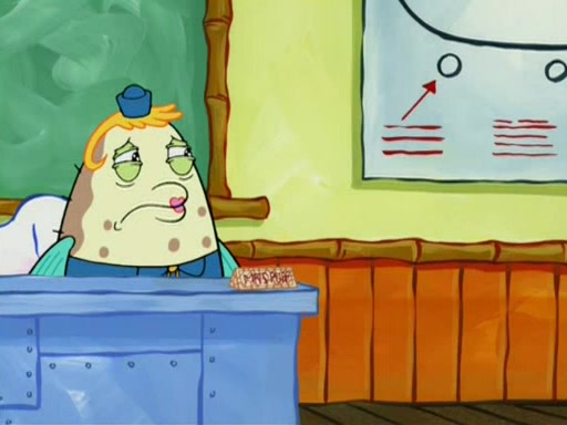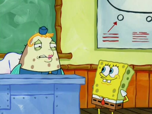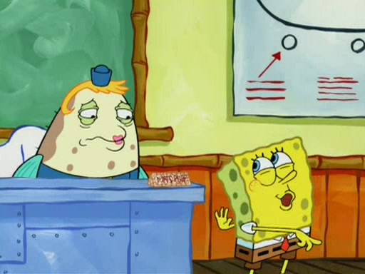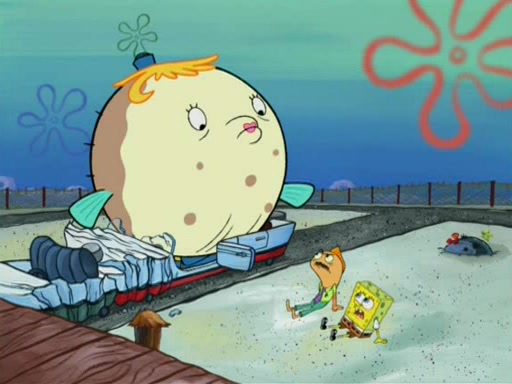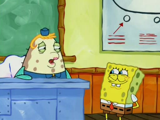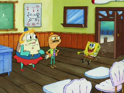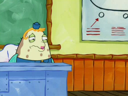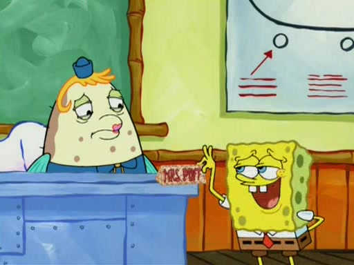At Mrs. Puff's Boating School, Mr. Fitz, the superintendent, is talking to Mrs. Puff about renewing her teaching certificate, but informed her of the high record of failing students. However, SpongeBob is the only student who has ever failed her class, but has done so 1,258,056 times. Mrs. Puff is told to show Mr. Fitz everything she has taught SpongeBob, and within seconds, he fails yet another driving test by bashing in a boat. Mr. Fitz fires Mrs. Puff (to her delight since she dislikes SpongeBob), and a new boating instructor named Sergeant Roderick (most likely a shark) comes in and takes over the school.