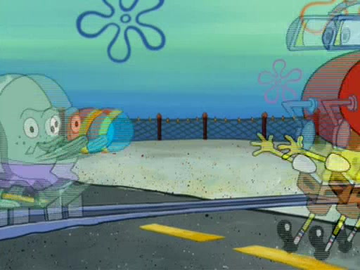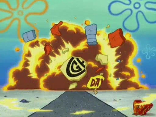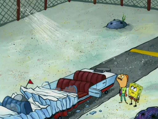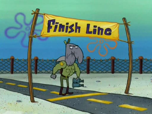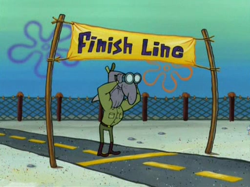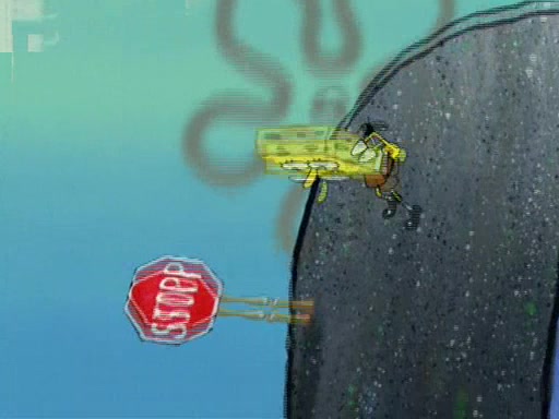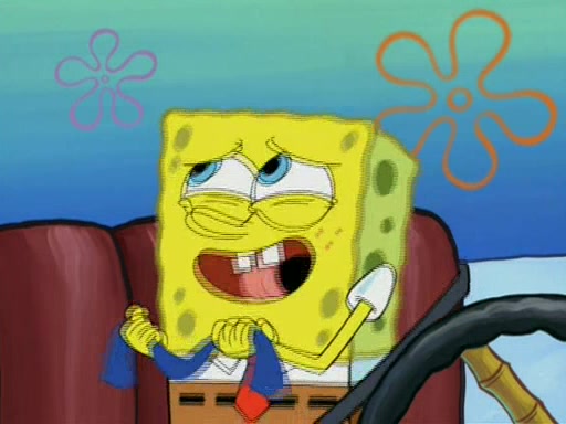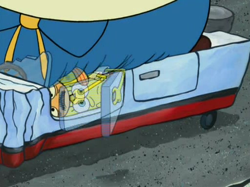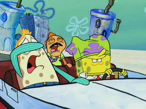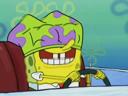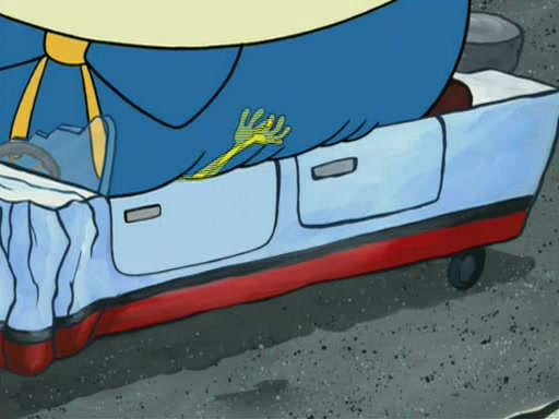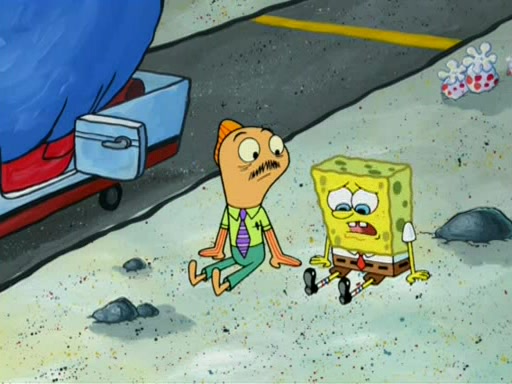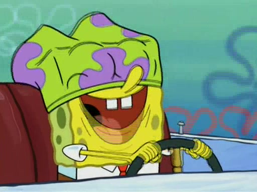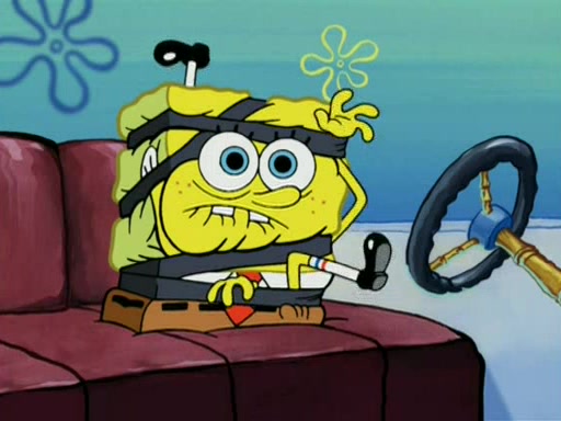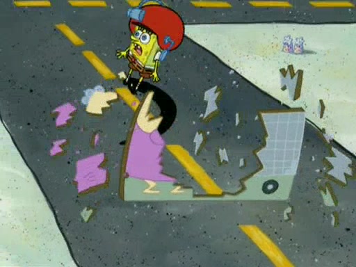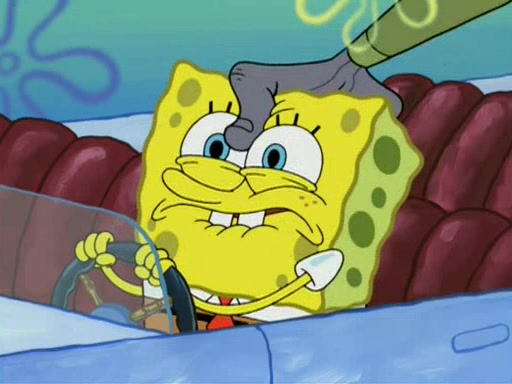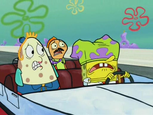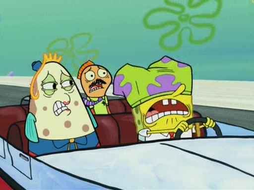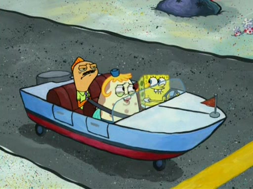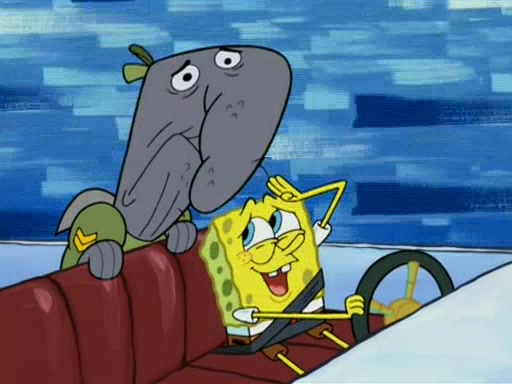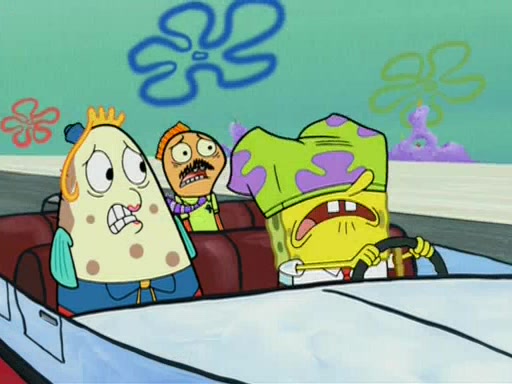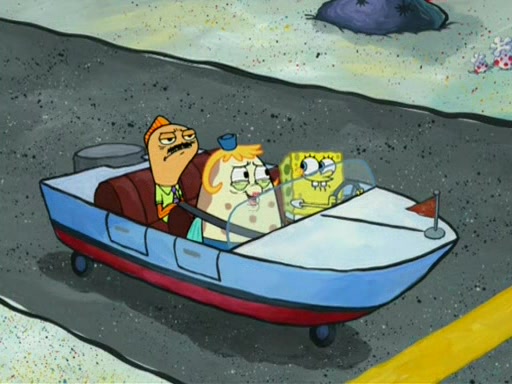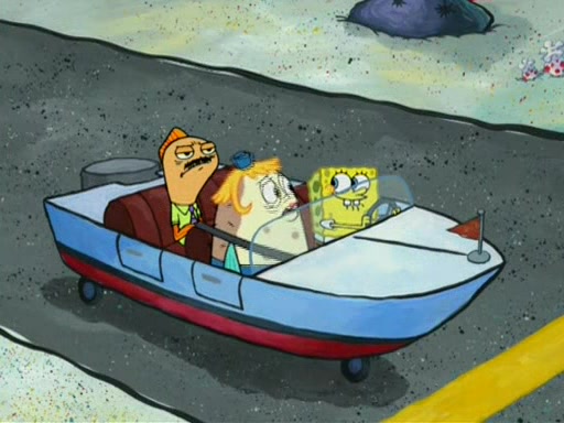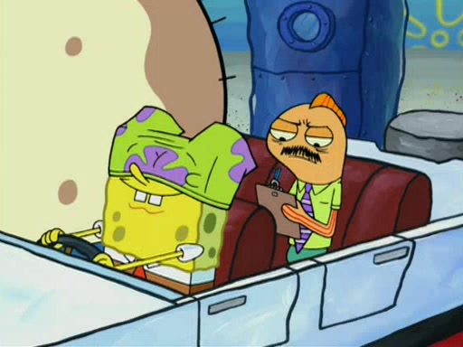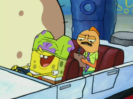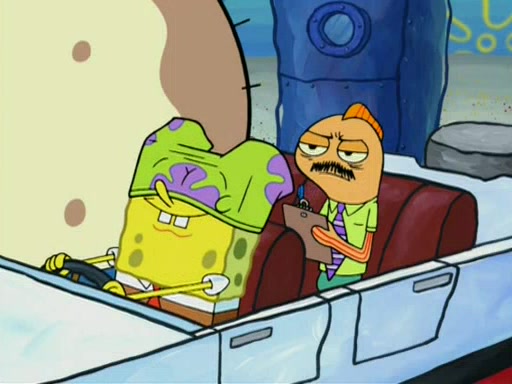 When the time of SpongeBob's final exam, which Mr. Fitz personally comes to watch, SpongeBob realizes that he can only drive while blindfolded, and proceeds to take the exam with the same disastrous results. Roderick nearly dies attempting to stop his boat from destroying the city, and Mr. Fitz realizes that SpongeBob is "unteachable" and rehires Mrs. Puff.