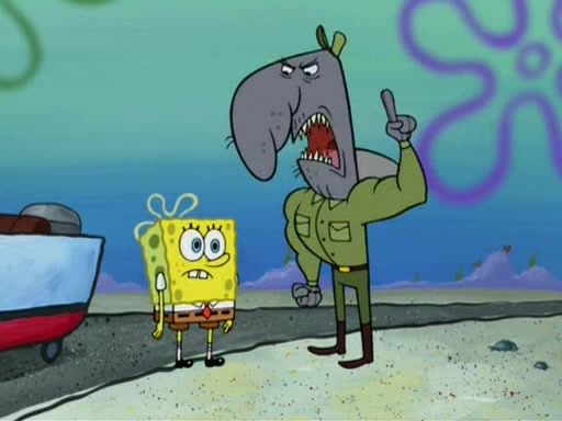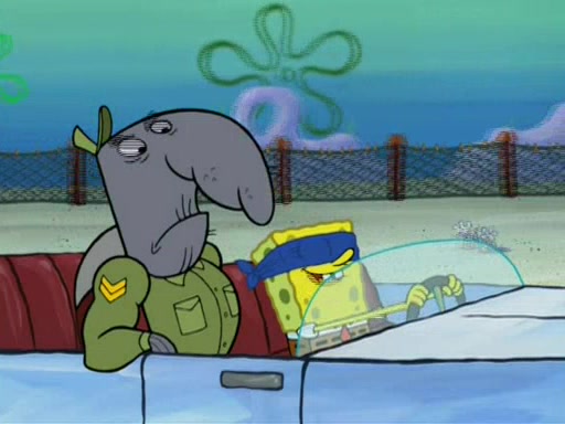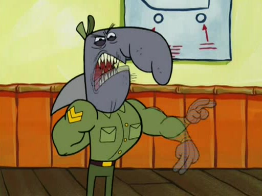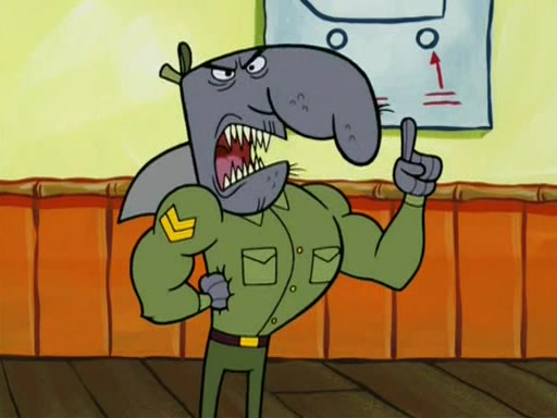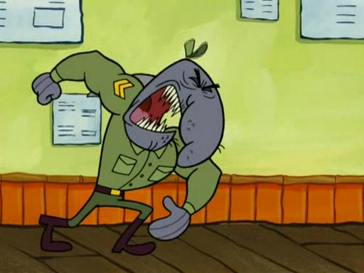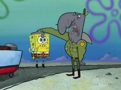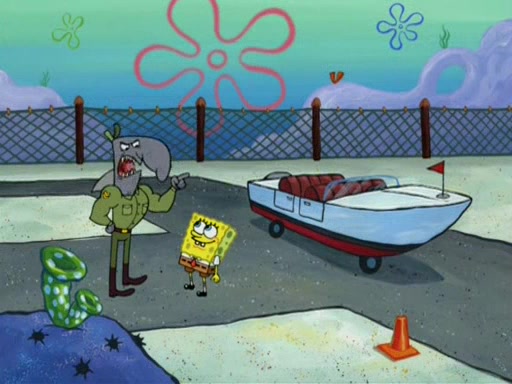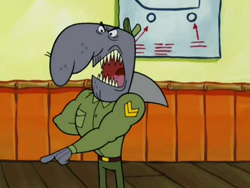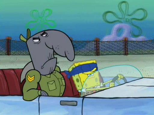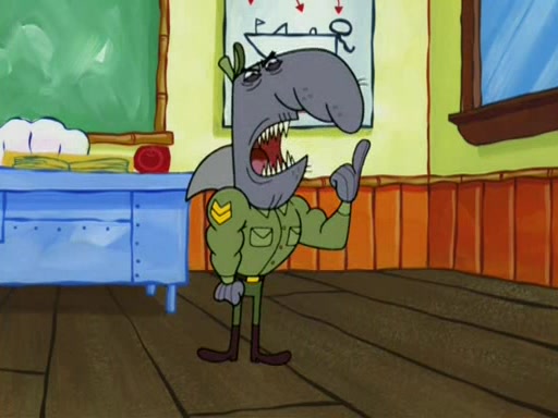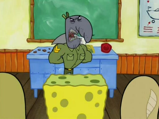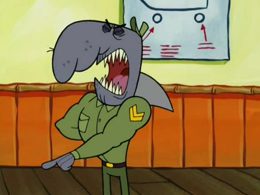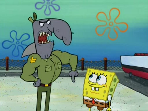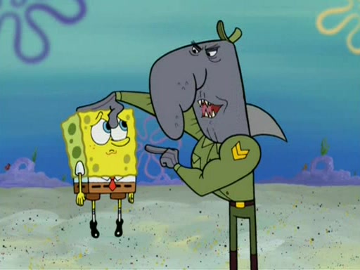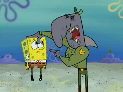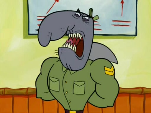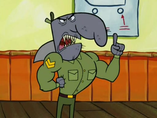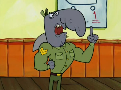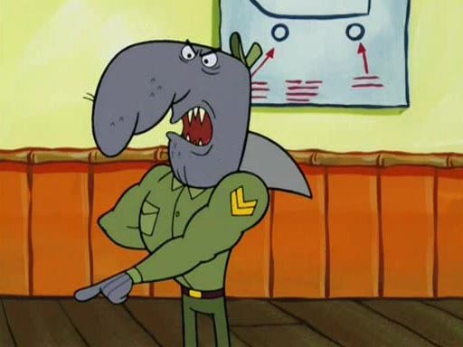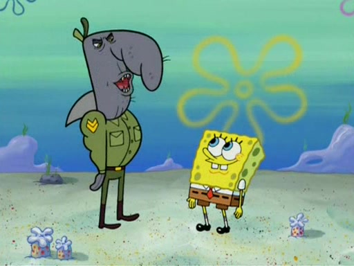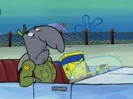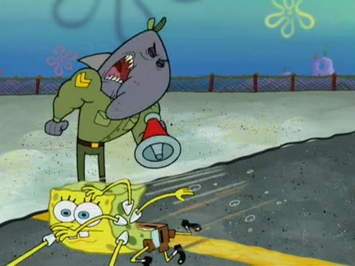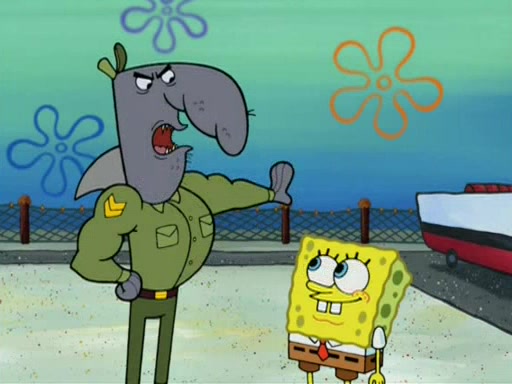 Sergeant Roderick is a viciously cruel drill instructor, who immediately throws out one student for talking and another for eating. All the other students run away, except for SpongeBob, who is now his only student. The new boating instructor has set up a difficult course, which he trains SpongeBob to crawl, walk, run, and eventually drive through while blindfolded. Surprisingly, he masters this.