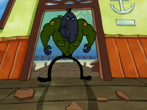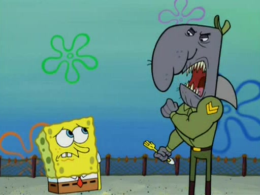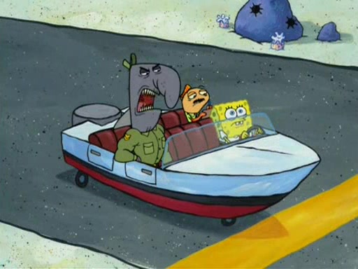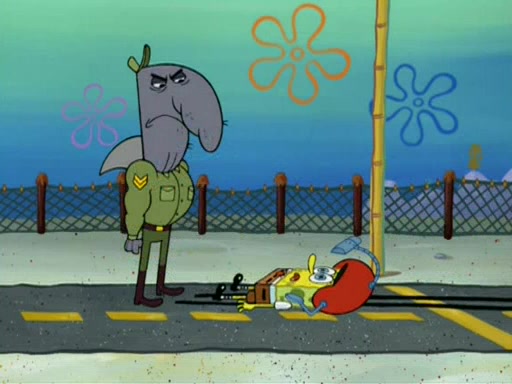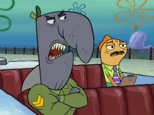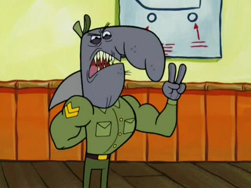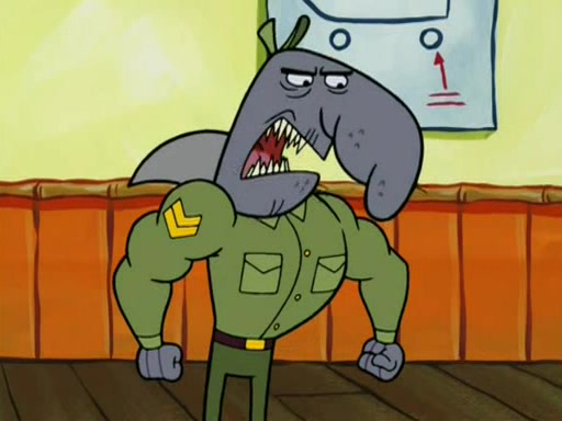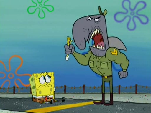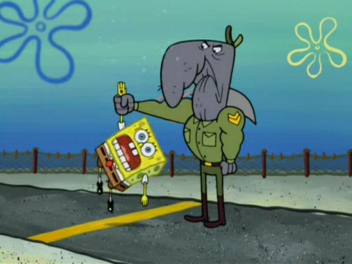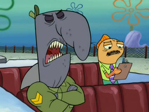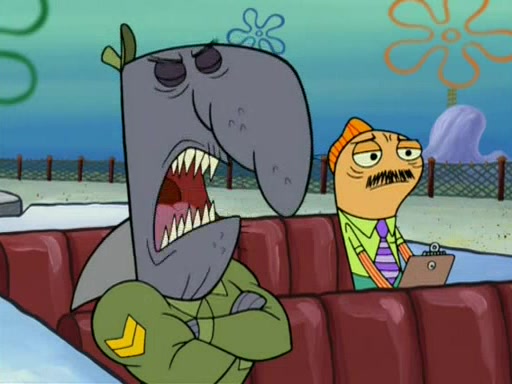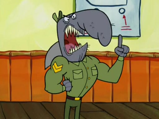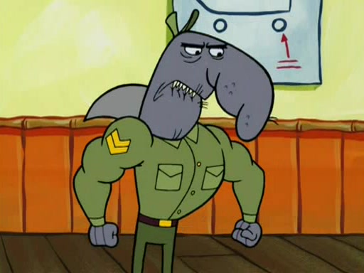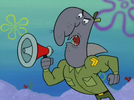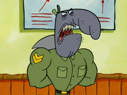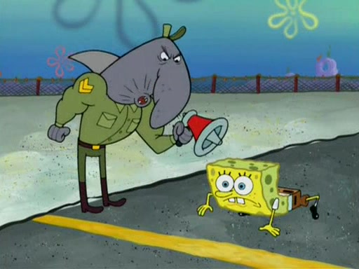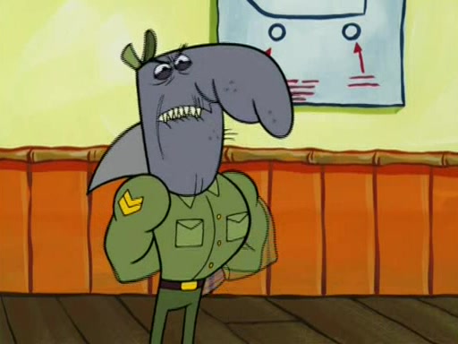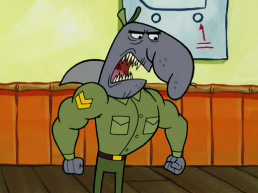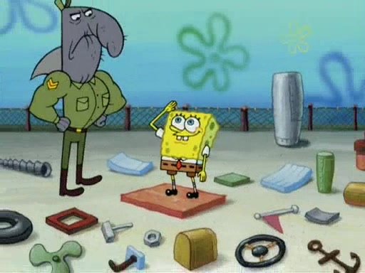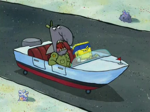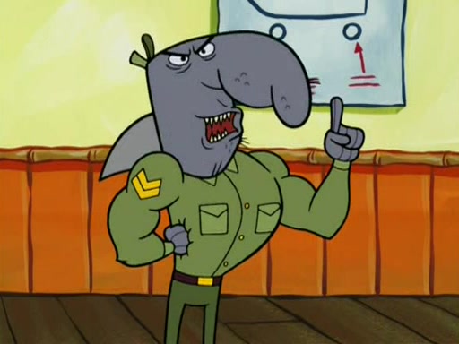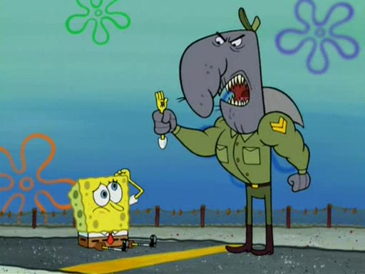 Sergeant Roderick is a viciously cruel drill instructor, who immediately throws out one student for talking and another for eating. All the other students run away, except for SpongeBob, who is now his only student. The new boating instructor has set up a difficult course, which he trains SpongeBob to crawl, walk, run, and eventually drive through while blindfolded. Surprisingly, he masters this.
