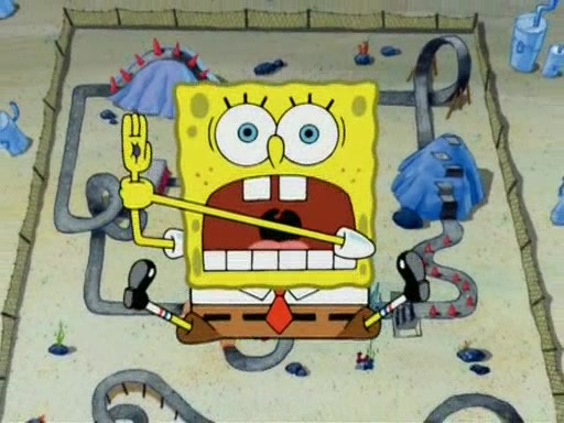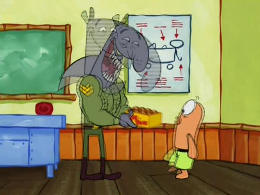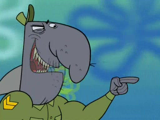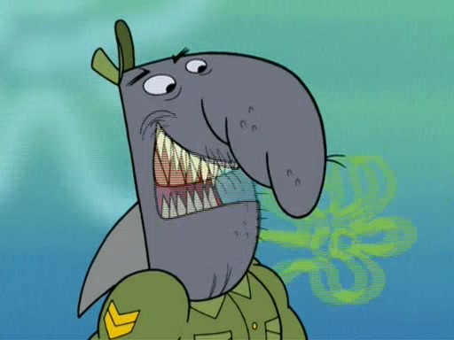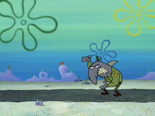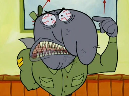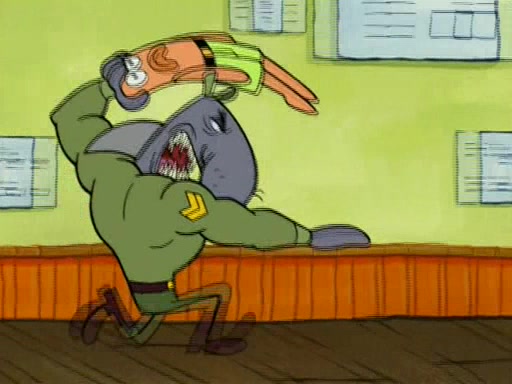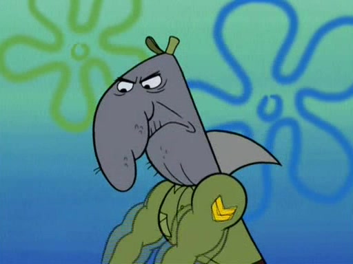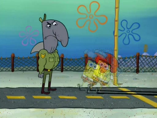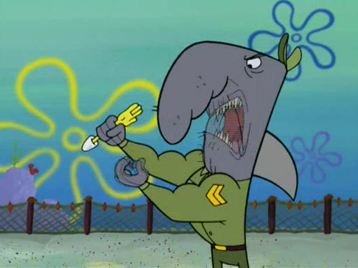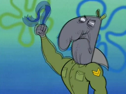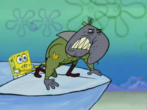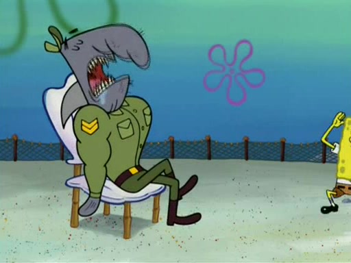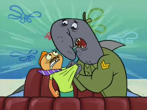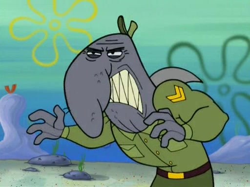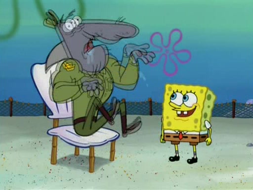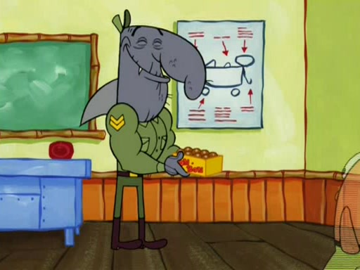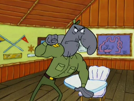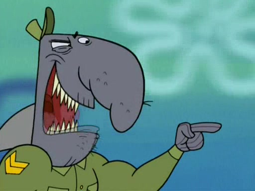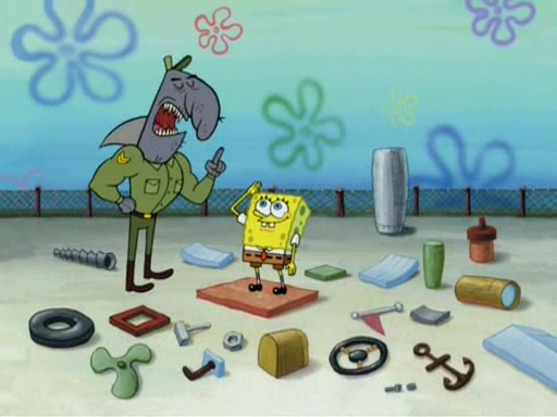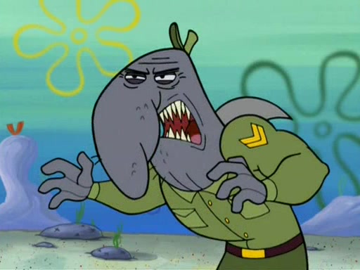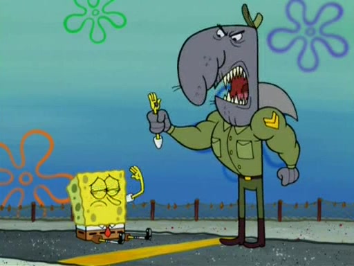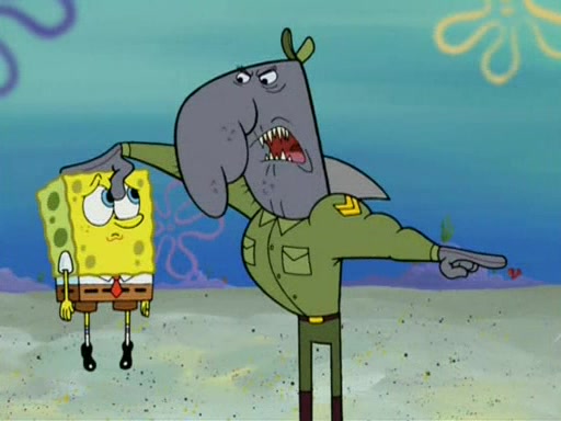 Sergeant Roderick is a viciously cruel drill instructor, who immediately throws out one student for talking and another for eating. All the other students run away, except for SpongeBob, who is now his only student. The new boating instructor has set up a difficult course, which he trains SpongeBob to crawl, walk, run, and eventually drive through while blindfolded. Surprisingly, he masters this.