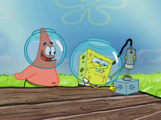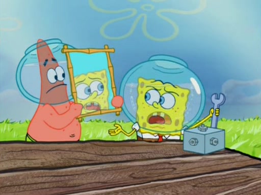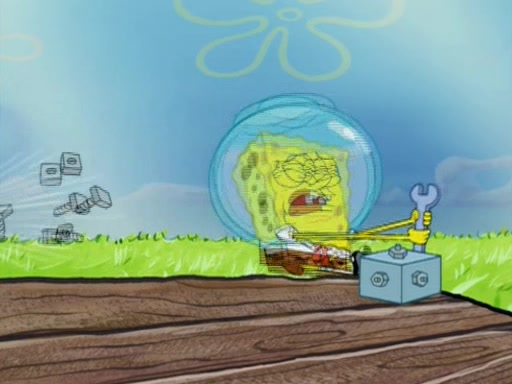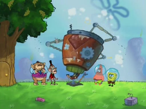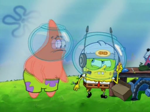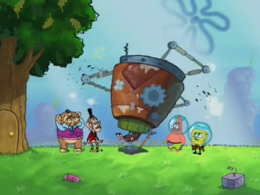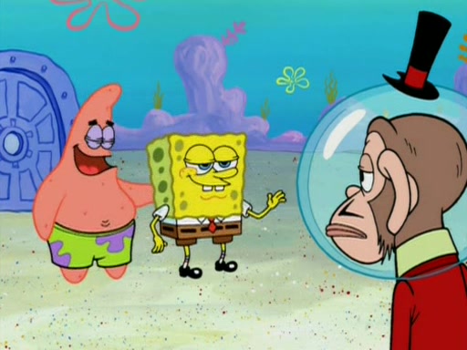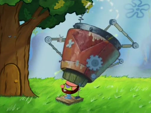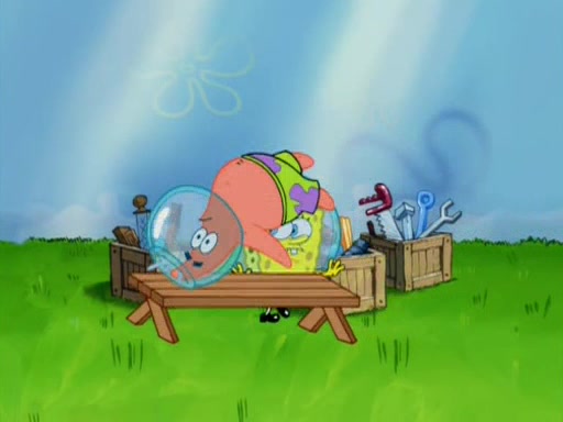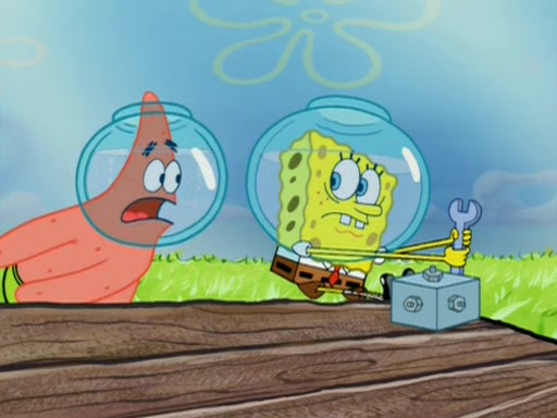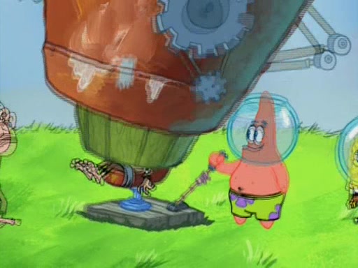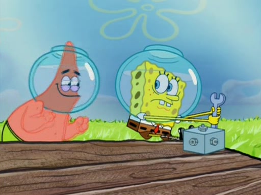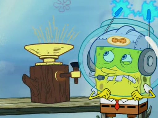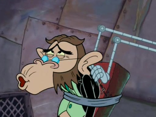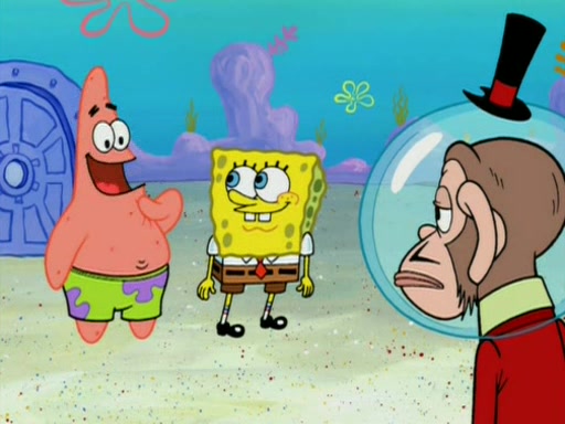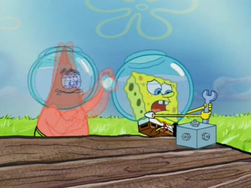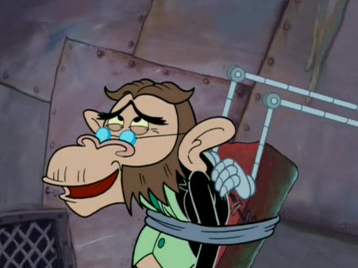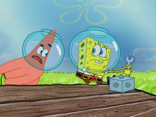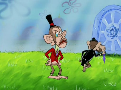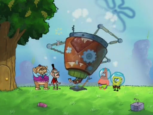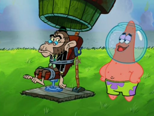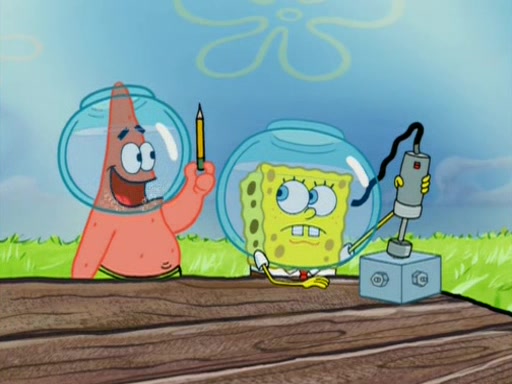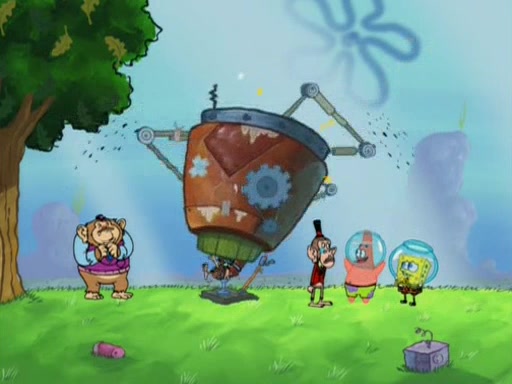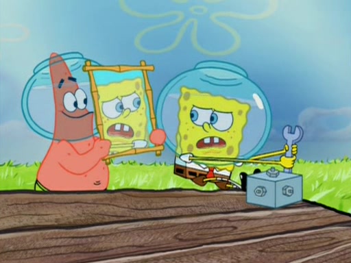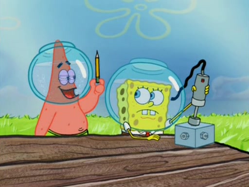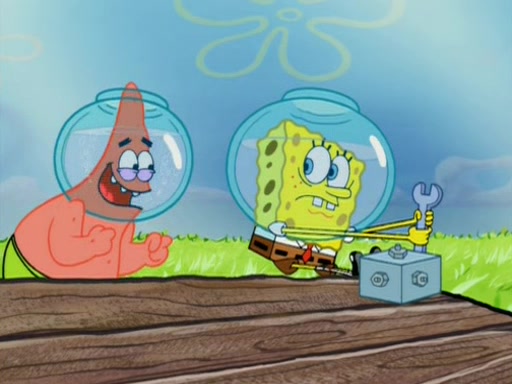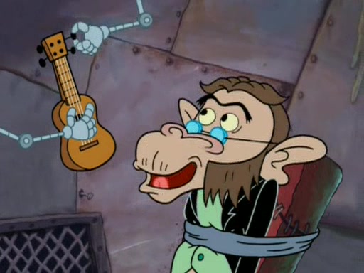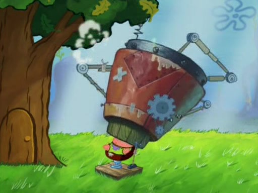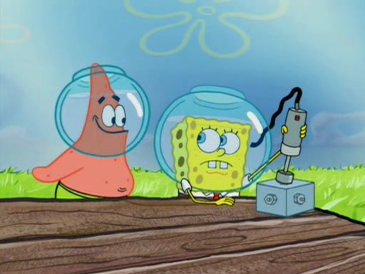 At first, Patrick has ideas of things that have already been invented, such as a pencil and a mirror (which ironically is actually a parallel universe). After hours of hard work, SpongeBob and Patrick invent a back scratching, hair-combing, nose-picking ukulele-tuner. When the Chimps arrive, Lord Reginald is the first to test it (though never wanted to, as Patrick forced him). Shockingly, the invention works, but when tuning the ukulele, the machine malfunctions, hits Reginald with the ukulele, slaps him, then starts attacking him with all sorts of weapons.