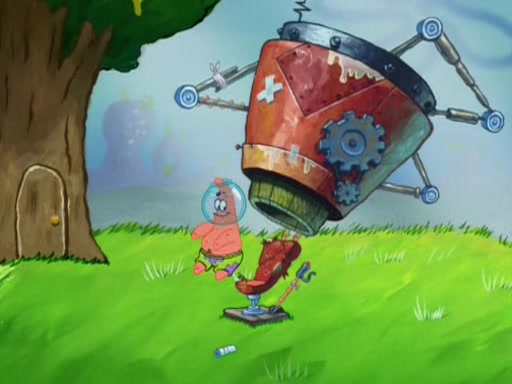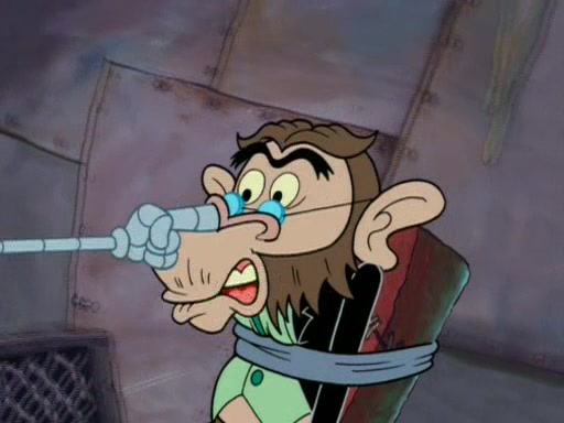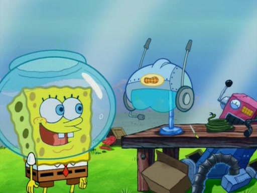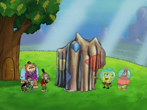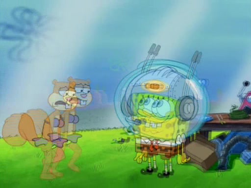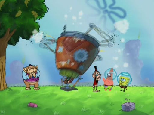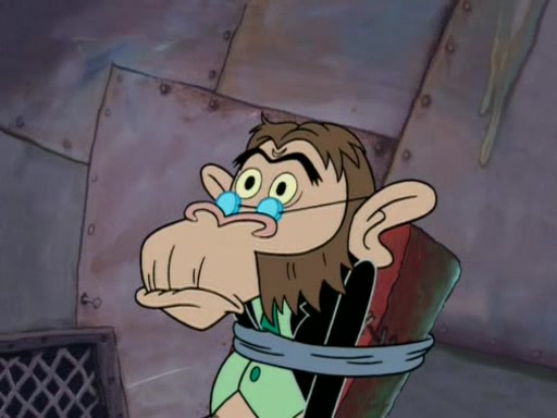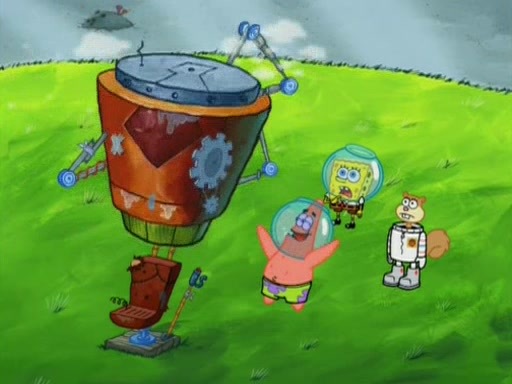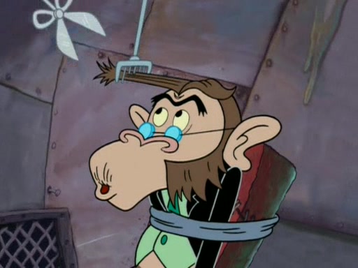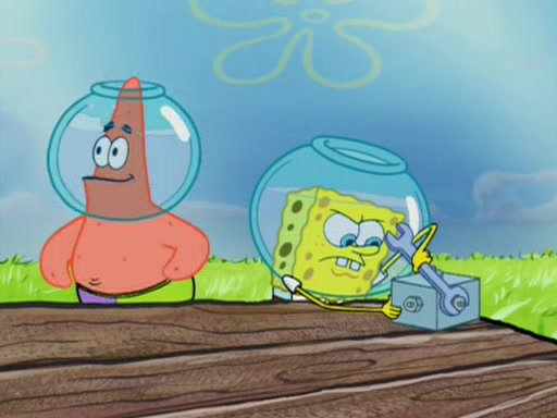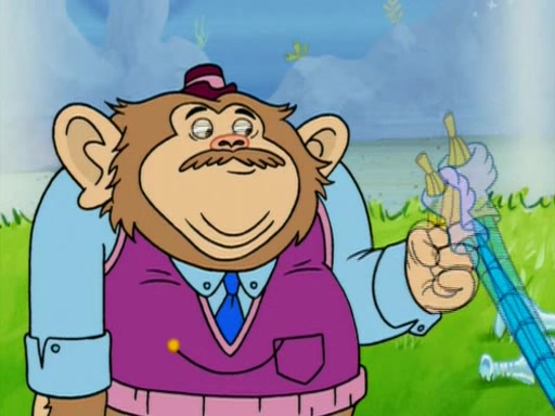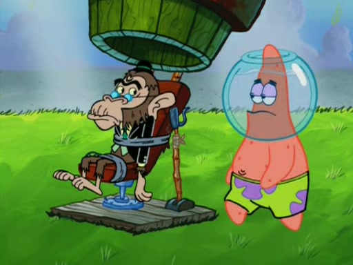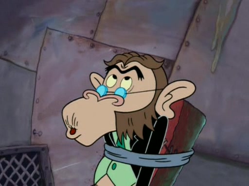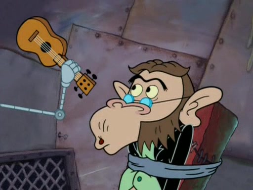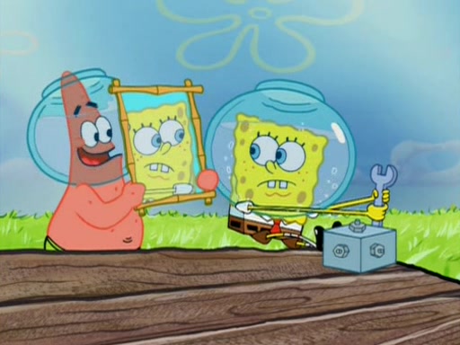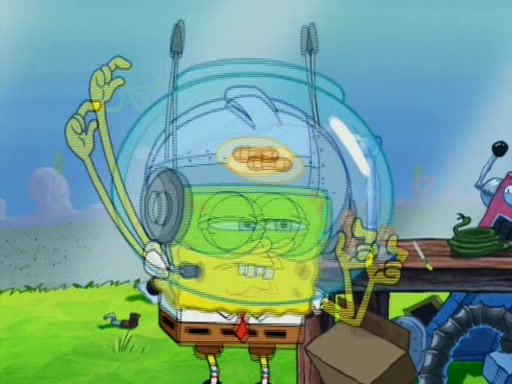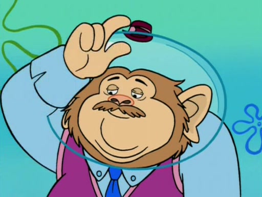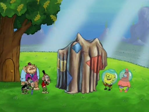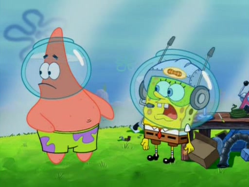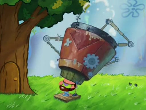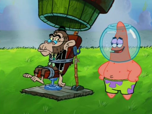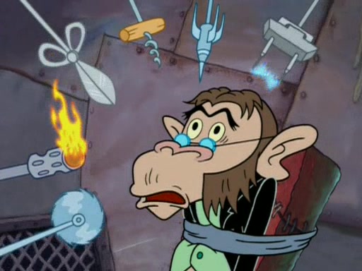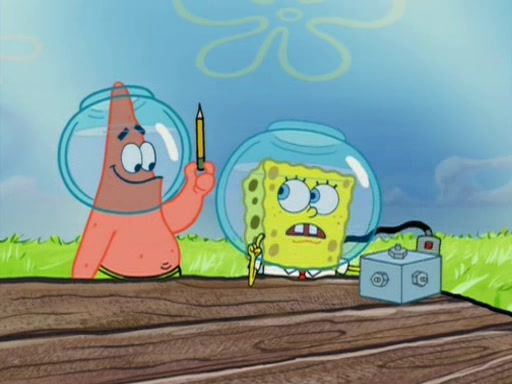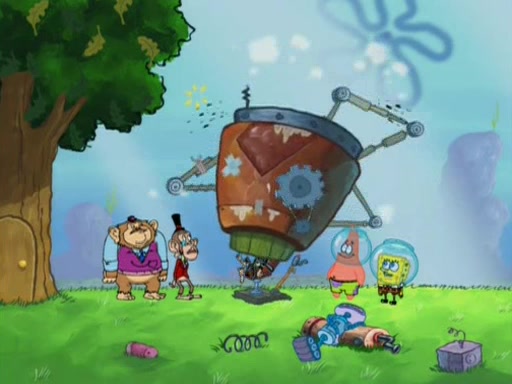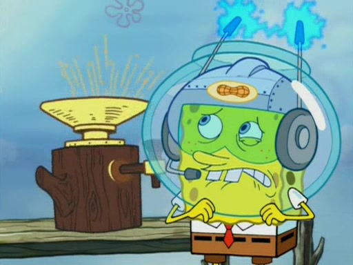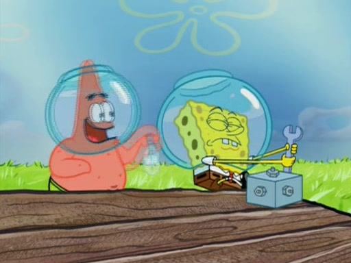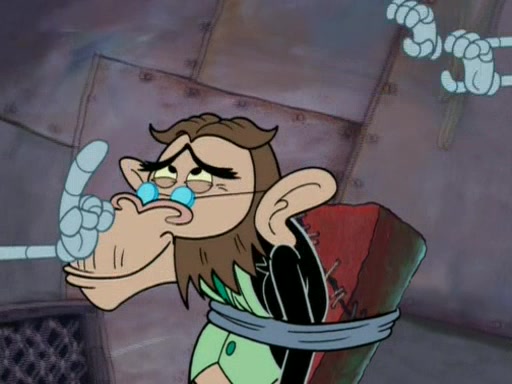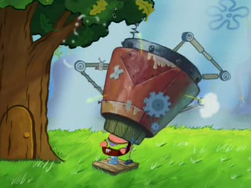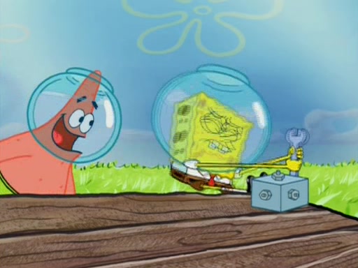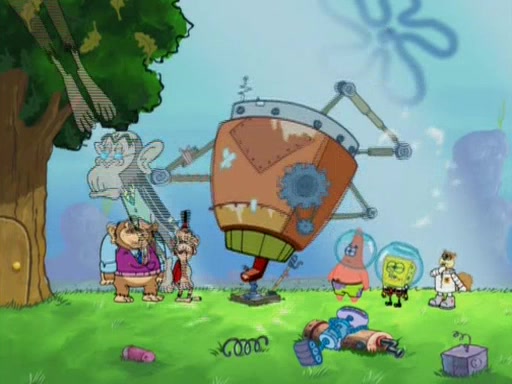 At first, Patrick has ideas of things that have already been invented, such as a pencil and a mirror (which ironically is actually a parallel universe). After hours of hard work, SpongeBob and Patrick invent a back scratching, hair-combing, nose-picking ukulele-tuner. When the Chimps arrive, Lord Reginald is the first to test it (though never wanted to, as Patrick forced him). Shockingly, the invention works, but when tuning the ukulele, the machine malfunctions, hits Reginald with the ukulele, slaps him, then starts attacking him with all sorts of weapons.
