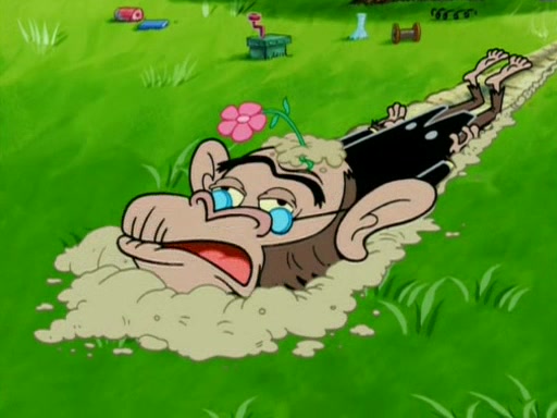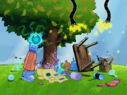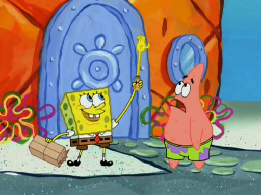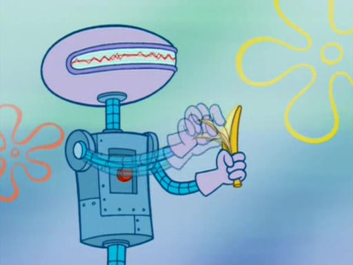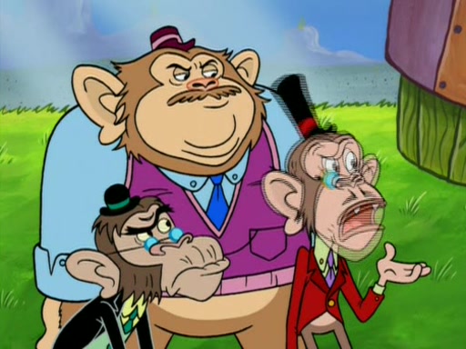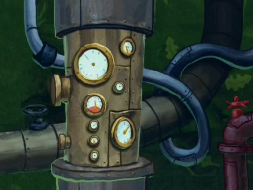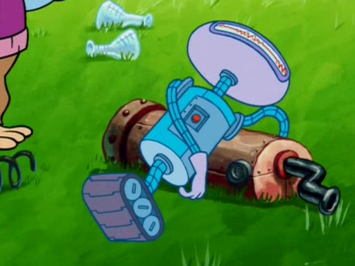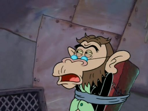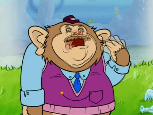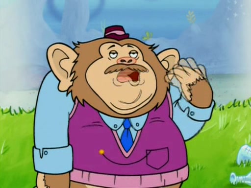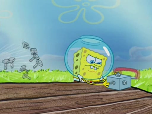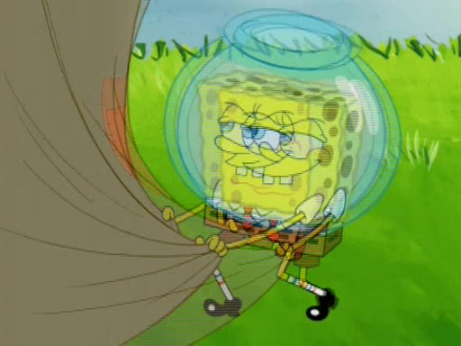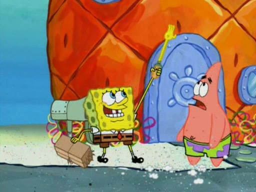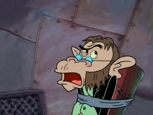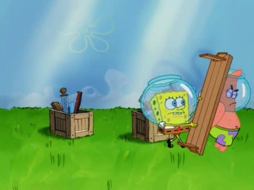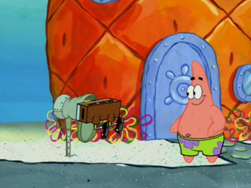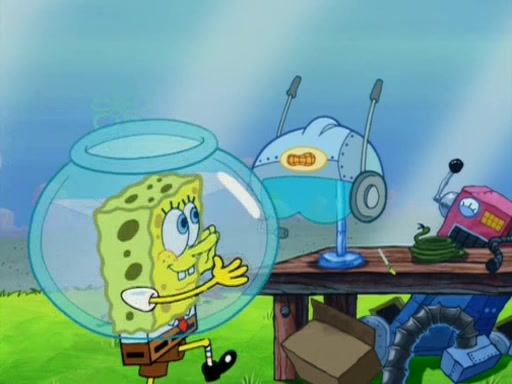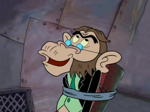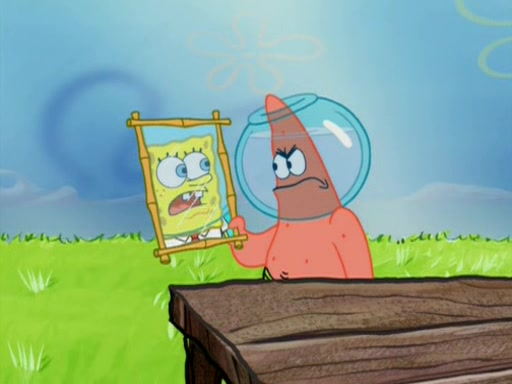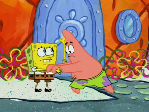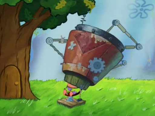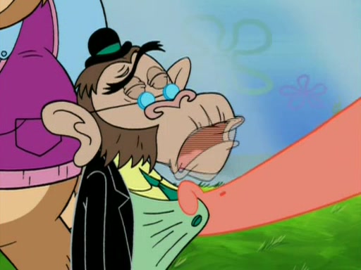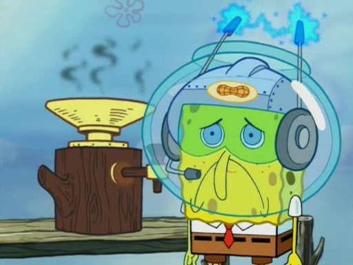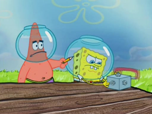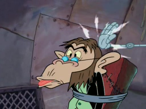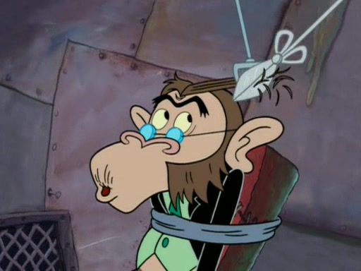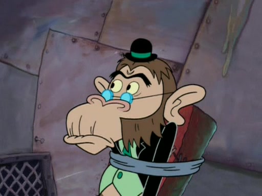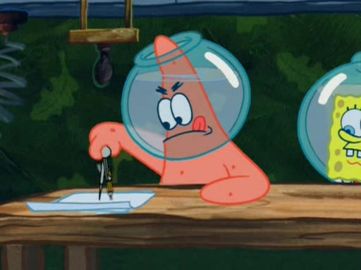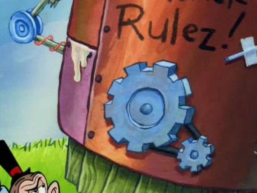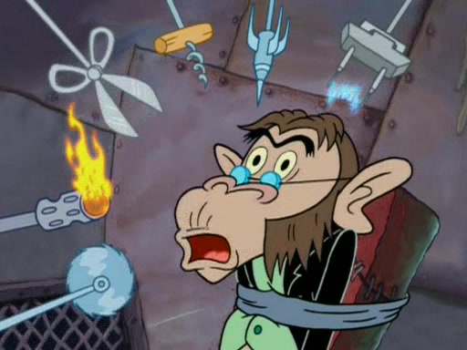 At first, Patrick has ideas of things that have already been invented, such as a pencil and a mirror (which ironically is actually a parallel universe). After hours of hard work, SpongeBob and Patrick invent a back scratching, hair-combing, nose-picking ukulele-tuner. When the Chimps arrive, Lord Reginald is the first to test it (though never wanted to, as Patrick forced him). Shockingly, the invention works, but when tuning the ukulele, the machine malfunctions, hits Reginald with the ukulele, slaps him, then starts attacking him with all sorts of weapons.