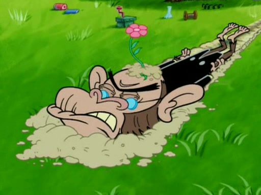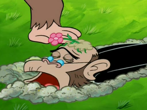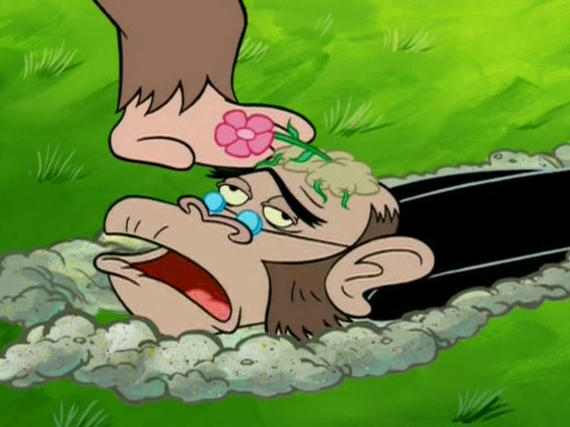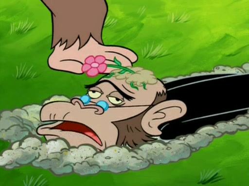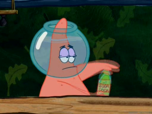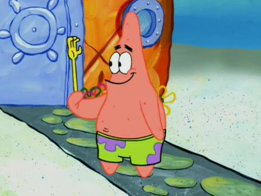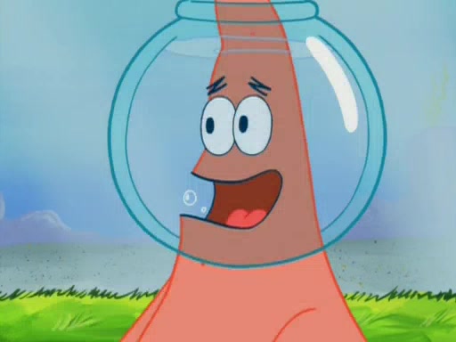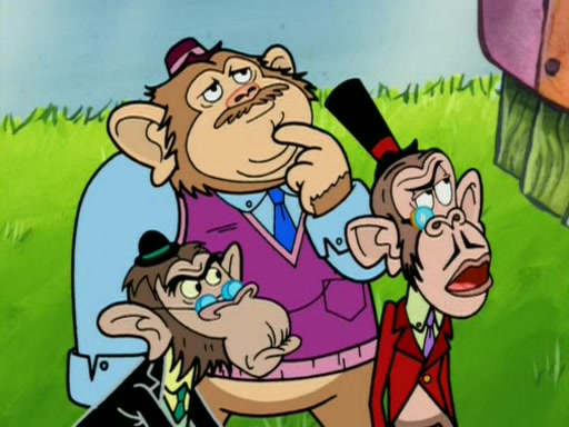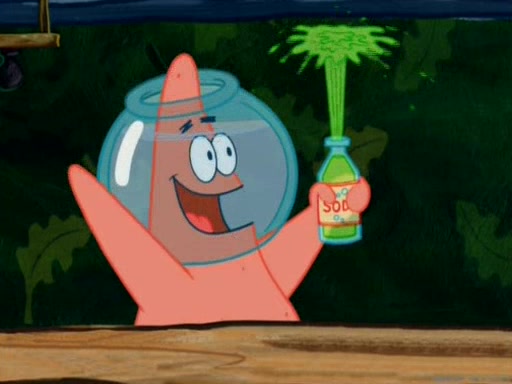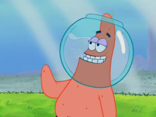After the Chimps leave, Patrick decides to test out the machine that injured Reginald, which, of course, malfunctions on him, yet he still yells out "All right!"