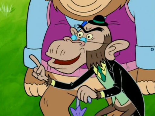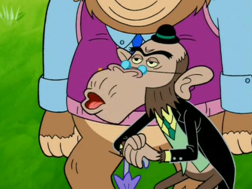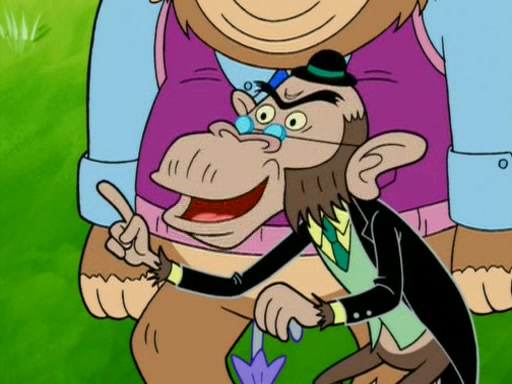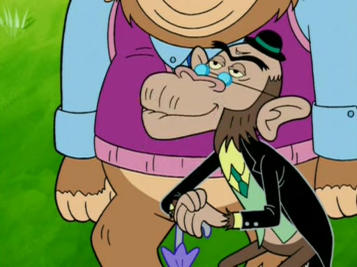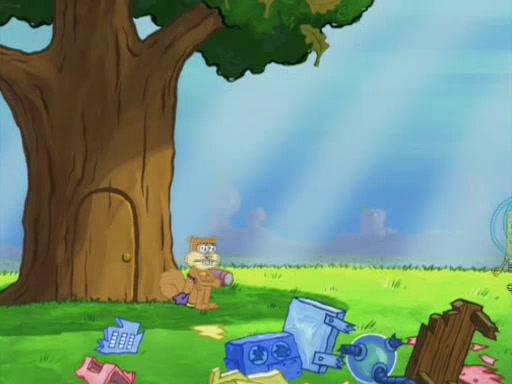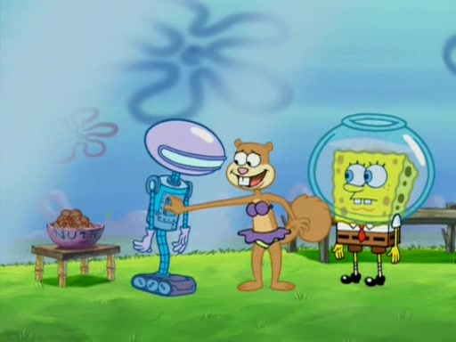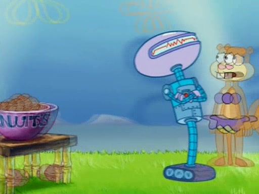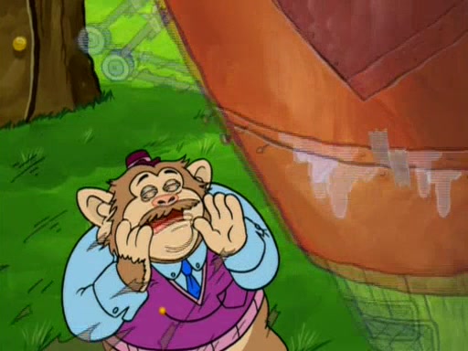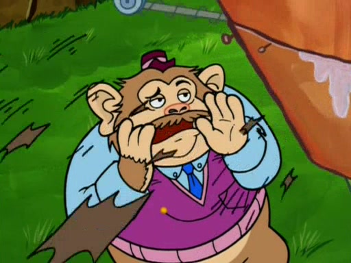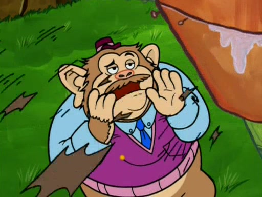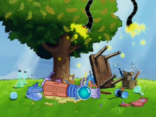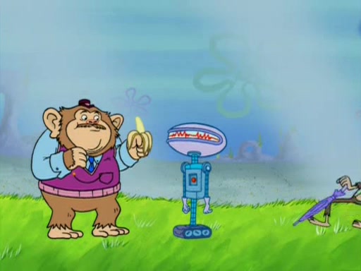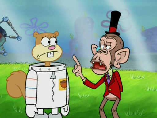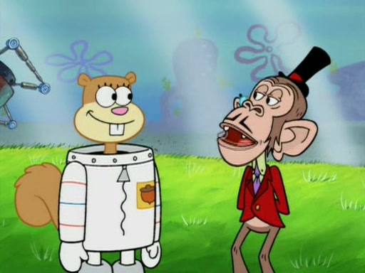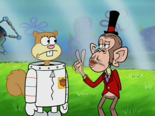 Meanwhile, Sandy hears the screaming of Reginald, and arrives just as the machine spits out Reginald. The Chimps decide to close down the Treedome, but when Dr. Marmalade holds out a banana, Sandy's "nutcracker" peels it for him. It is revealed that this is an invention that Chimps have been searching hundreds of years for. Soon they decide to let Sandy stay for 20 more years, including a higher salary.
