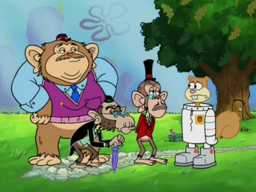The Chimpanzee beneficiaries of Sandy's undersea treedome are paying a visit to see what progress she has made with her inventions. But Sandy doesn't think any of her work will satisfy the chimps, and if they don't like what she's invented Sandy could lose her funding forcing her to leave Bikini Bottom. SpongeBob and Patrick decide to help their distraught friend by taking over her work and finishing her inventions.