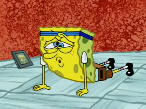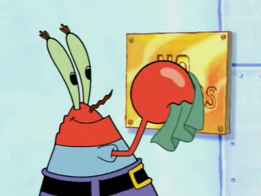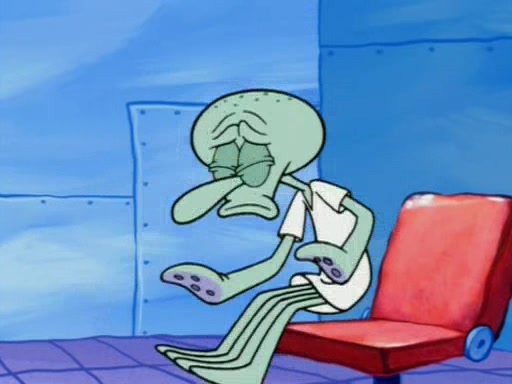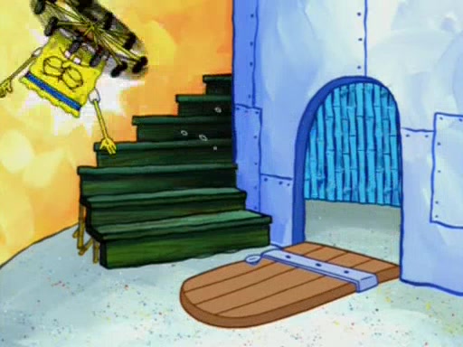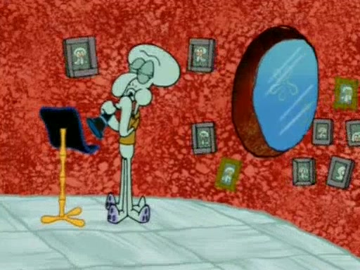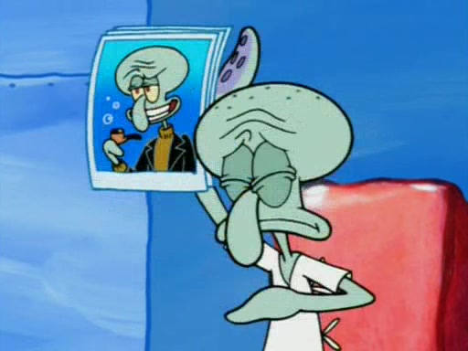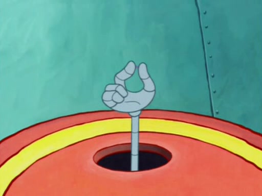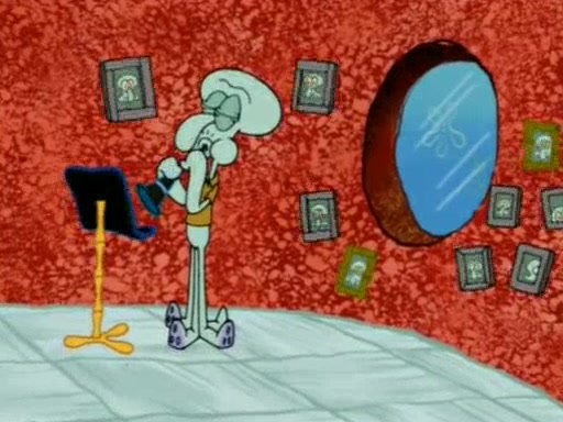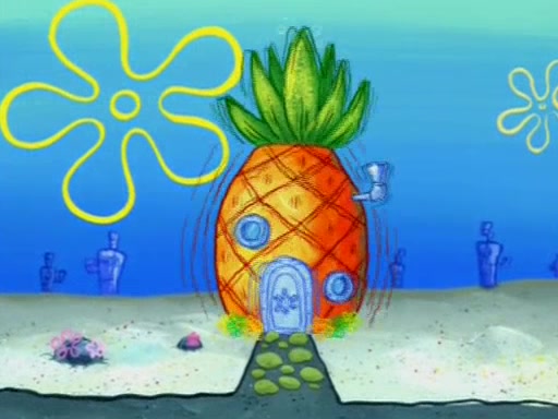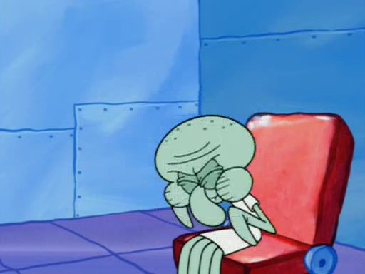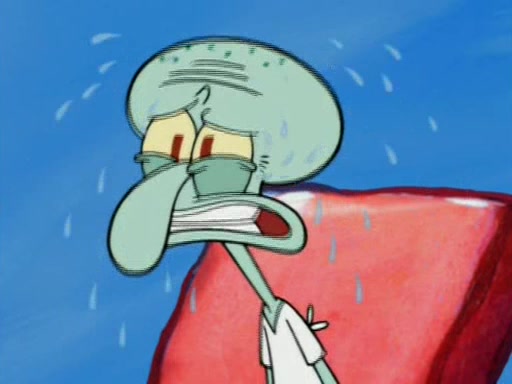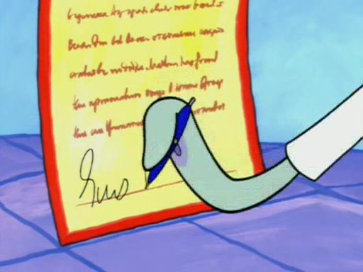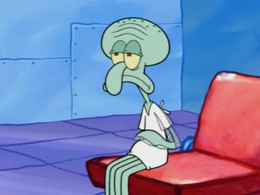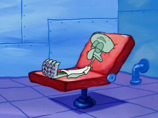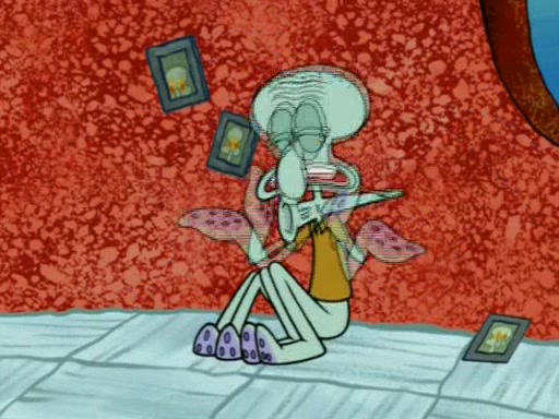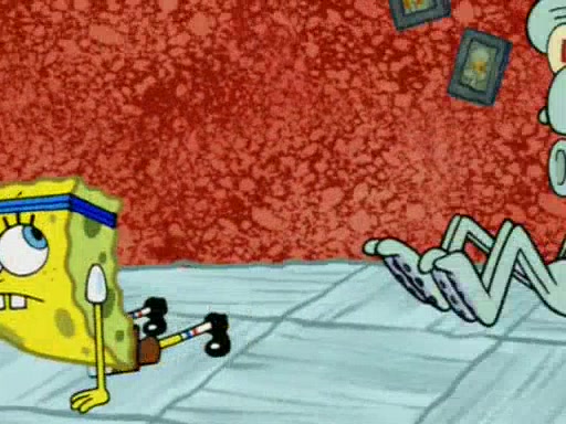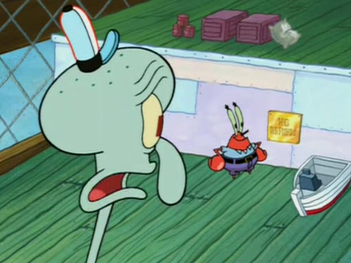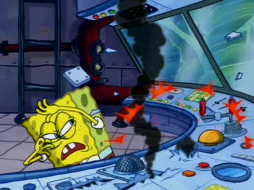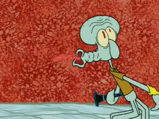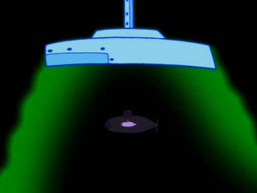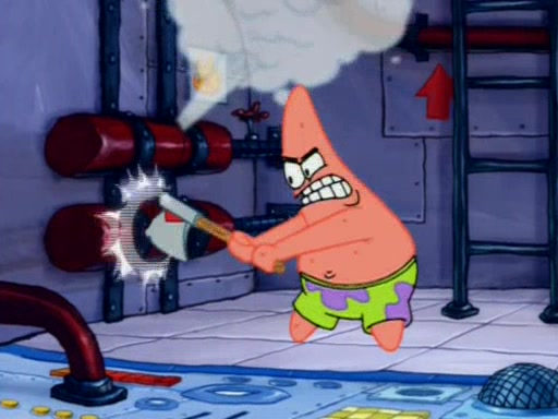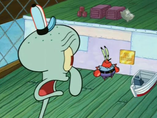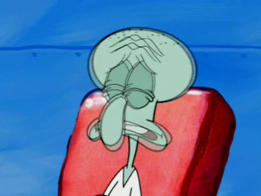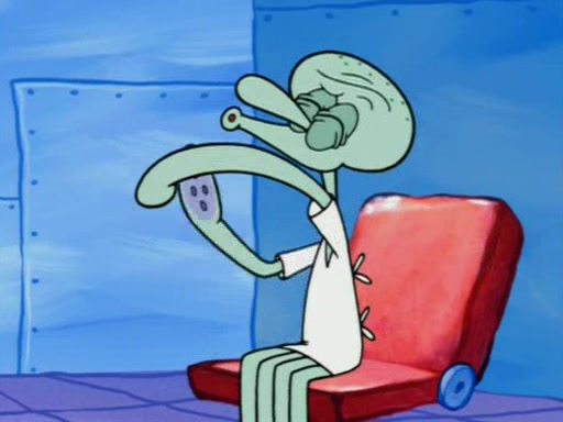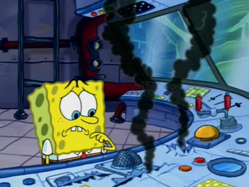 Squidward is next seen at the Krusty Krab looking bloated and his stomach in the shape of a submarine. A flush sound is then heard, followed by Patrick, still stuck in the submarine in Squidward's body, claiming the toilet is clogged (again, apparently) Squidward groans.
