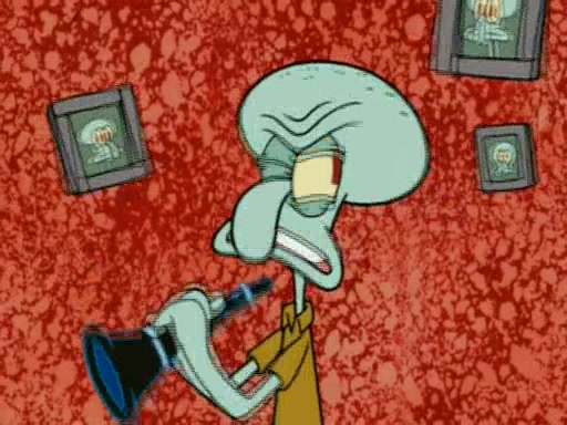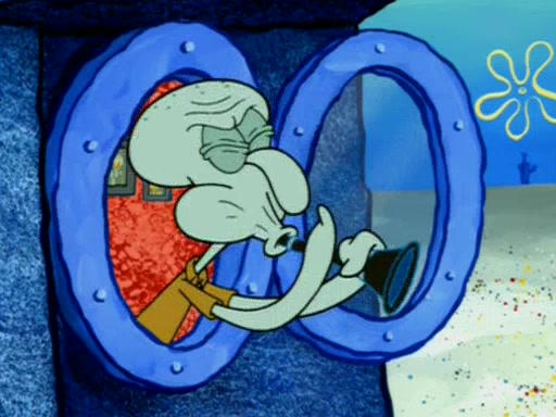 At SpongeBob's house, him and Patrick are dancing. The music is shaking Squidward's house, so Squidward tells them to lower the volume. When they don't listen, Squidward plays a squeaky tune which sends SpongeBob and Patrick flying into Squidward's house and causes SpongeBob to hit Squidward, lodging his clarinet in his throat which makes Squidward make squeaky notes. When SpongeBob gets the clarinet out of Squidward's throat the reed is still stuck in him. They then go to Sandy who has a plan. She decides to go in a submarine, shrink herself (and the submarine), go into Squidward's body and retrieve the reed.