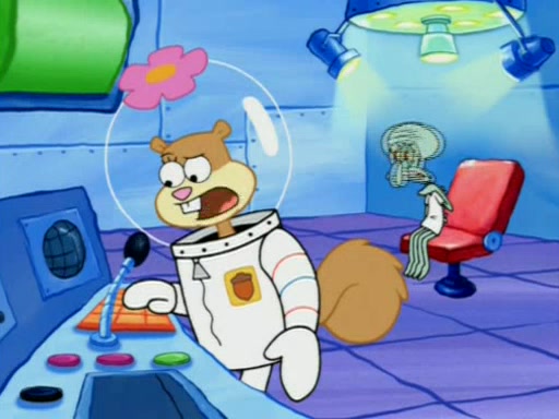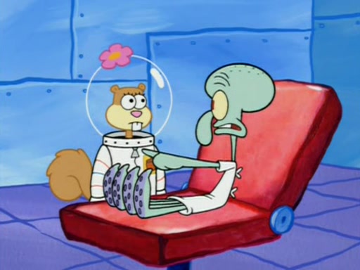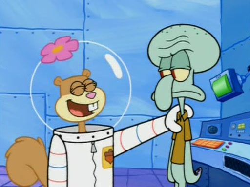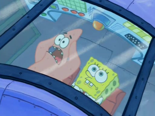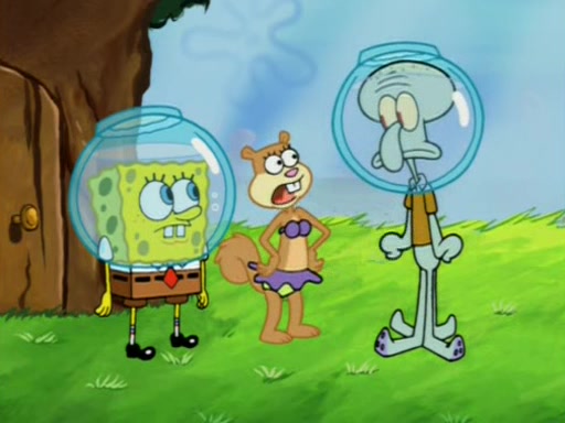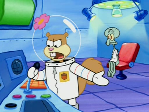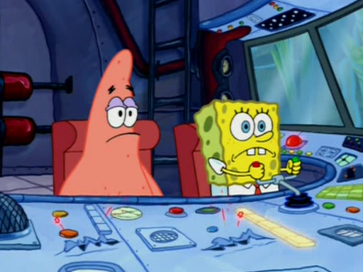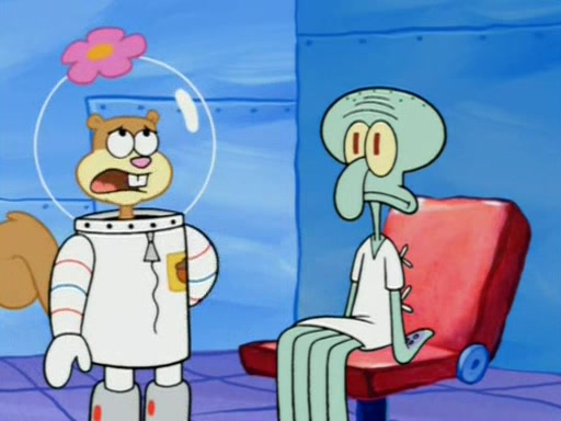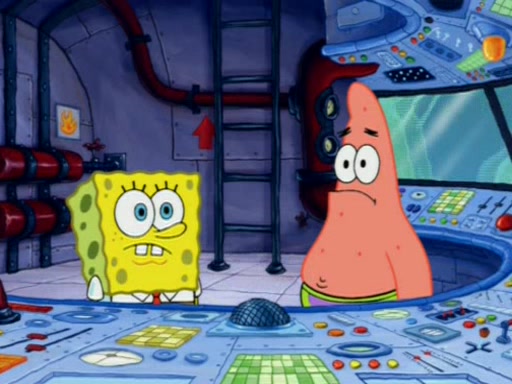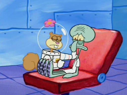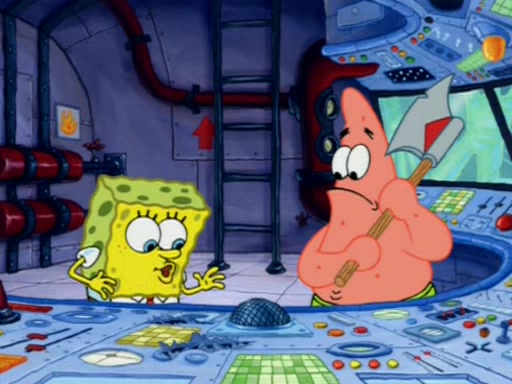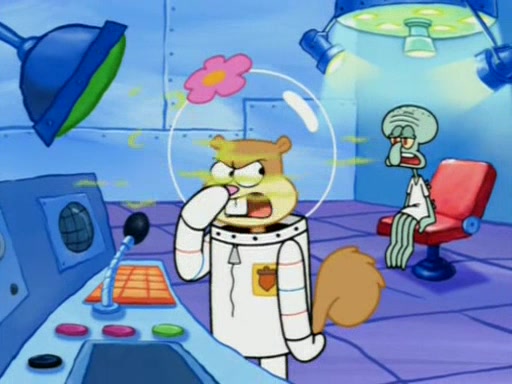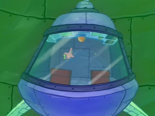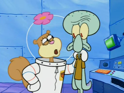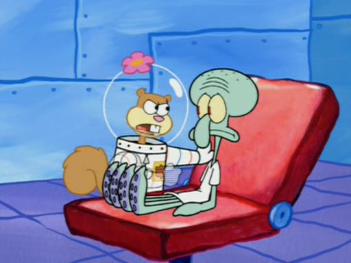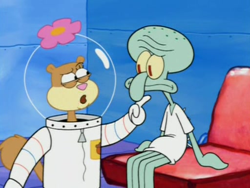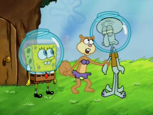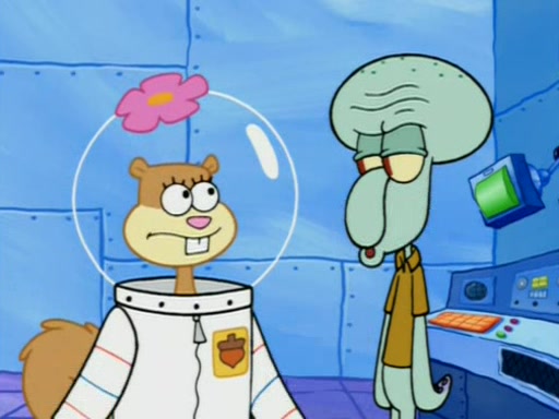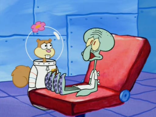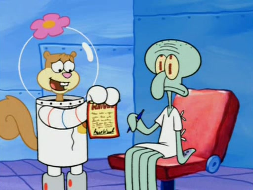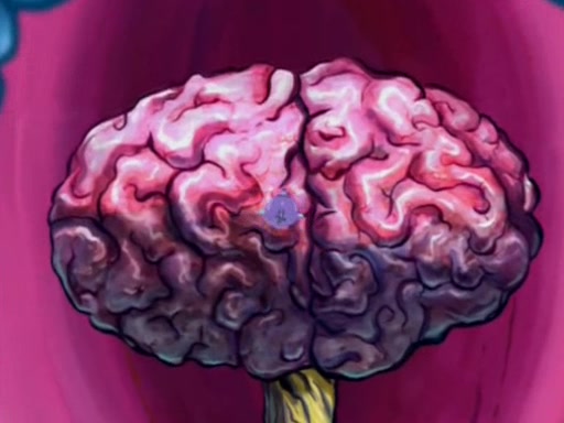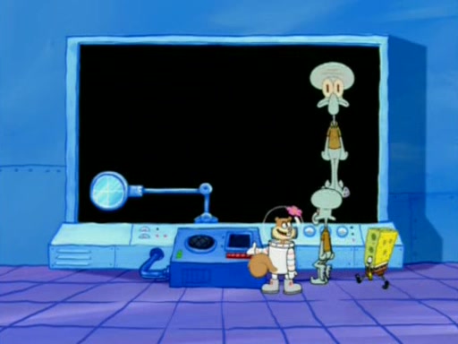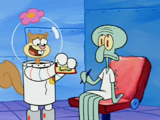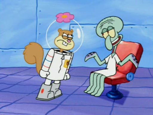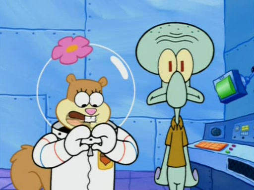 When Sandy goes to get some acorns and nuts from the Treedome she tells SpongeBob to guard the submarine. Patrick walks by and manipulates SpongeBob to guard the submarine from the inside. They go in there and guard it when Patrick presses the shrink button, shrinking the submarine. Sandy comes back and notices them. She then has to guide them to Squidward's brain. There, SpongeBob and Patrick start to hit parts of the brain, causing Squidward to lose self-control.