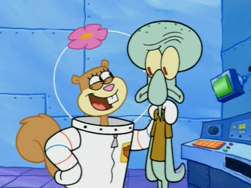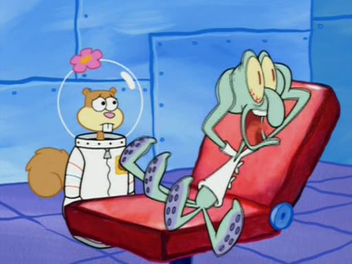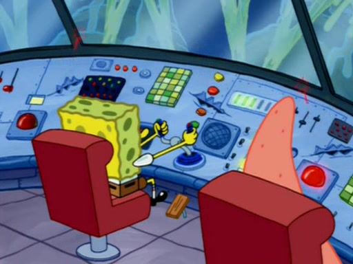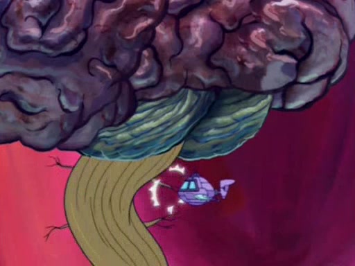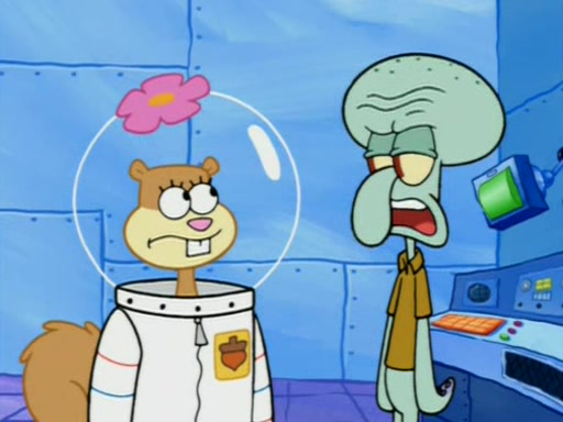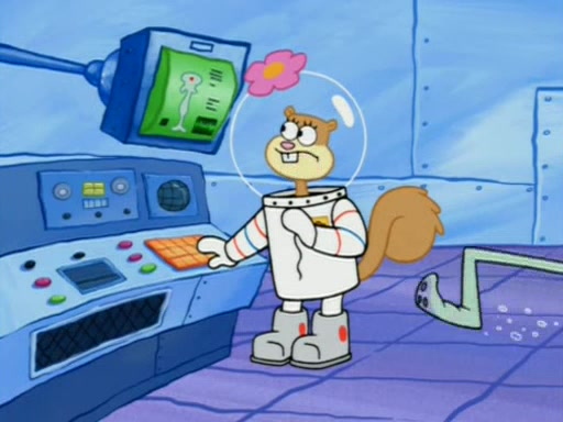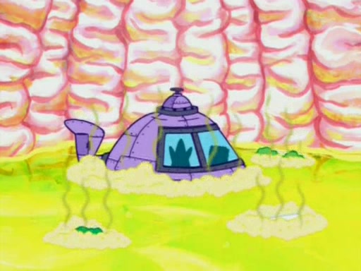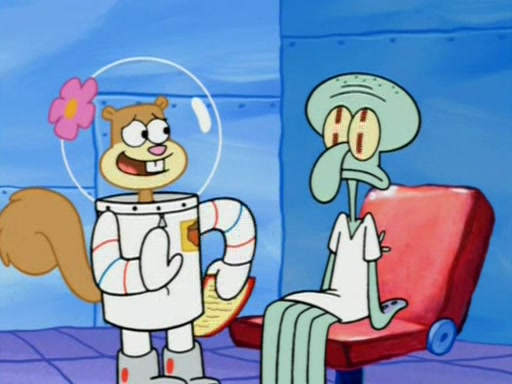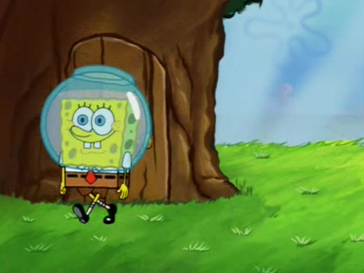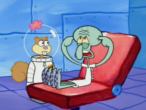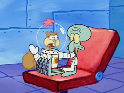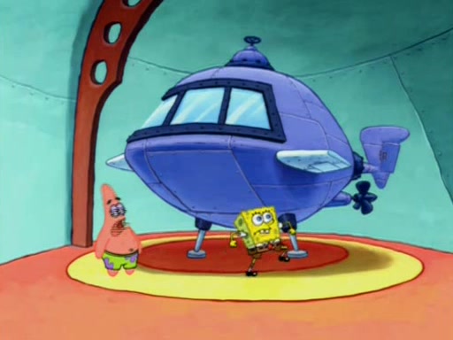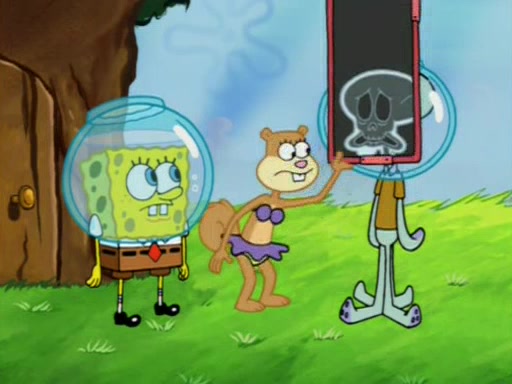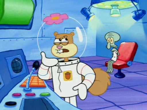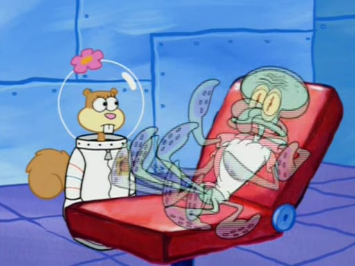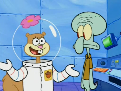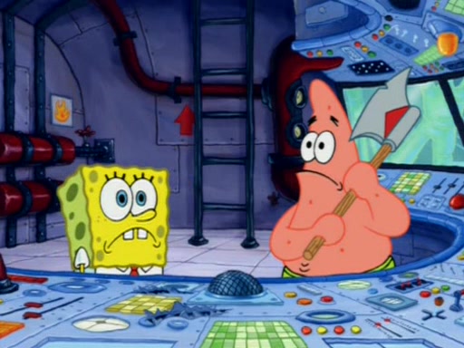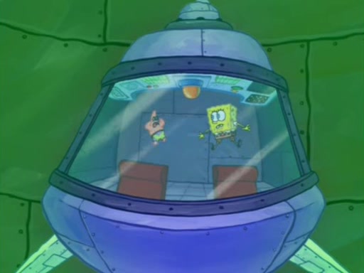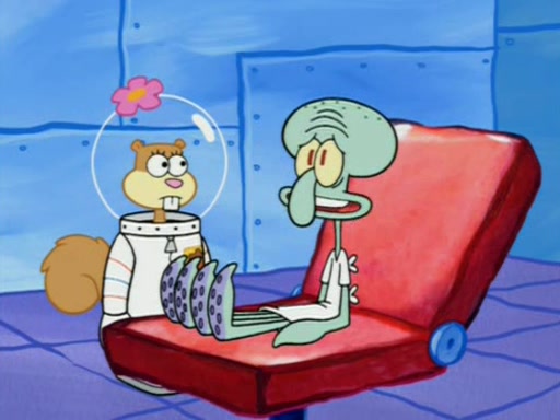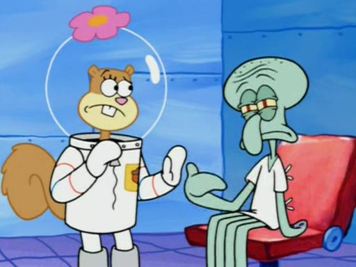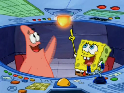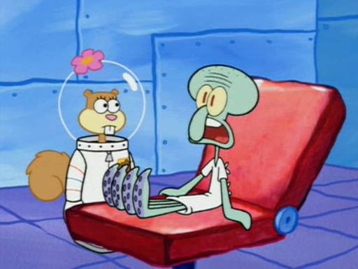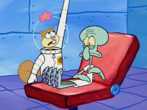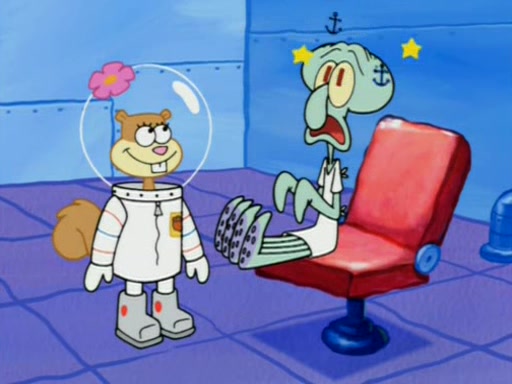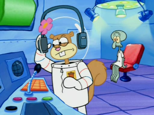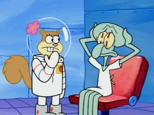 When Sandy goes to get some acorns and nuts from the Treedome she tells SpongeBob to guard the submarine. Patrick walks by and manipulates SpongeBob to guard the submarine from the inside. They go in there and guard it when Patrick presses the shrink button, shrinking the submarine. Sandy comes back and notices them. She then has to guide them to Squidward's brain. There, SpongeBob and Patrick start to hit parts of the brain, causing Squidward to lose self-control.
