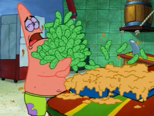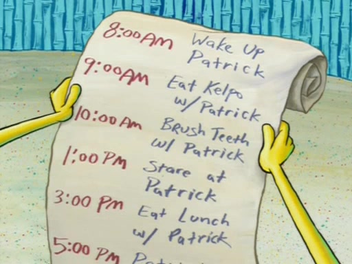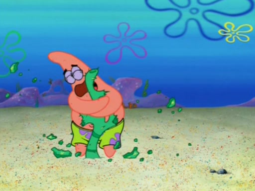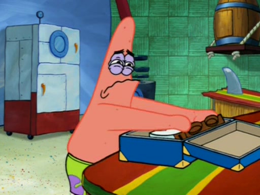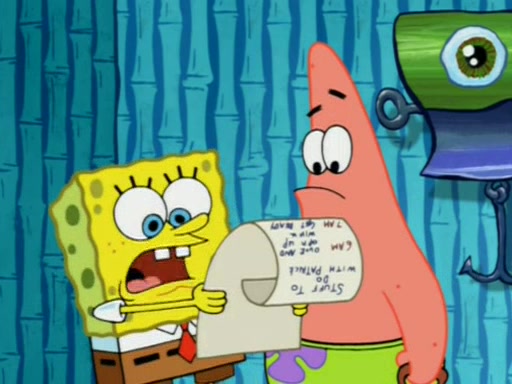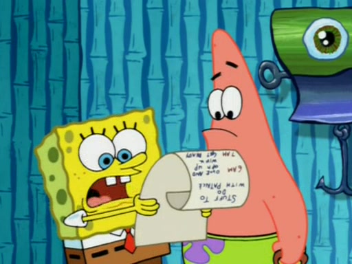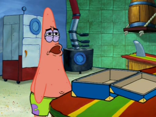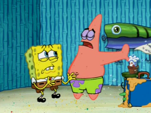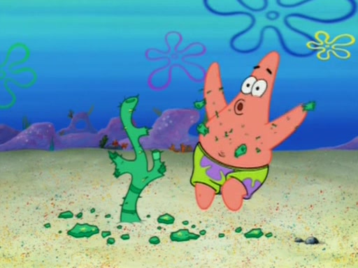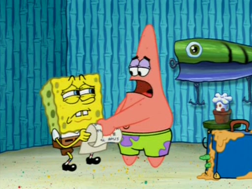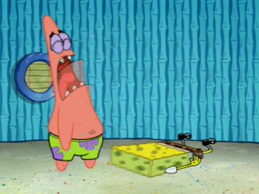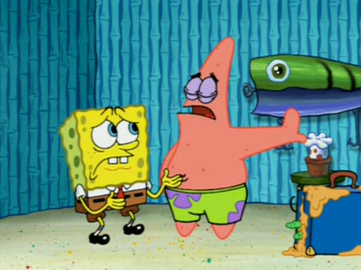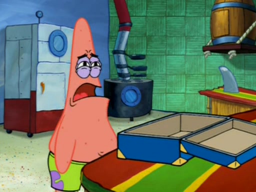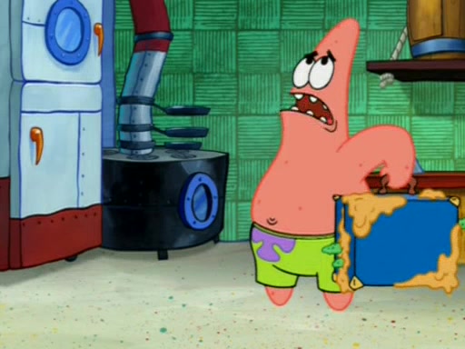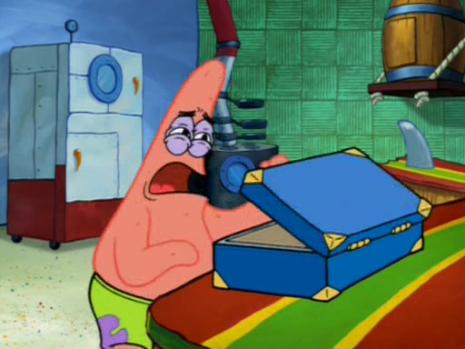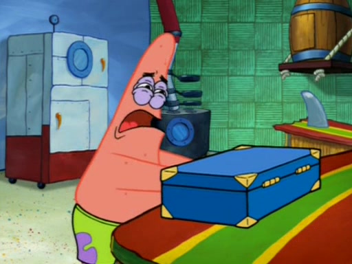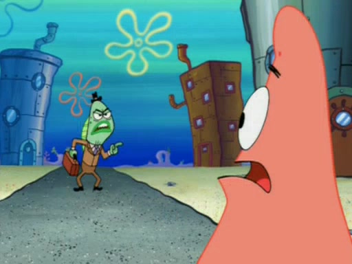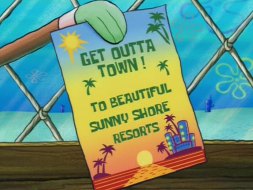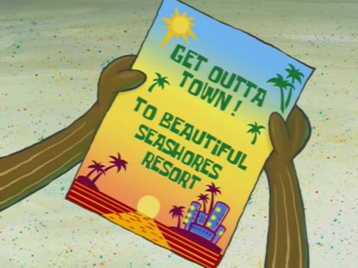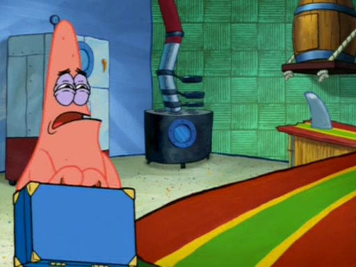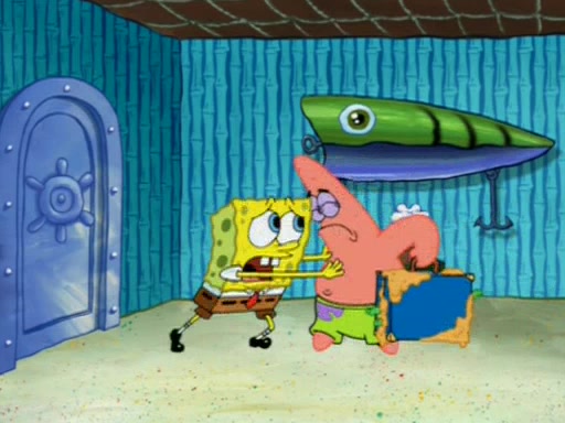 While Patrick was running around in Bikini Bottom, a stranger yells at him telling him to "get out of town," causing Patrick to run away scared. But then the stranger tells another fish to "get out of town," and shows that it was for a luxury vacation at a modest price. Patrick, unaware of this, becomes convinced he's in danger and tells SpongeBob he's going to move. So he packs "his" things (actually SpongeBob's), and is ready to leave.