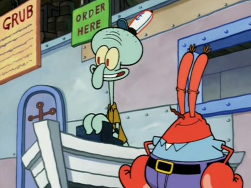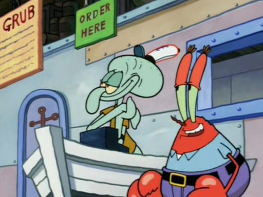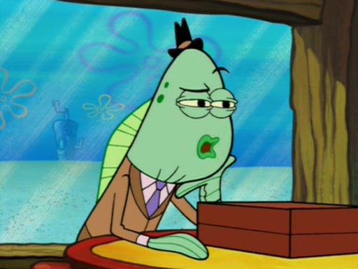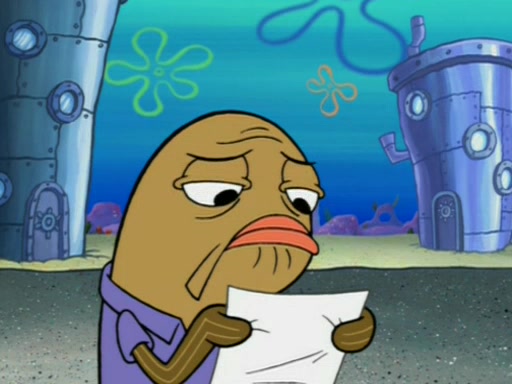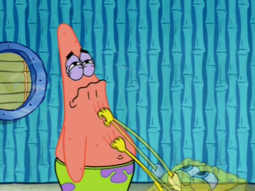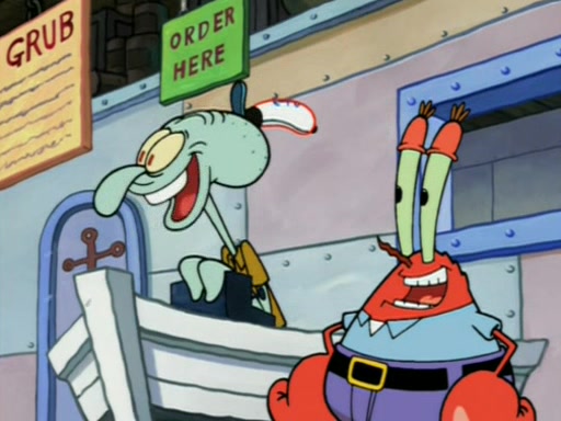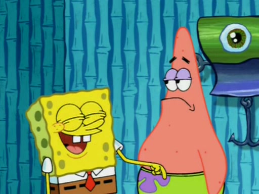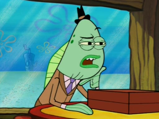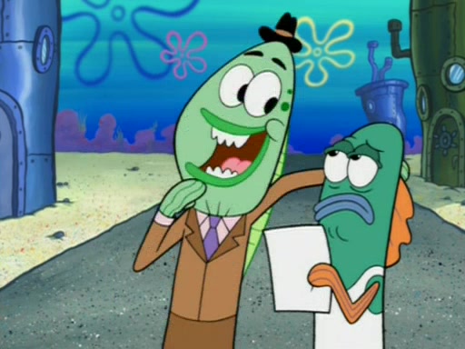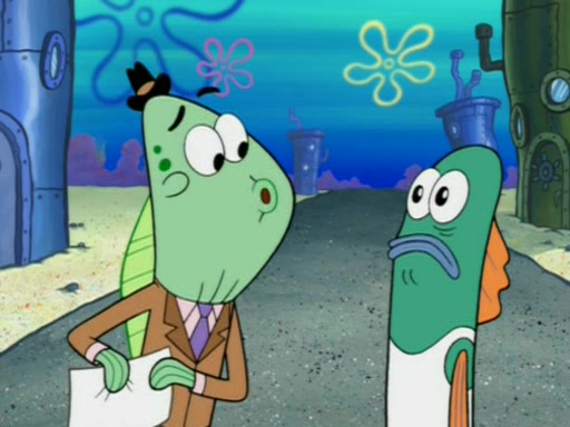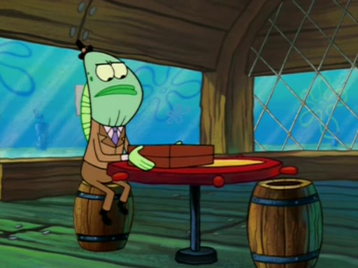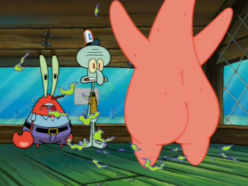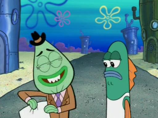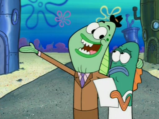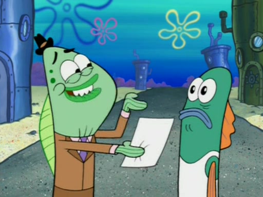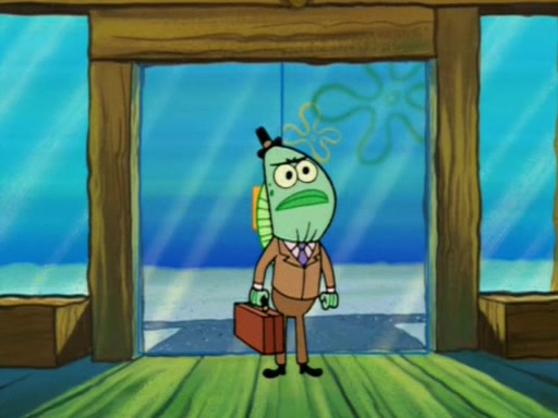 Later, he finds out the fish ("the guy with the briefcase") was just trying to sell him a luxury vacation at a modest price. Patrick then goes, and rips off all his clothes. When the Bikini Bottomites find out the truth, Squidward's eyelids started to close tight after seeing Patrick naked, and Mr. Krabs fires Patrick because he isn't a girl. SpongeBob and Patrick then run out of the Krusty Krab doing their plans.