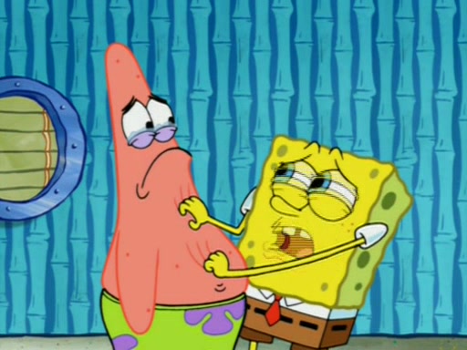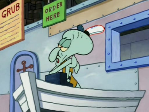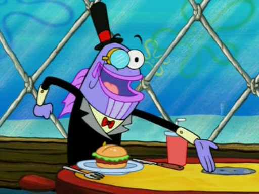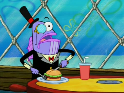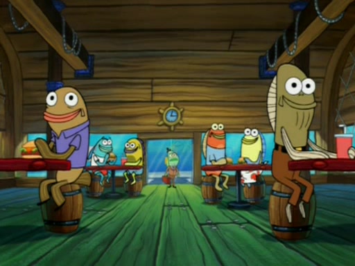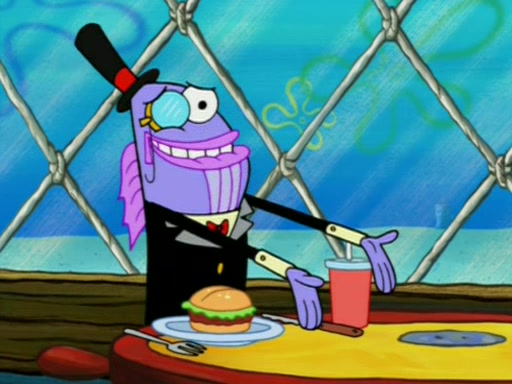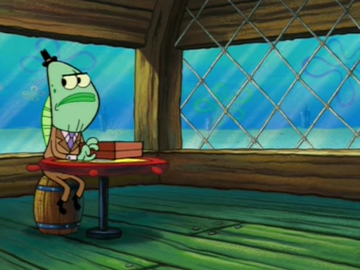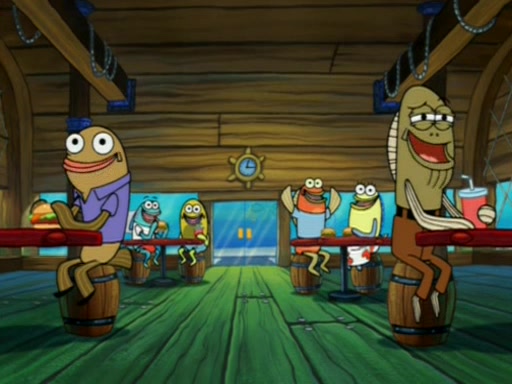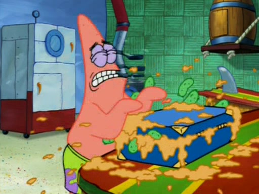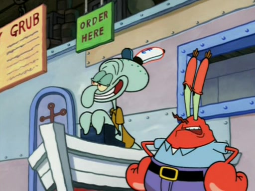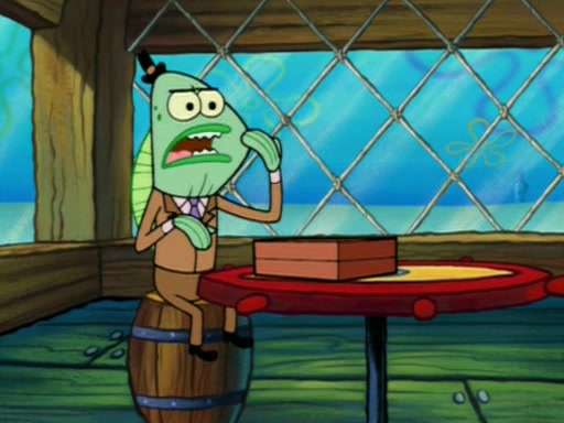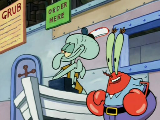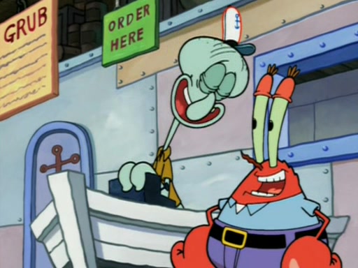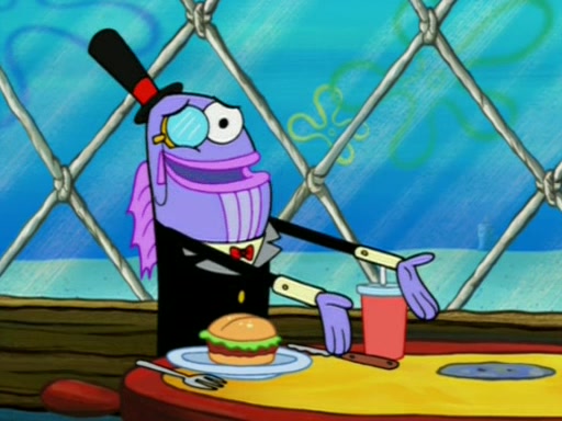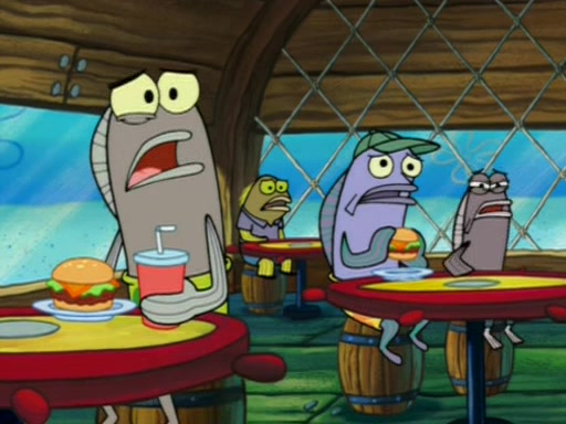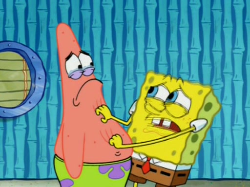 Later, he finds out the fish ("the guy with the briefcase") was just trying to sell him a luxury vacation at a modest price. Patrick then goes, and rips off all his clothes. When the Bikini Bottomites find out the truth, Squidward's eyelids started to close tight after seeing Patrick naked, and Mr. Krabs fires Patrick because he isn't a girl. SpongeBob and Patrick then run out of the Krusty Krab doing their plans.