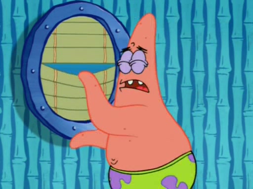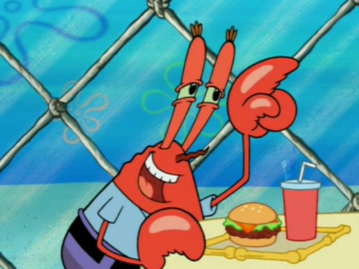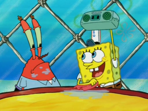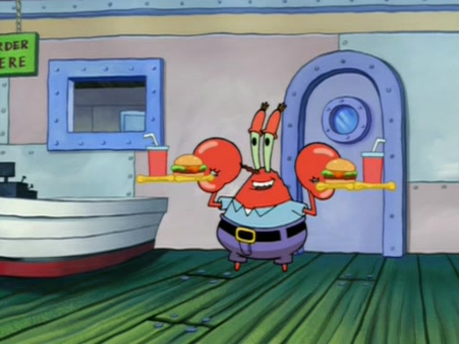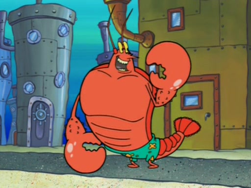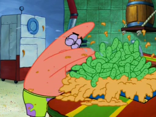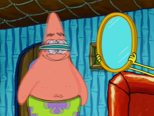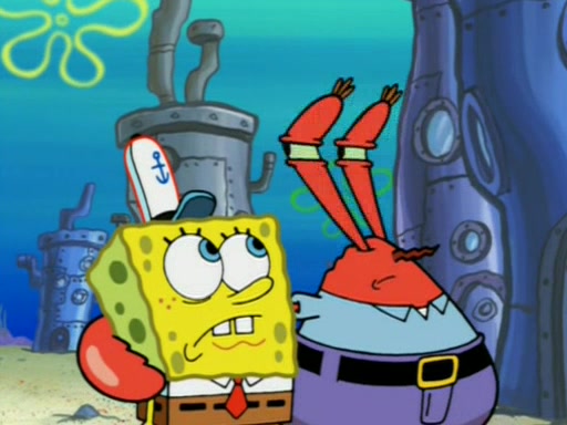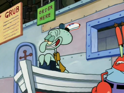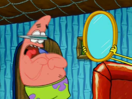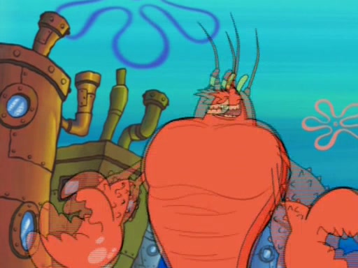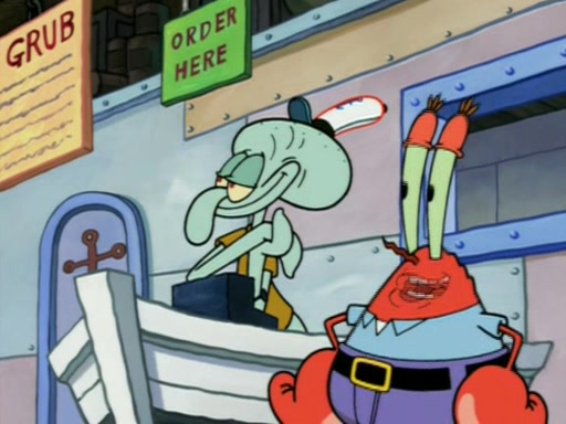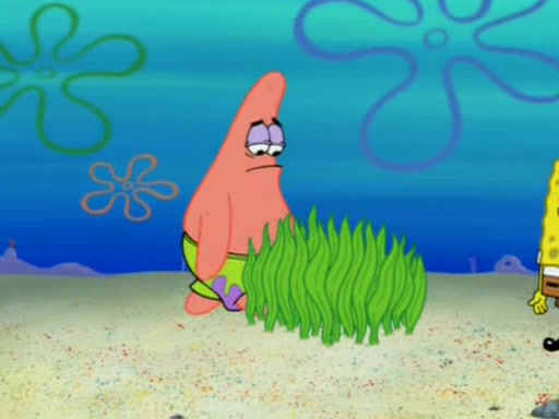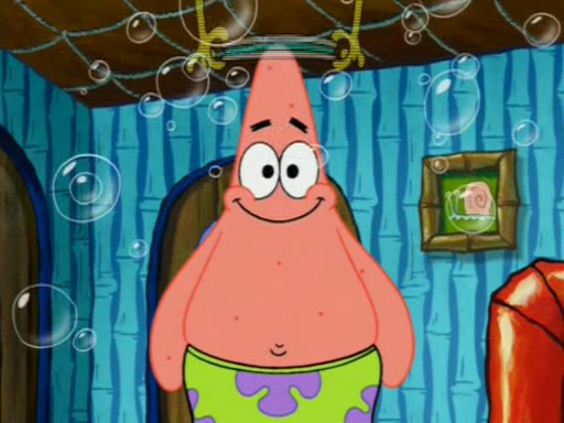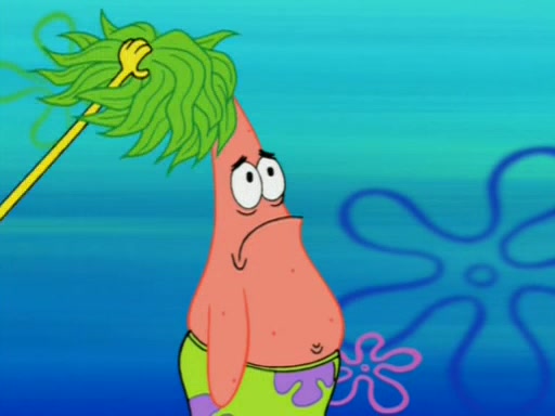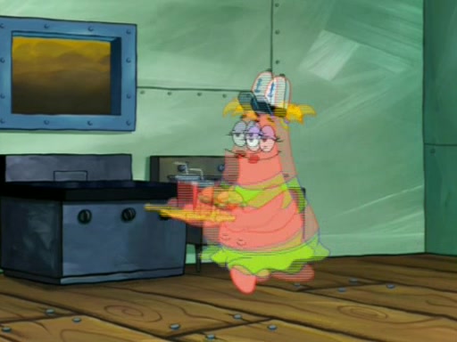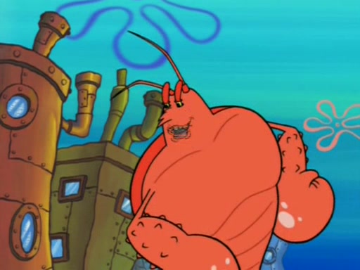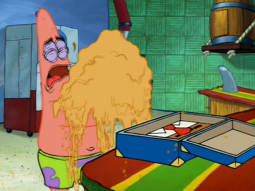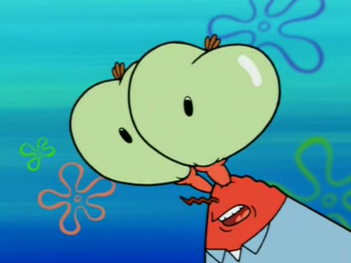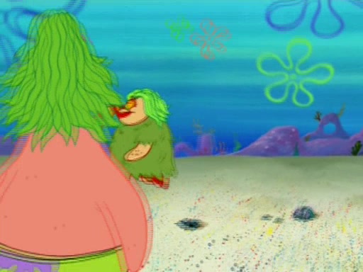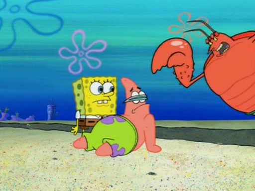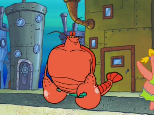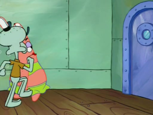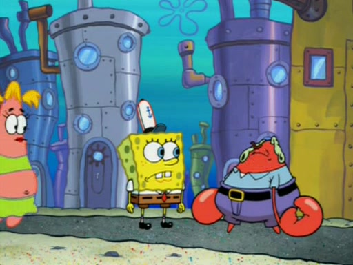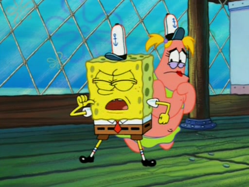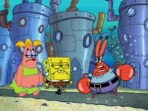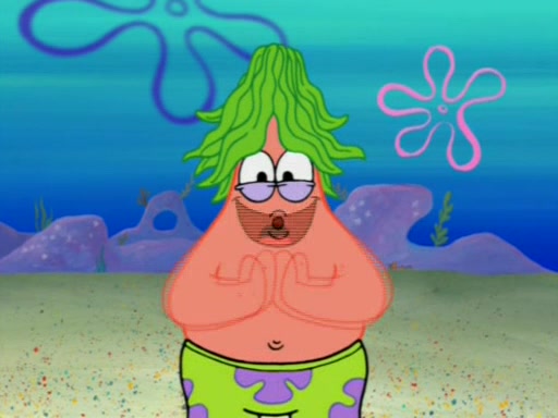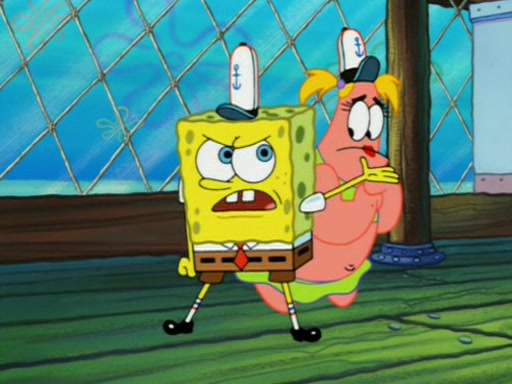 But SpongeBob tells him he can change his identity. So SpongeBob performs a makeover on Patrick and after many tries, he comes up with the idea of making him look like a woman under the name "Patricia." Every male Bikini Bottomite falls in love with "her," especially Squidward and Mr. Krabs, who only hires Patricia since he was a girl. Mr. Krabs and Squidward also flirt with Patricia, although this doesn't present a problem to him. Patrick has no idea what's making Mr. Krabs and Squidward act so weird and nice to him. All of the men fight over Patricia but "she" ignores them.