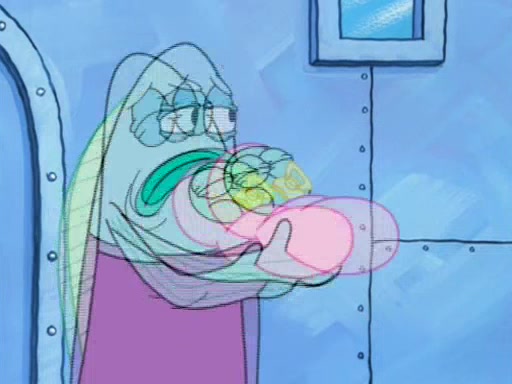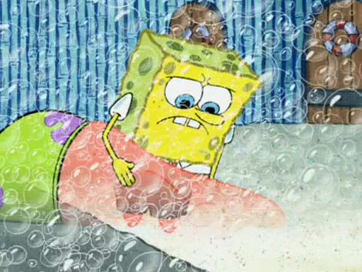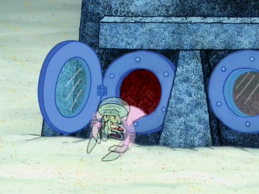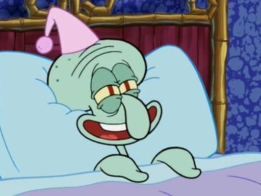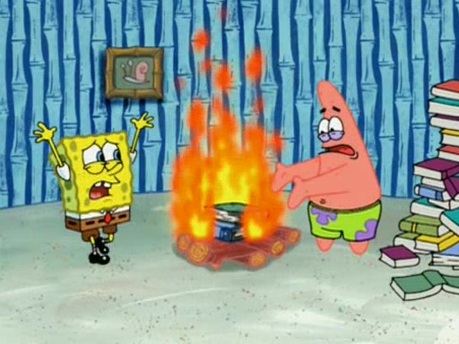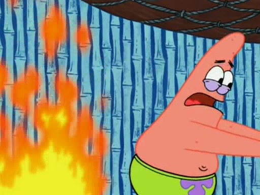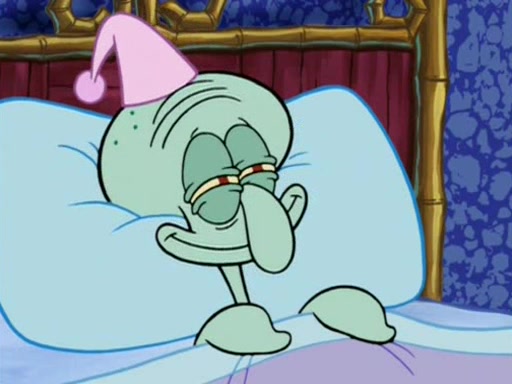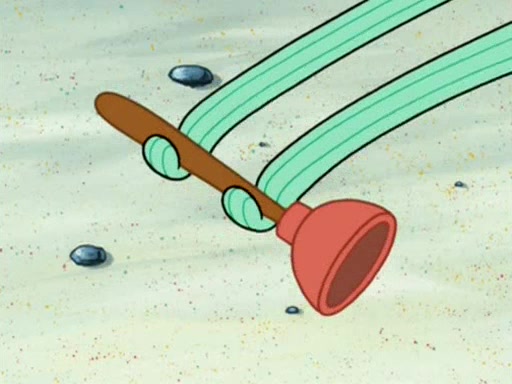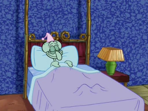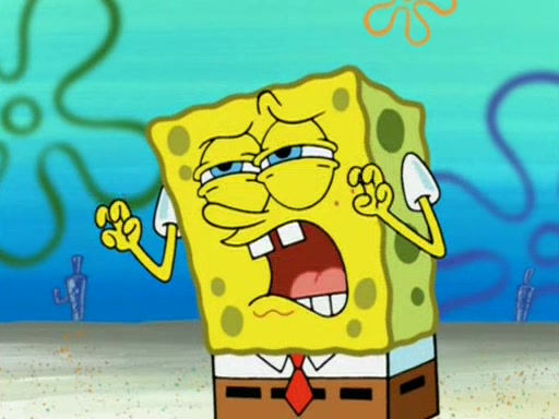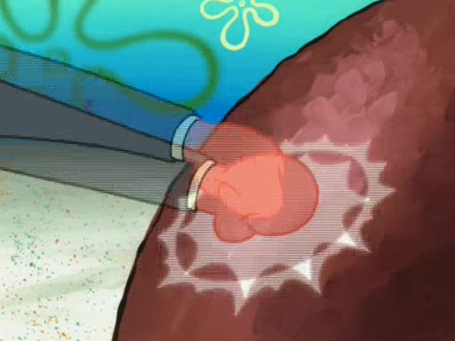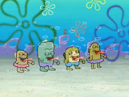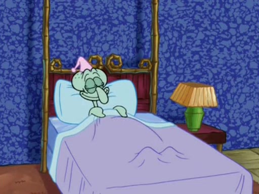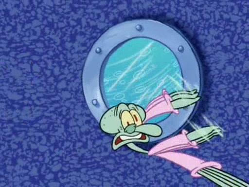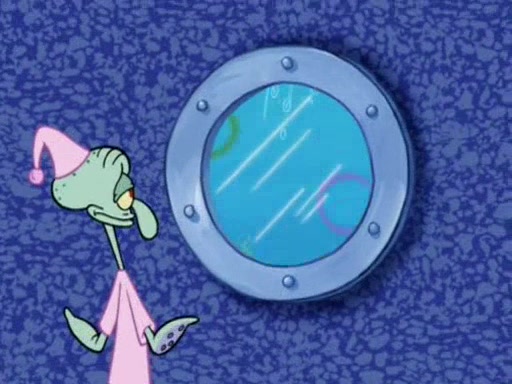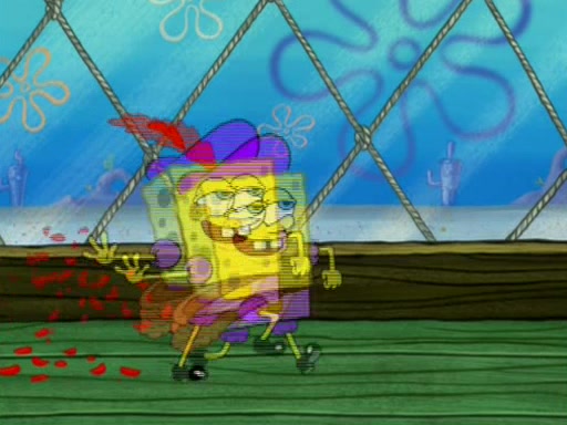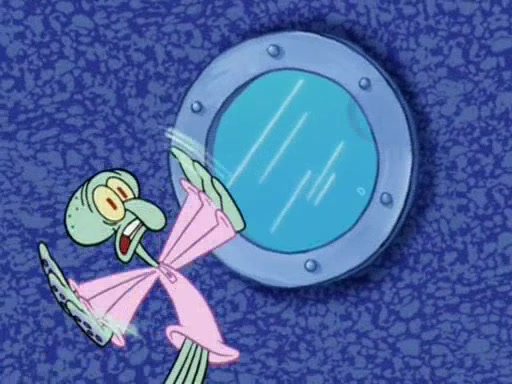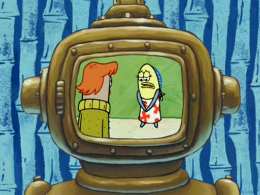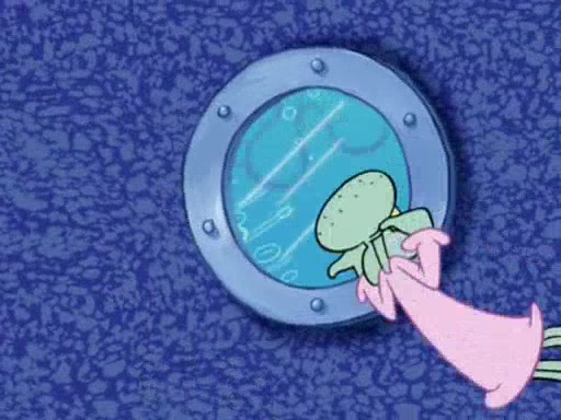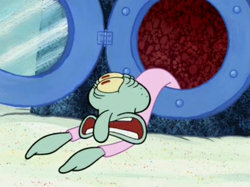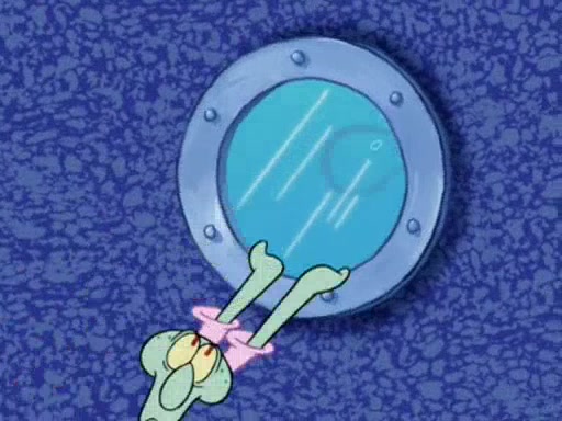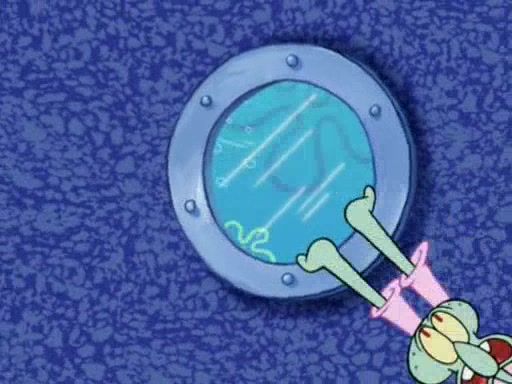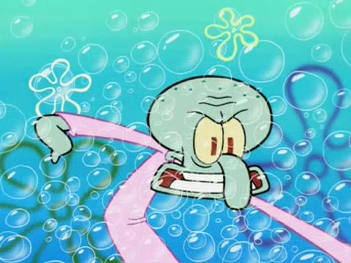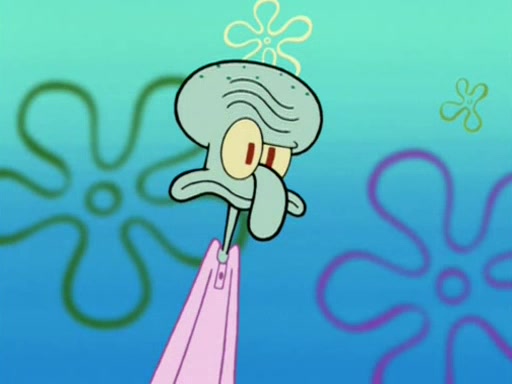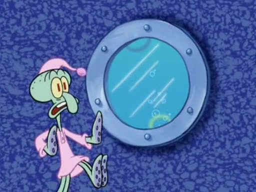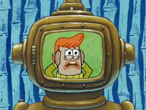 Patrick then gets other citizens to line up leading to his rock, which is turned into a magnificent castle, with one of their possessions. After SpongeBob gains a walker from an old man for Patrick, he comes down to give Patrick his opinion on whether to put his plasma screen TV by the fancy egg display or the indoor swimming pool, which is seen shaped as a star, and is obviously known because he is a starfish. Next morning, Squidward wakes up in a good mood. But that is quickly spoiled when he is blown away by the wind inside his house because Patrick is making a crane move it back a little to build a ferris wheel. Squidward finally explodes after coming out of his house and announces to everyone that Patrick couldn't be a king because he is much too stupid and tells them that he can't be a king of anything (except of being a moron). The townspeople believe Squidward and abandon Patrick. Patrick then explodes and requests SpongeBob to attack Squidward. SpongeBob pretends to go to Squidward right away, but really asks Squidward to sign a treaty. But Squidward rolls up the treaty and plugs it into one of SpongeBob's craters just by throwing it.