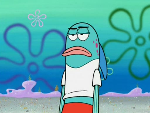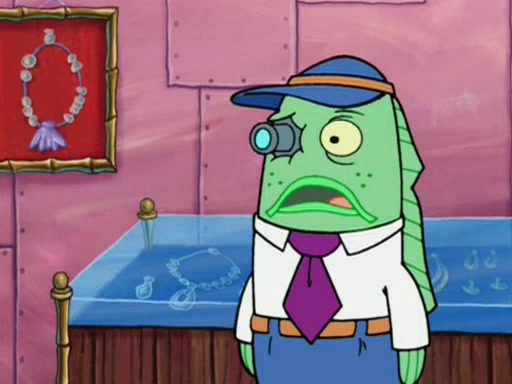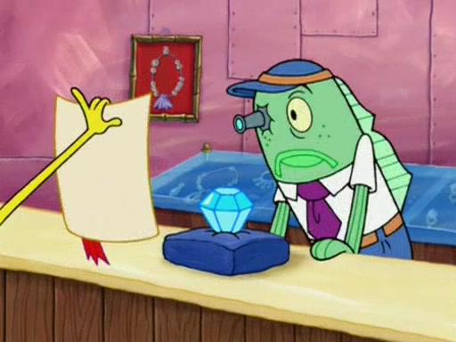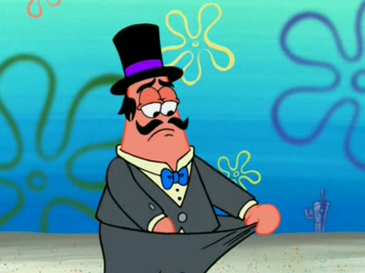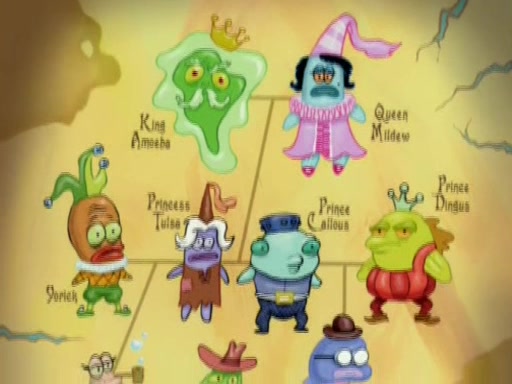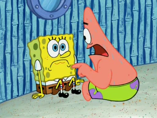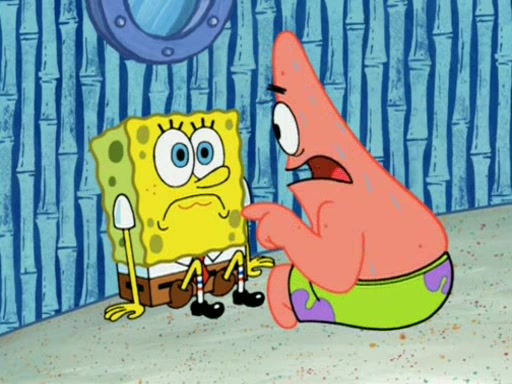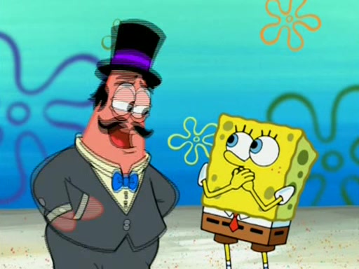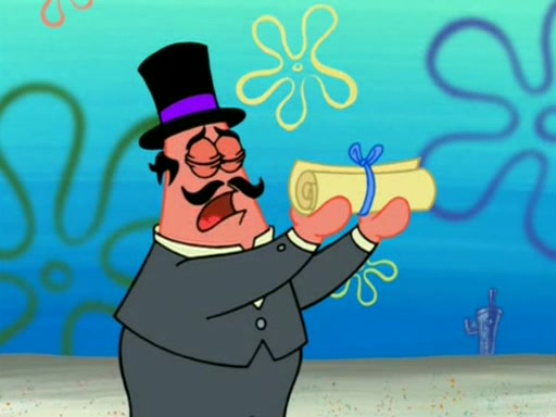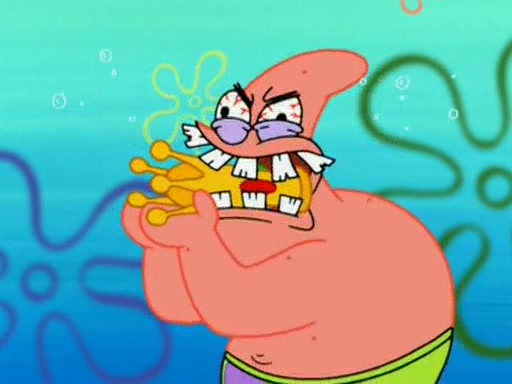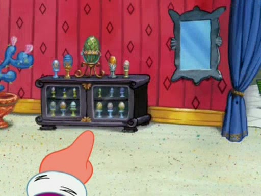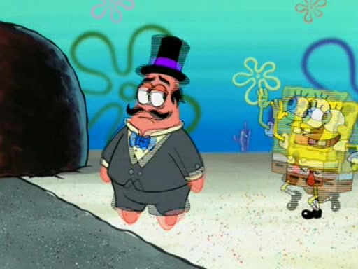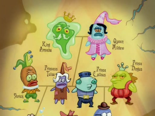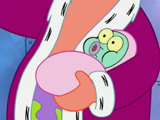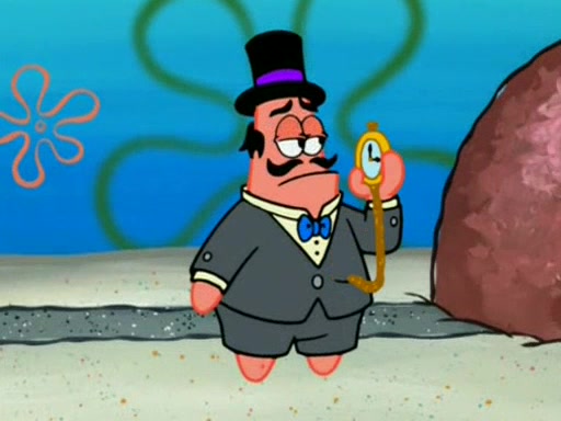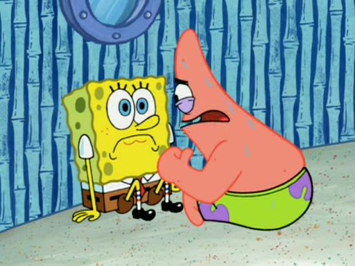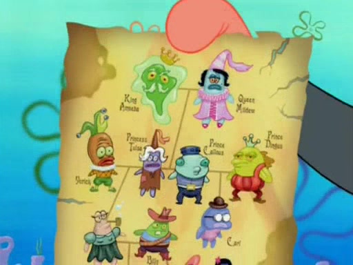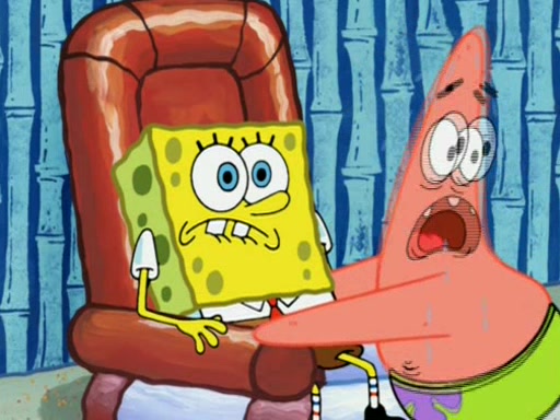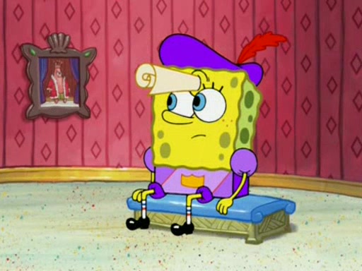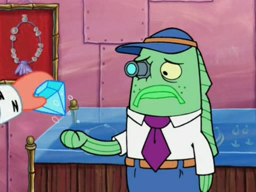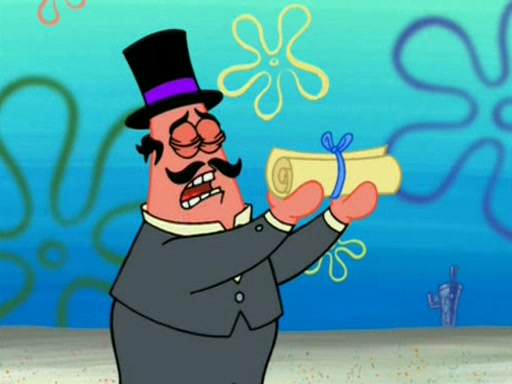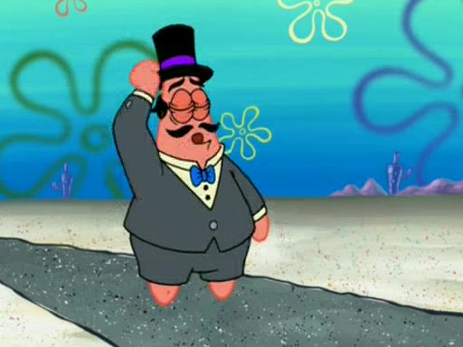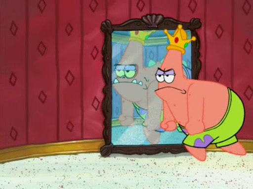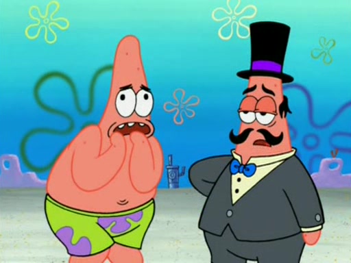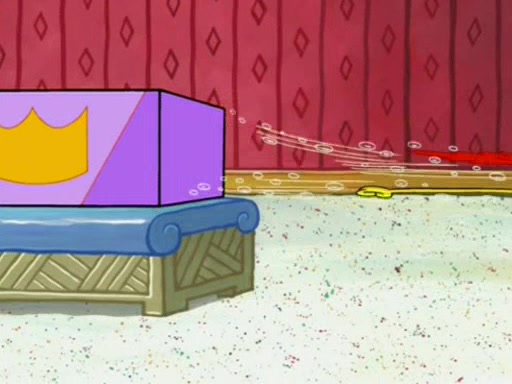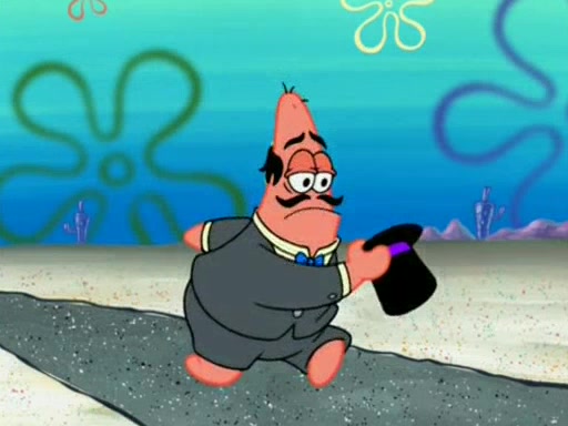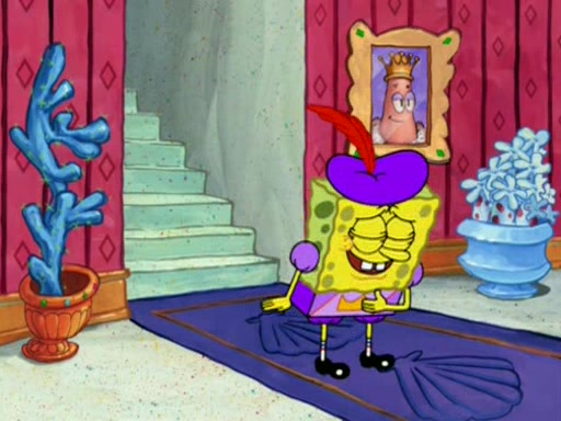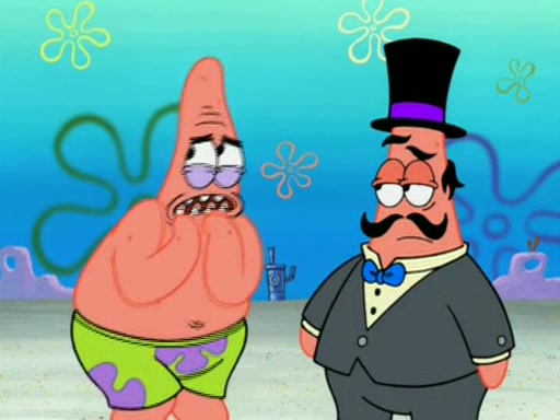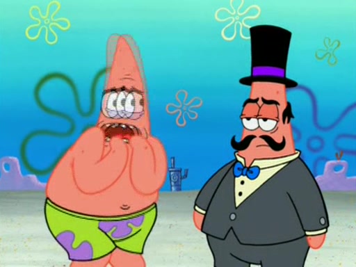 A starfish from the Royal Ministry comes to visit Patrick for a delivery. After Patrick opens his rock, he thinks the starfish is a librarian and has come for his overdue library books. Patrick runs to SpongeBob's house and cries about it. SpongeBob covers for Patrick by coming up to the man and greeting him. The starfish then asks SpongeBob if he knows Patrick, but SpongeBob lies and says: "No, I do not know any starfish!" in surprise and shock. When the starfish announces he has a gift for Patrick, which is a crown; Patrick dashes out of SpongeBob's house and grabs his gift. He starts chewing it and licking it, and announces it's a terrible-tasting gift. The starfish explains it's an item to wear, not to eat. Patrick is pleased when he gets the shiny crown. The starfish explains that he had uncovered a family tree showing Patrick to be descended from a king thus making him an official king.