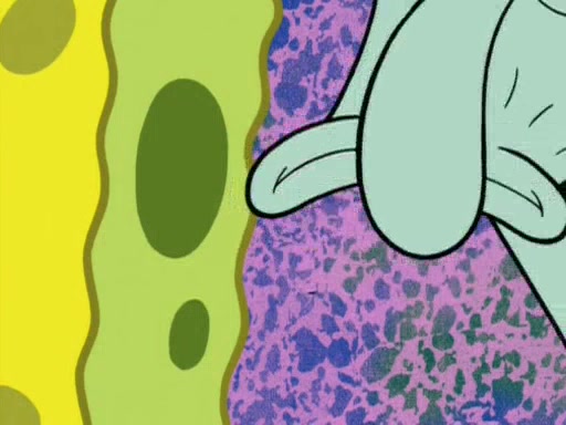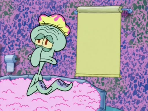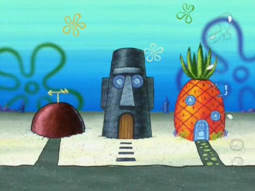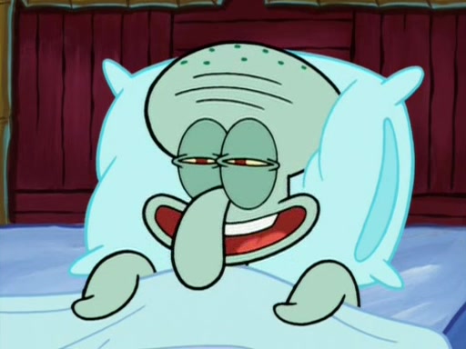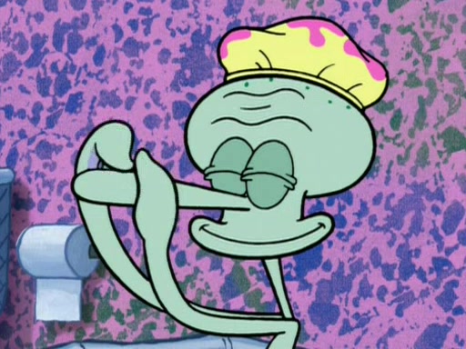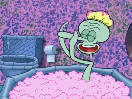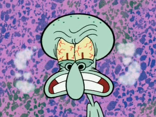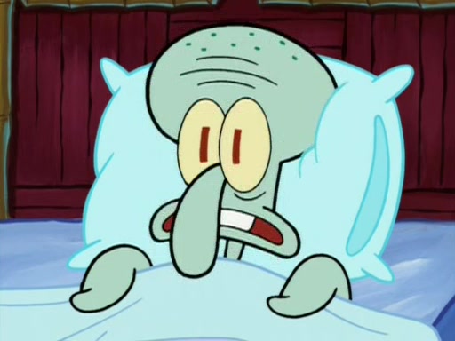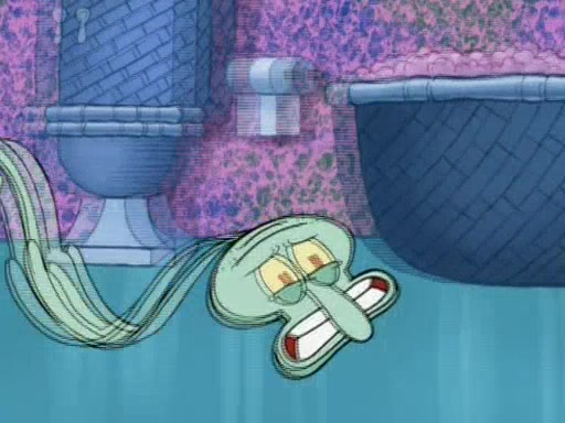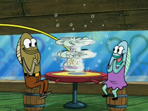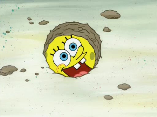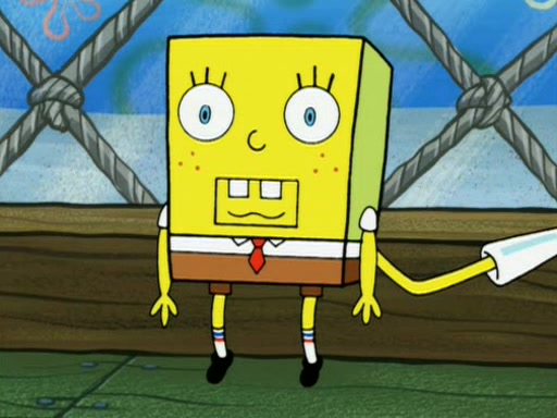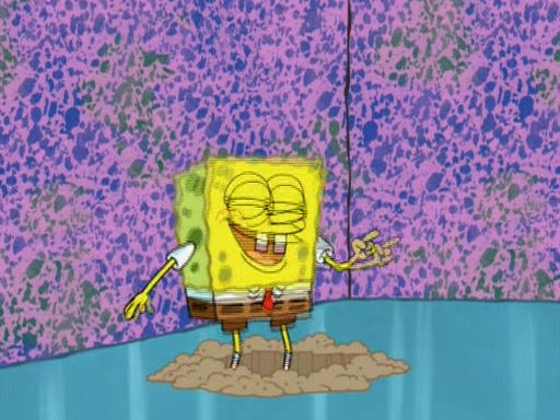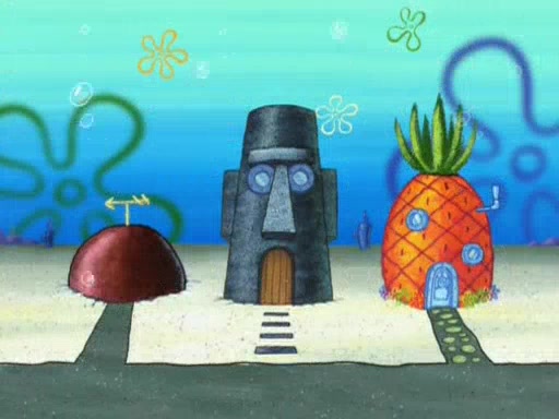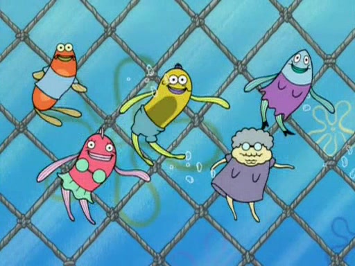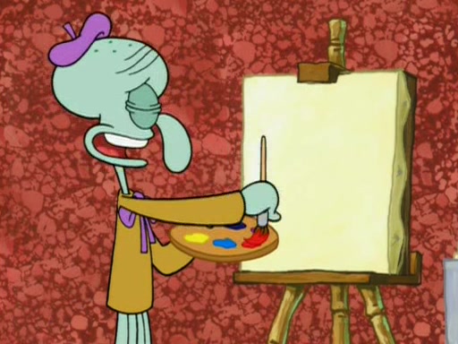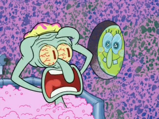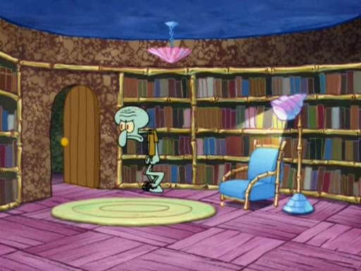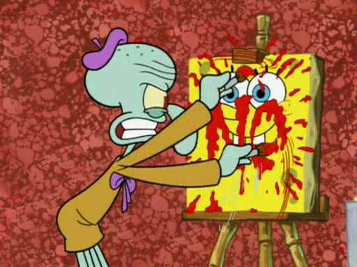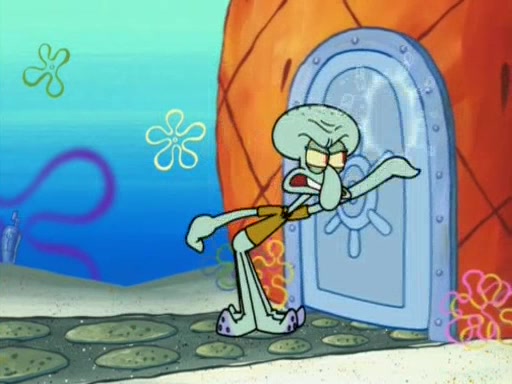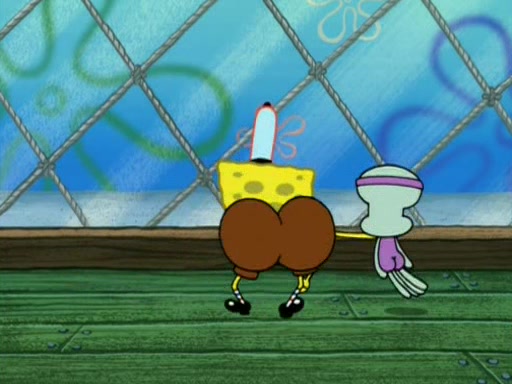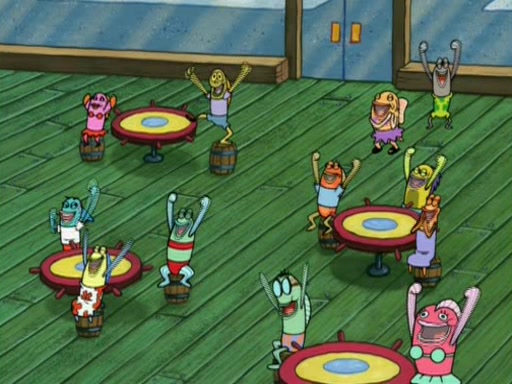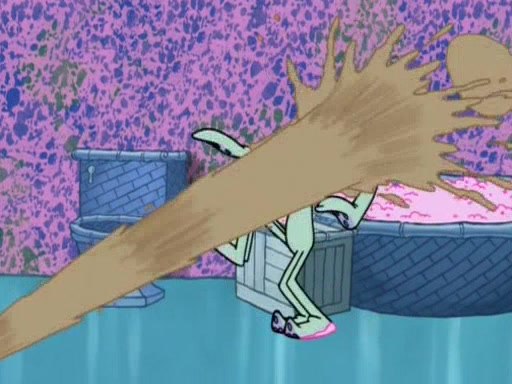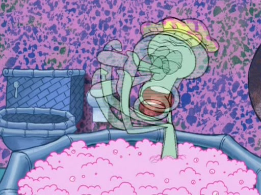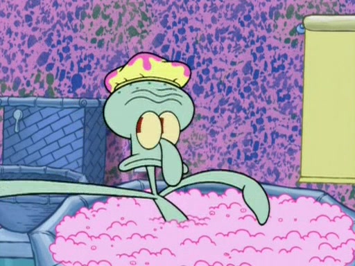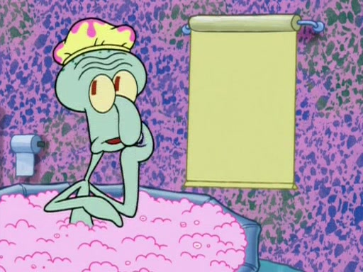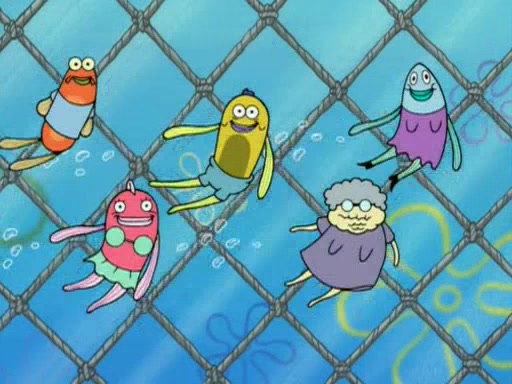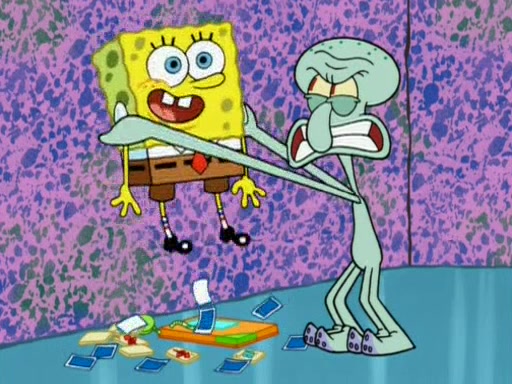 While SpongeBob and Mini Squid play Charades, Patrick walks by and thinks the Mini Squid is Squidward, and also thinks he's gotten smaller and shaved his beard, even though Squidward doesn't have a beard, confusing SpongeBob and Mini Squid.