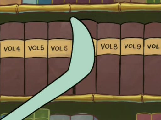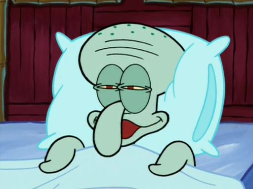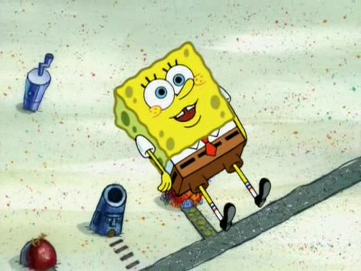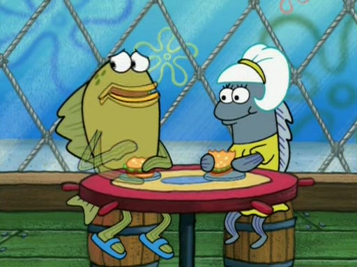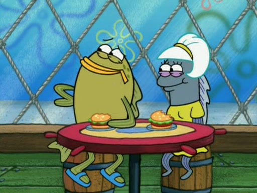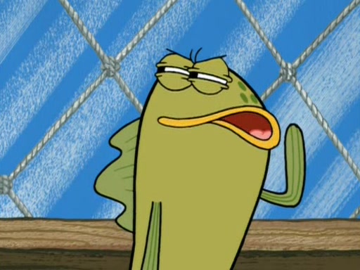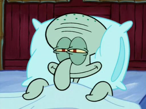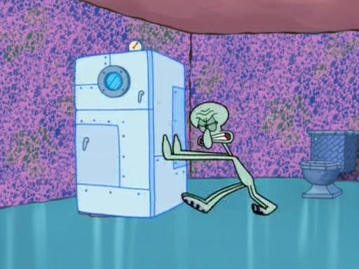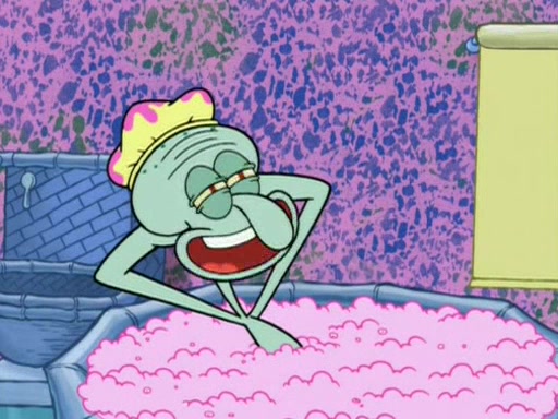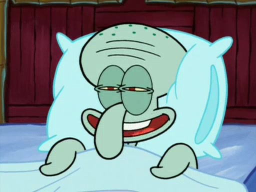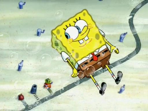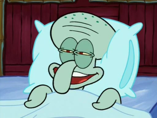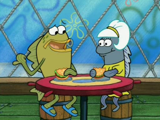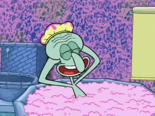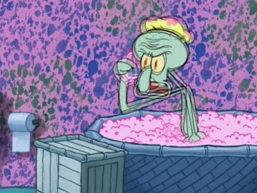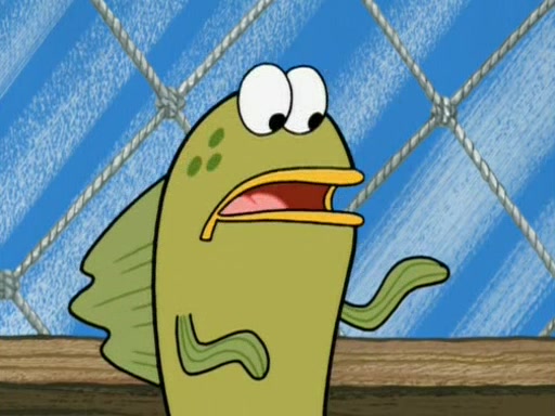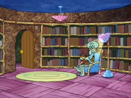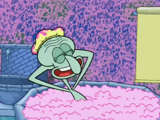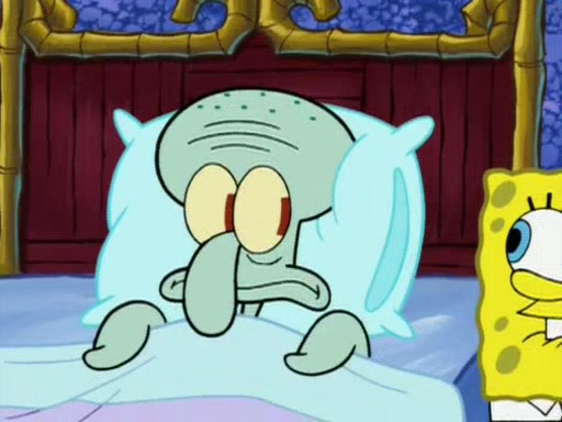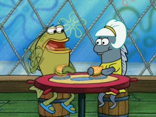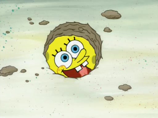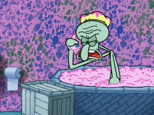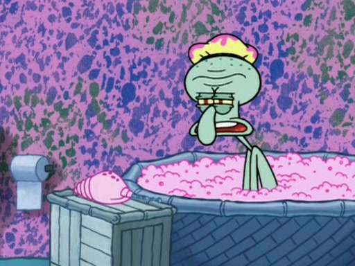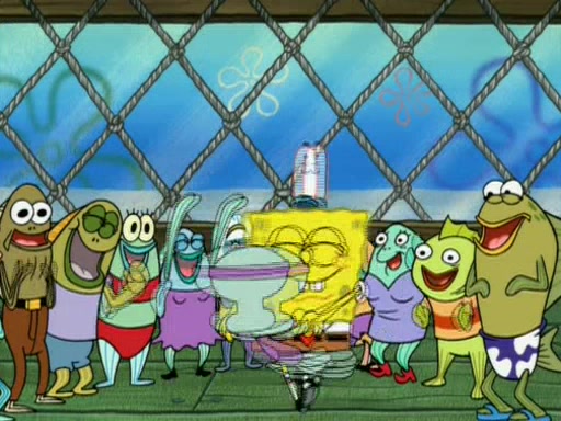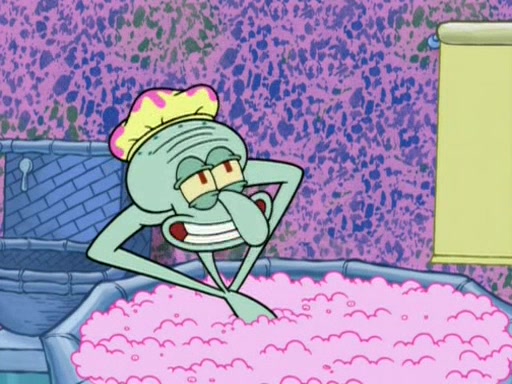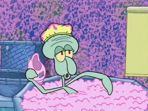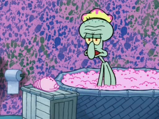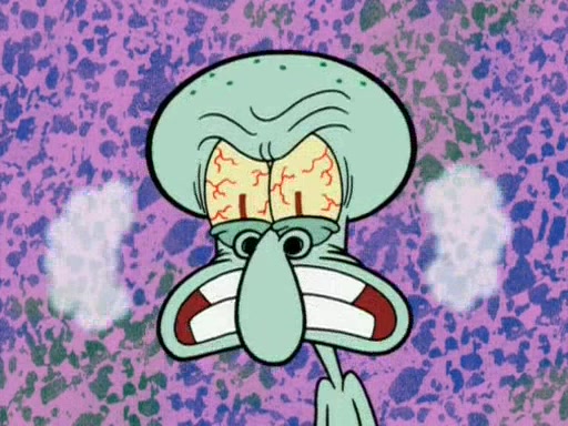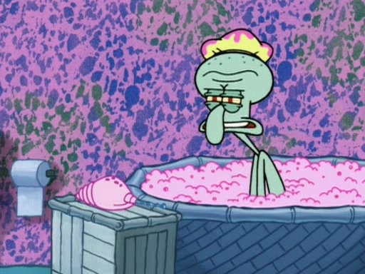 While SpongeBob and Mini Squid play Charades, Patrick walks by and thinks the Mini Squid is Squidward, and also thinks he's gotten smaller and shaved his beard, even though Squidward doesn't have a beard, confusing SpongeBob and Mini Squid.