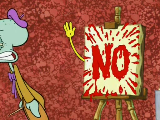 SpongeBob repeatedly annoys Squidward by asking Squidward if he wants to play, but every time Squidward says "No!," SpongeBob thinks he wants to play later every time he says that. After SpongeBob asks Squidward to play a numerous number of games with him, Squidward loses his temper and yells at SpongeBob, "...I will never play with you...EVEEEEERRR!!!" After throwing him down a hole (which SpongeBob drilled when he entered that bathroom) and covering it with his fridge, SpongeBob still thinks Squidward doesn't want to play yet. He runs to his house and creates a wooden, mini-version of Squidward, and calls him "Mini Squid." After hearing that Mini Squid will be playing with SpongeBob if Squidward doesn't want, Squidward becomes incredibly enlightened.