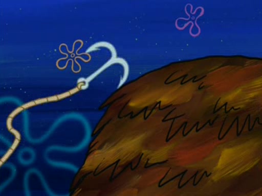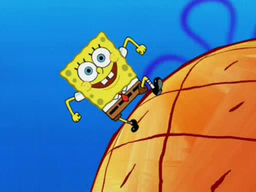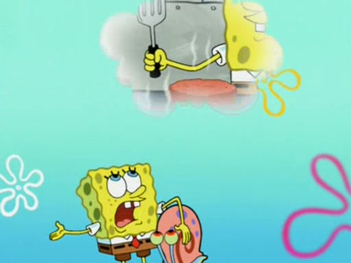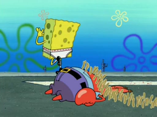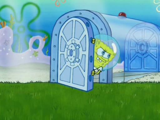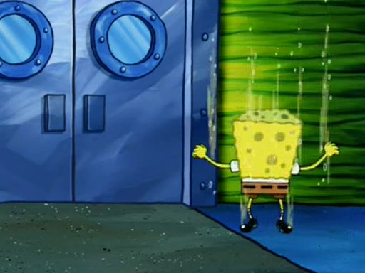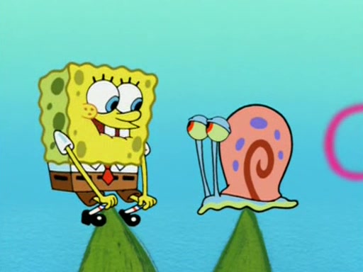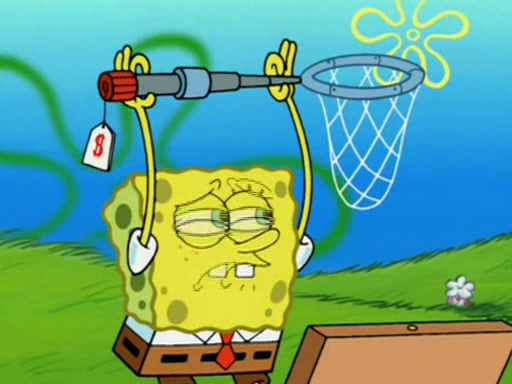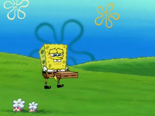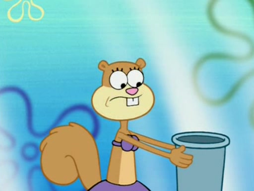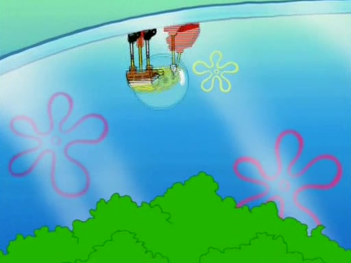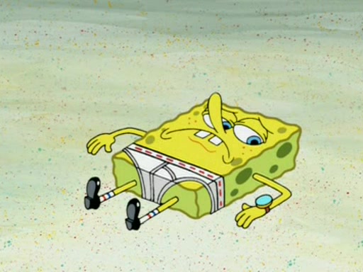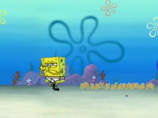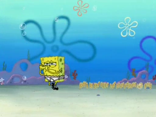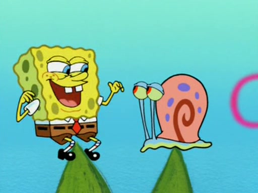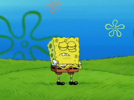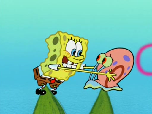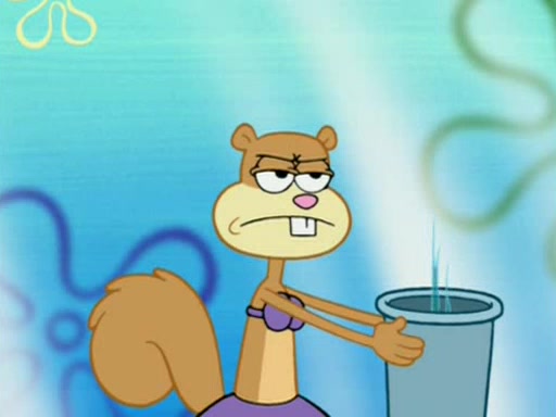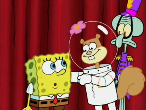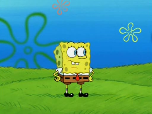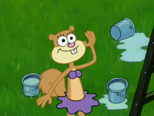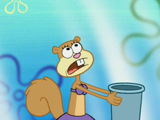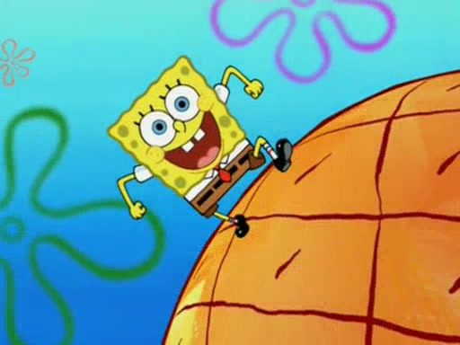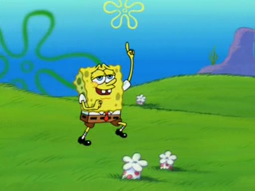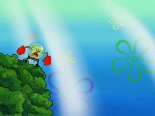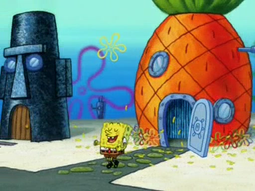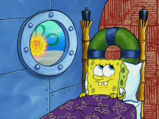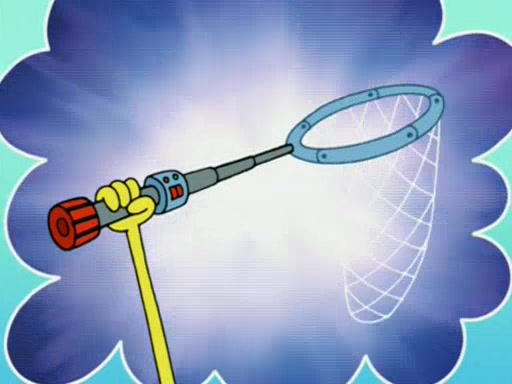 He then goes to Sandy's tree dome for karate, but Sandy is busy trying to fix a leak in the roof of her treedome. SpongeBob thinks that this is a trap, and attacks her anyway. Sandy hits him and sends him flying up to the roof, and his glove sticks to it, sealing the leak. Afterward, SpongeBob heads over to Jellyfish Fields to go jelly fishing with Patrick, but Patrick explains that he has broken his net. SpongeBob gives him his old net to use, but he quickly breaks it as well. Finally, SpongeBob gives Patrick his brand-new net, and sits there watching as Patrick has fun jellyfishing with it.