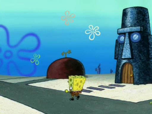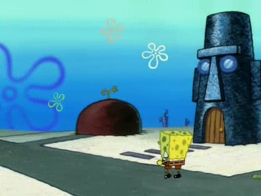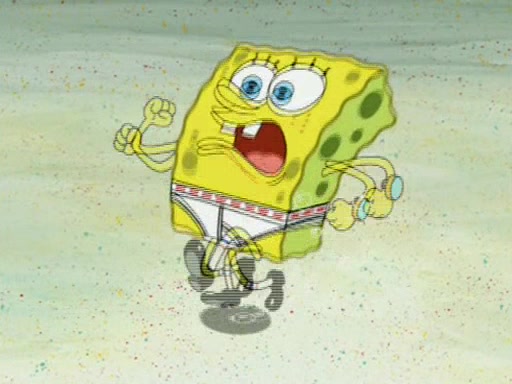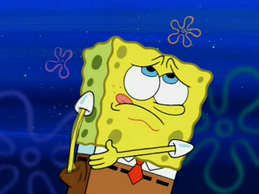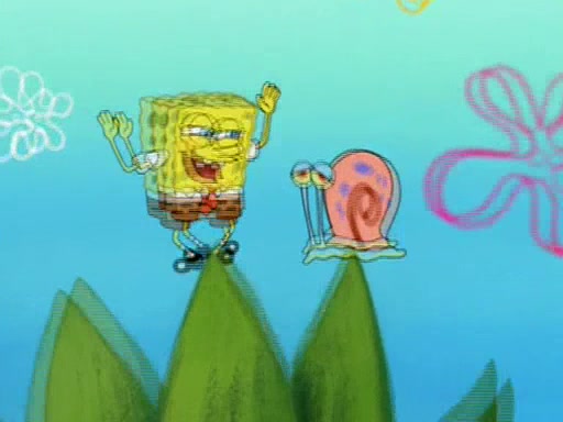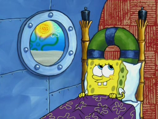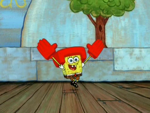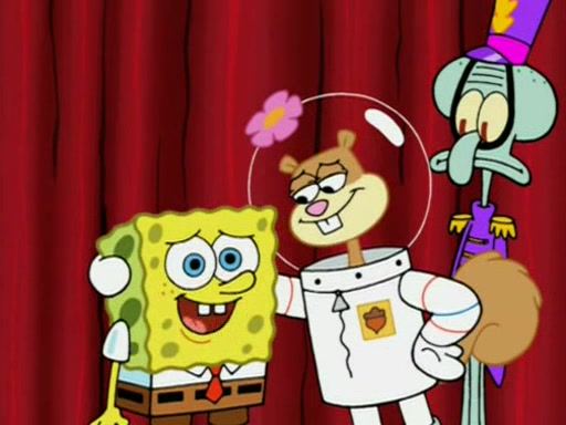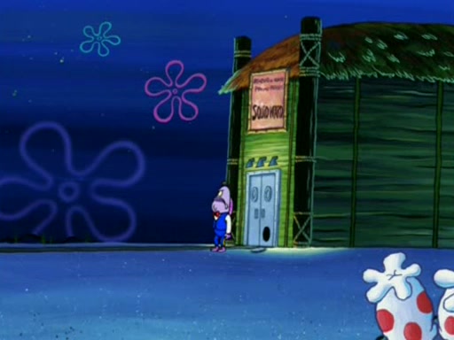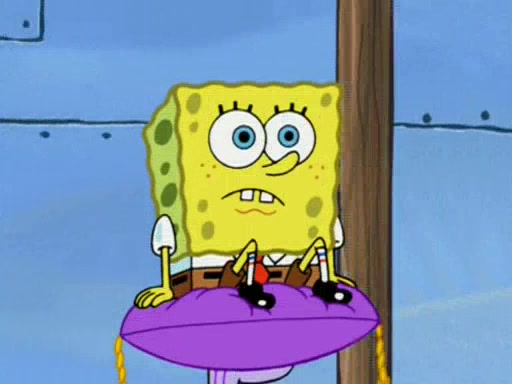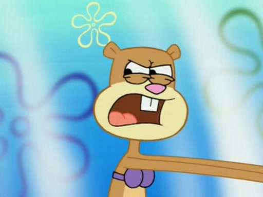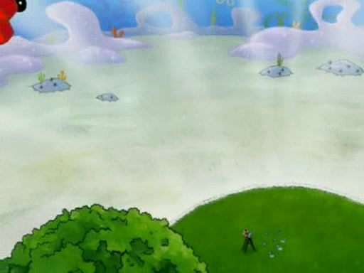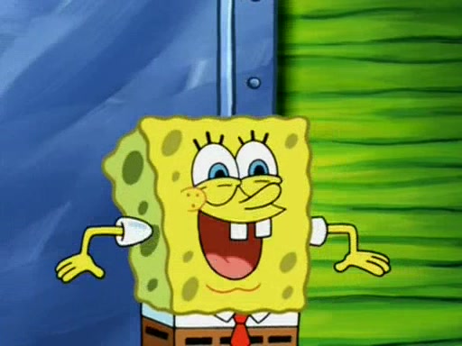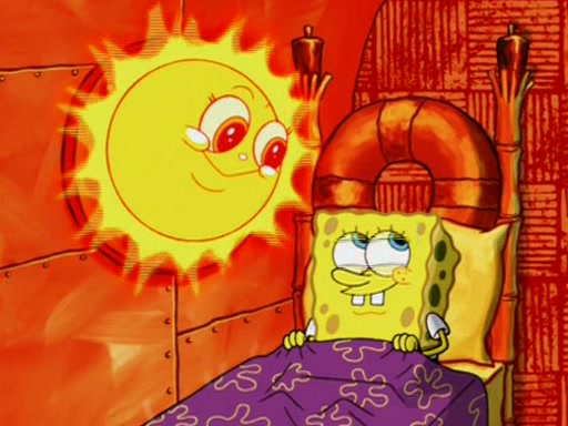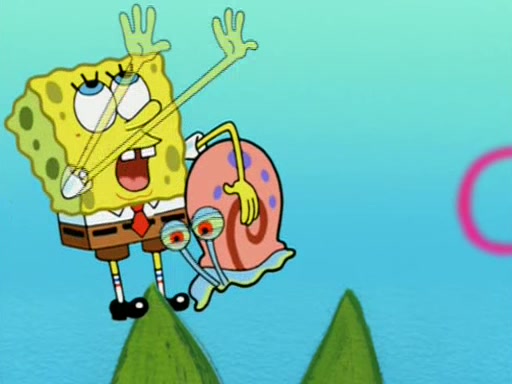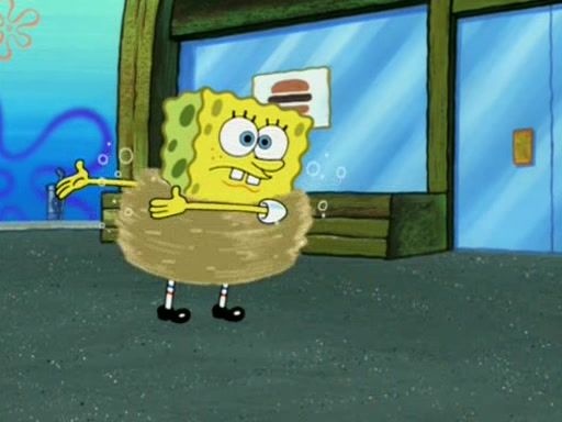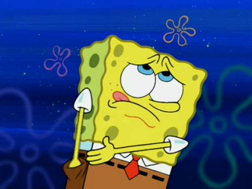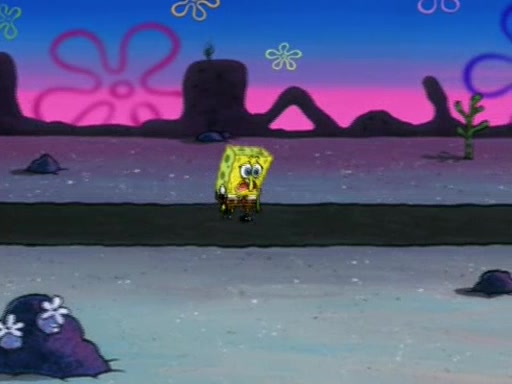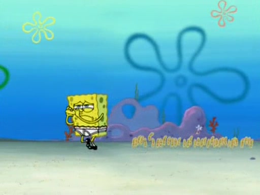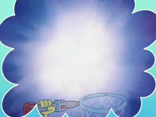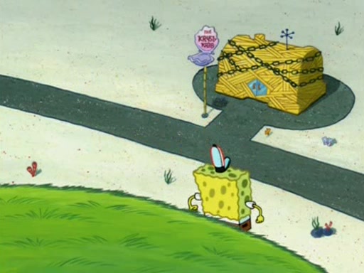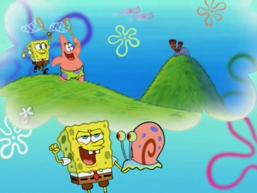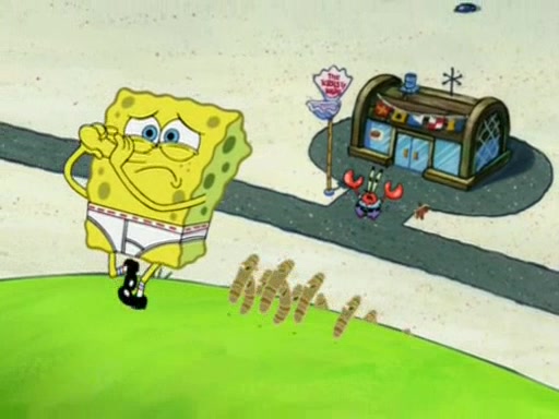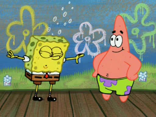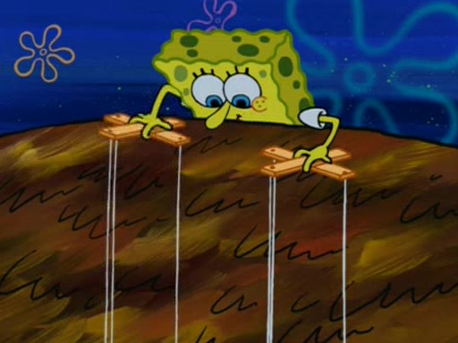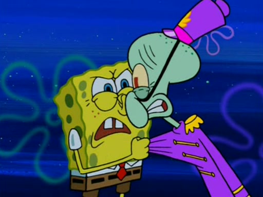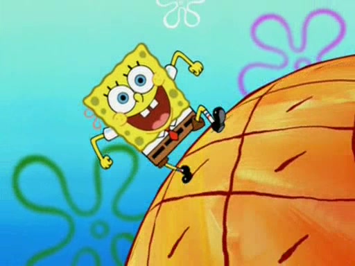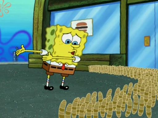 He then goes to Sandy's tree dome for karate, but Sandy is busy trying to fix a leak in the roof of her treedome. SpongeBob thinks that this is a trap, and attacks her anyway. Sandy hits him and sends him flying up to the roof, and his glove sticks to it, sealing the leak. Afterward, SpongeBob heads over to Jellyfish Fields to go jelly fishing with Patrick, but Patrick explains that he has broken his net. SpongeBob gives him his old net to use, but he quickly breaks it as well. Finally, SpongeBob gives Patrick his brand-new net, and sits there watching as Patrick has fun jellyfishing with it.