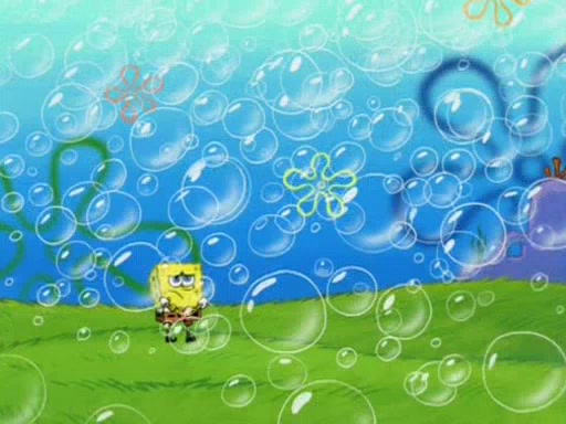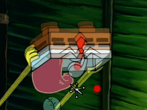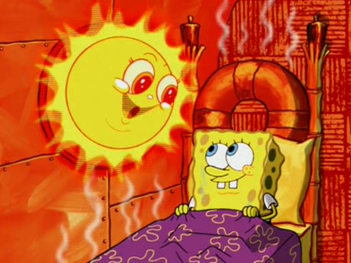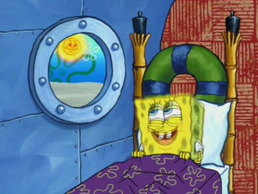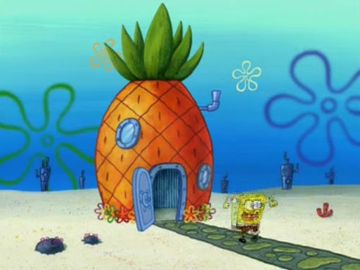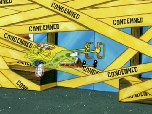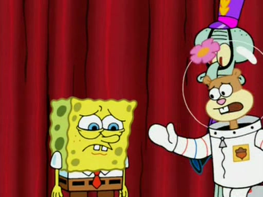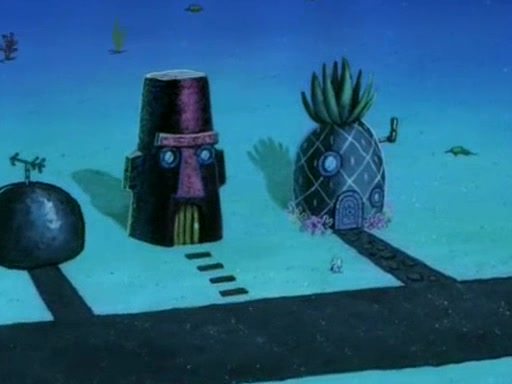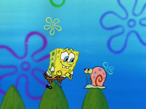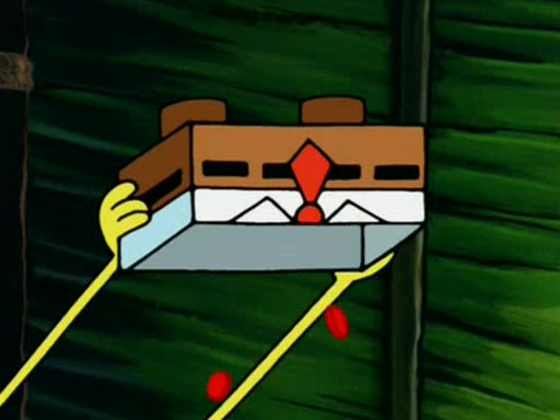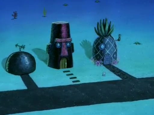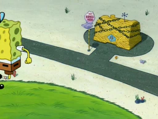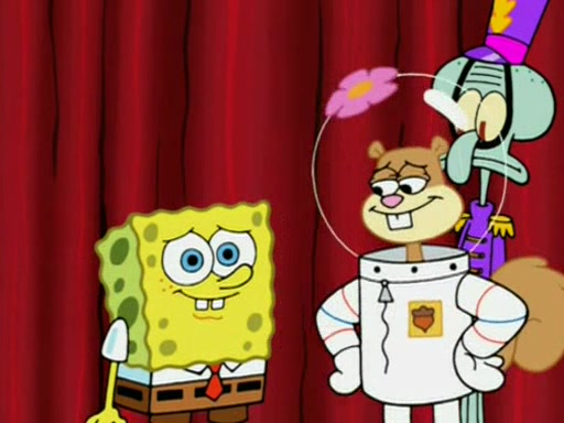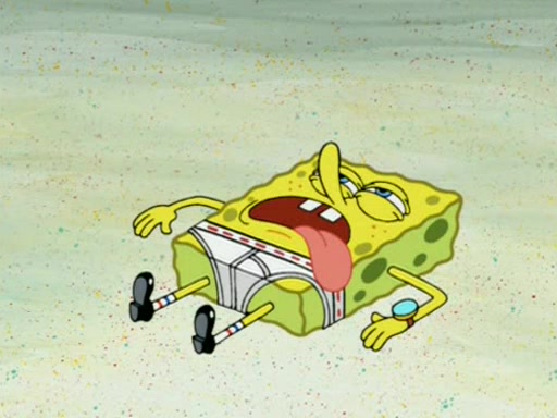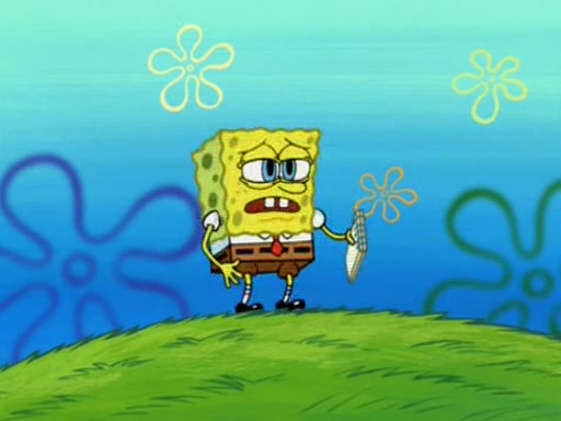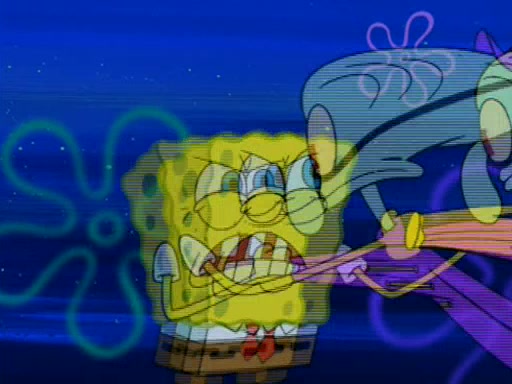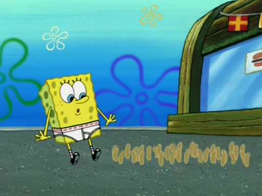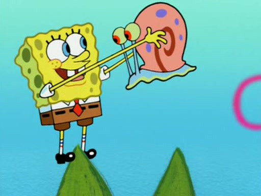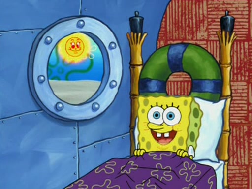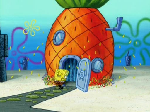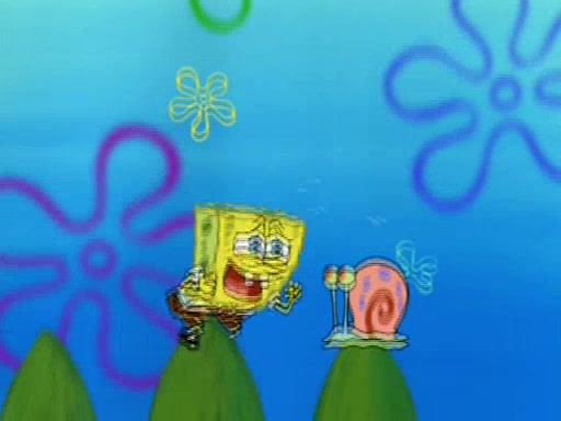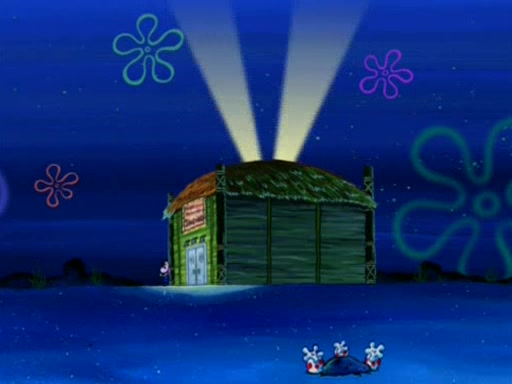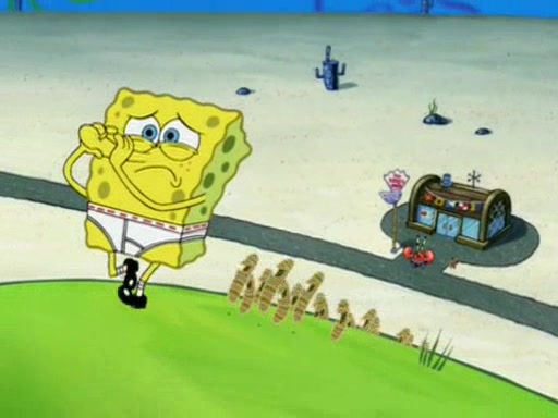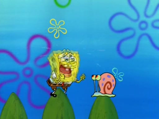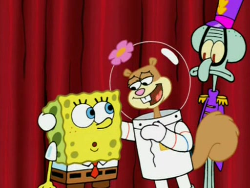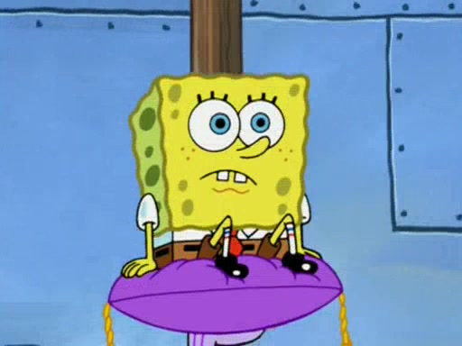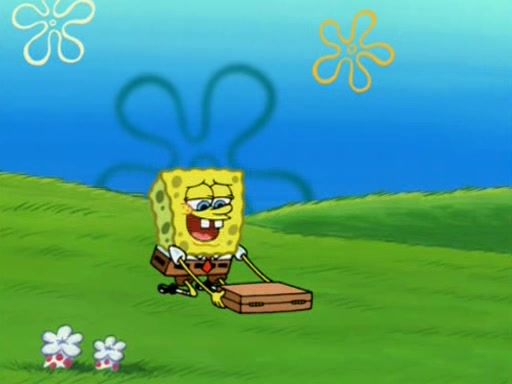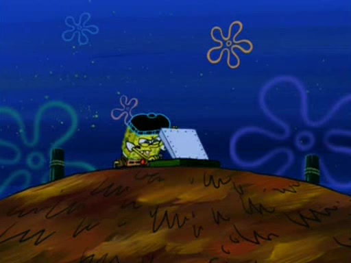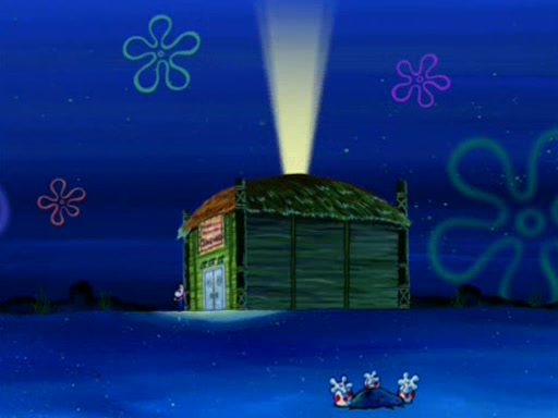 He then goes to Sandy's tree dome for karate, but Sandy is busy trying to fix a leak in the roof of her treedome. SpongeBob thinks that this is a trap, and attacks her anyway. Sandy hits him and sends him flying up to the roof, and his glove sticks to it, sealing the leak. Afterward, SpongeBob heads over to Jellyfish Fields to go jelly fishing with Patrick, but Patrick explains that he has broken his net. SpongeBob gives him his old net to use, but he quickly breaks it as well. Finally, SpongeBob gives Patrick his brand-new net, and sits there watching as Patrick has fun jellyfishing with it.