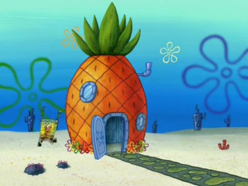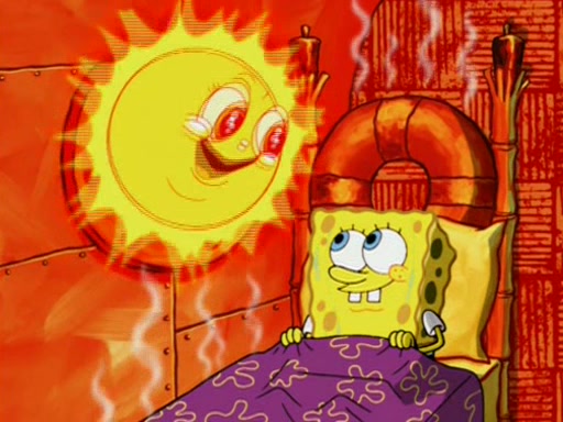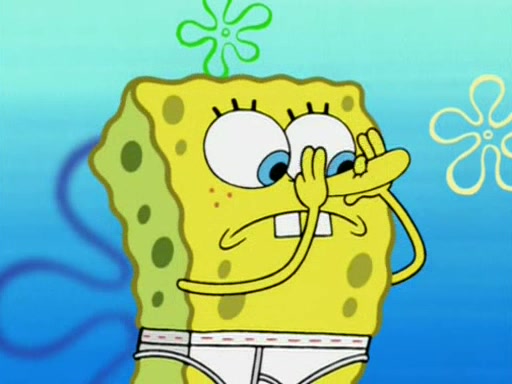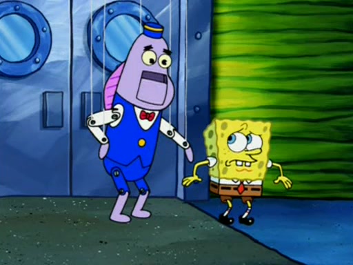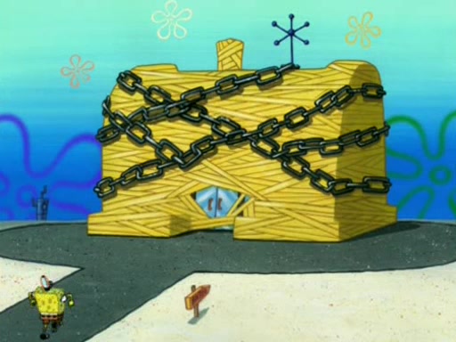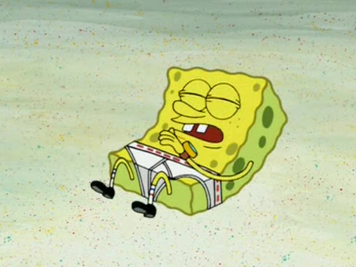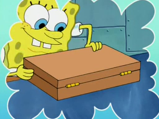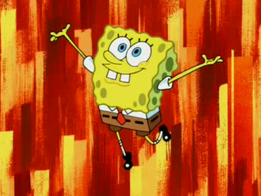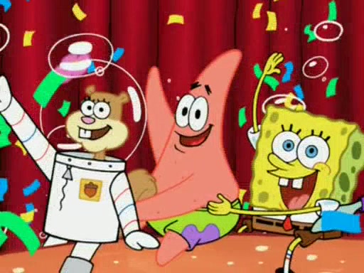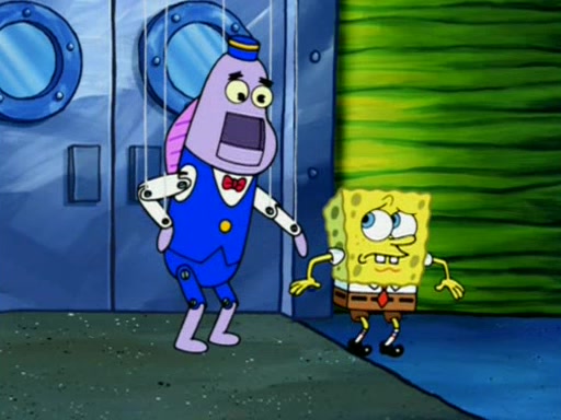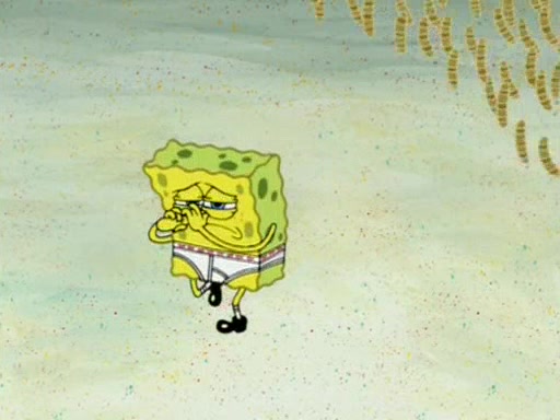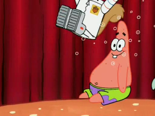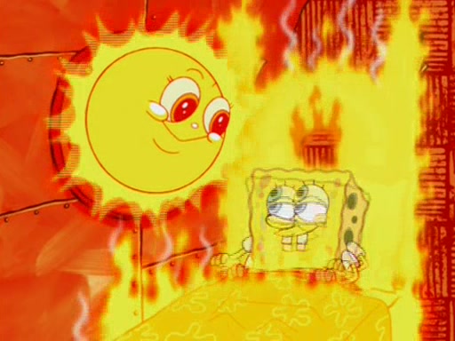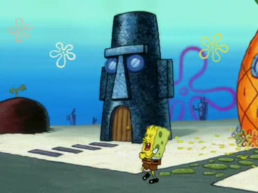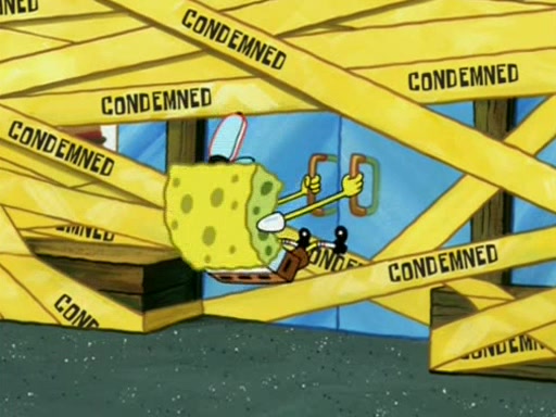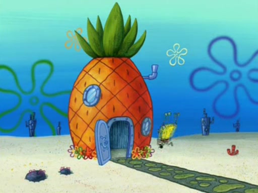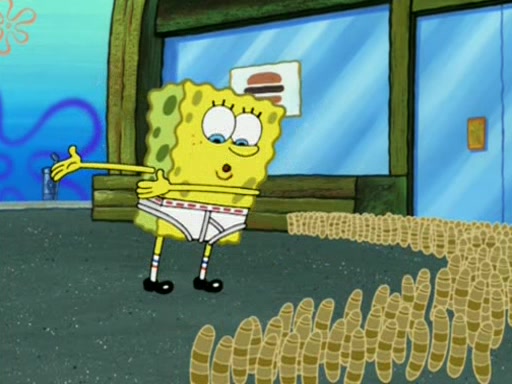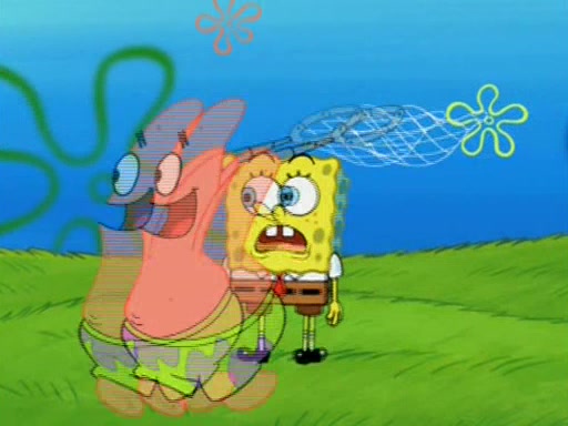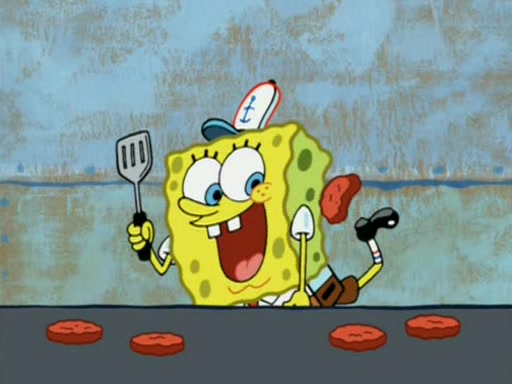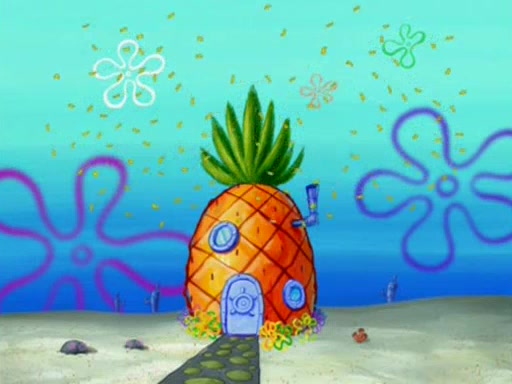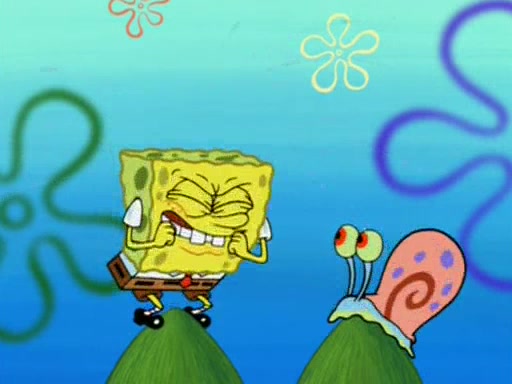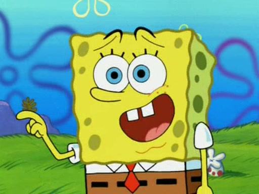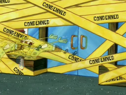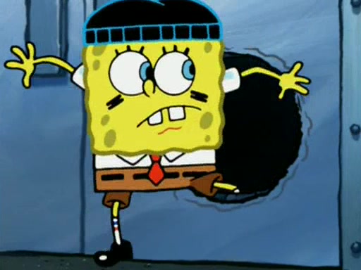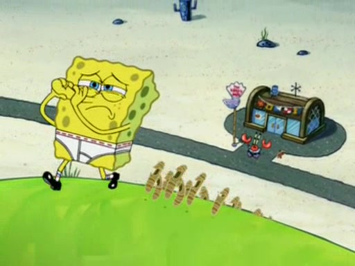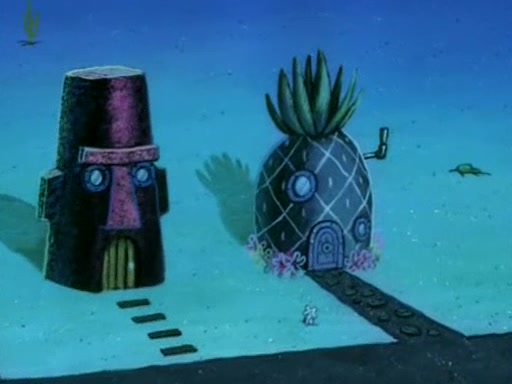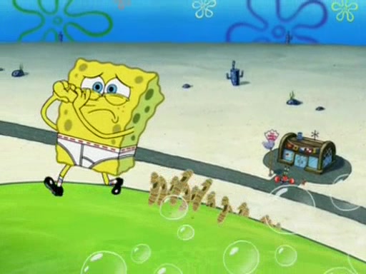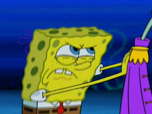 He then goes to Sandy's tree dome for karate, but Sandy is busy trying to fix a leak in the roof of her treedome. SpongeBob thinks that this is a trap, and attacks her anyway. Sandy hits him and sends him flying up to the roof, and his glove sticks to it, sealing the leak. Afterward, SpongeBob heads over to Jellyfish Fields to go jelly fishing with Patrick, but Patrick explains that he has broken his net. SpongeBob gives him his old net to use, but he quickly breaks it as well. Finally, SpongeBob gives Patrick his brand-new net, and sits there watching as Patrick has fun jellyfishing with it.