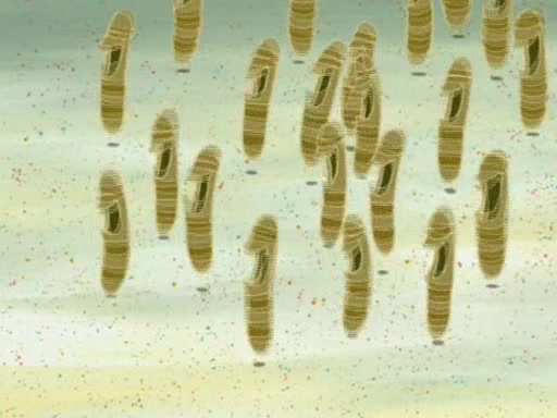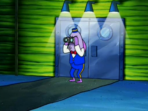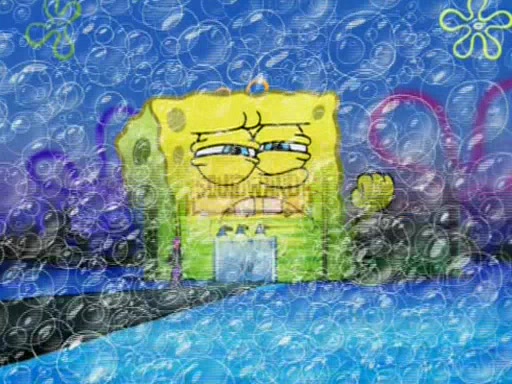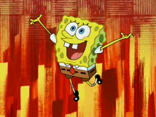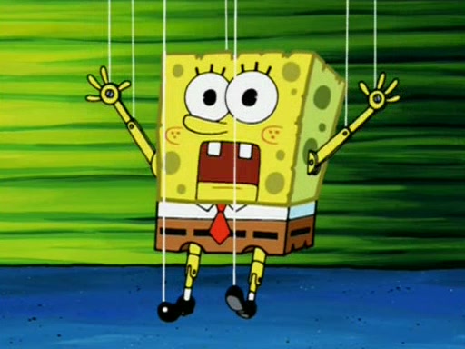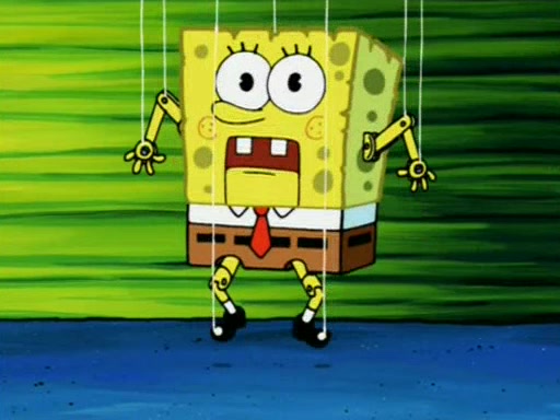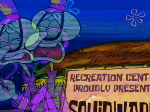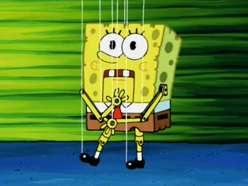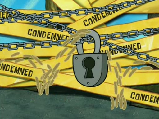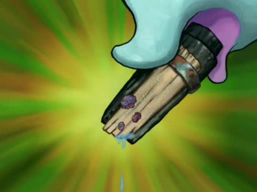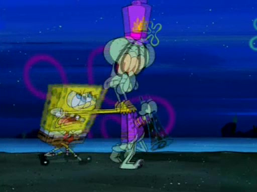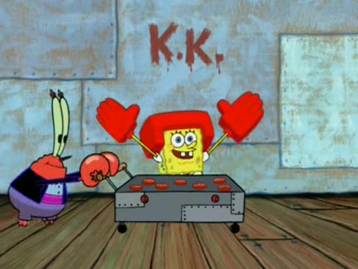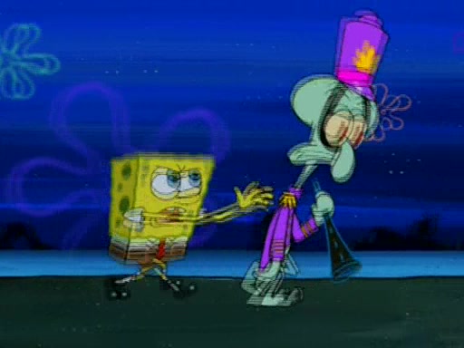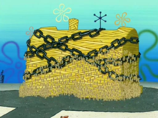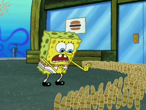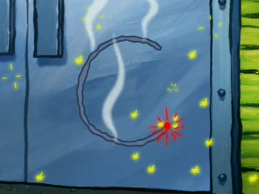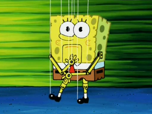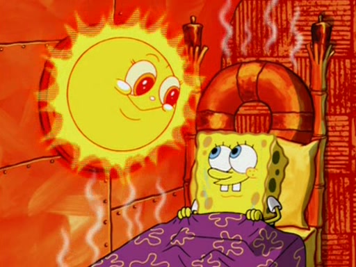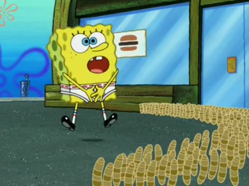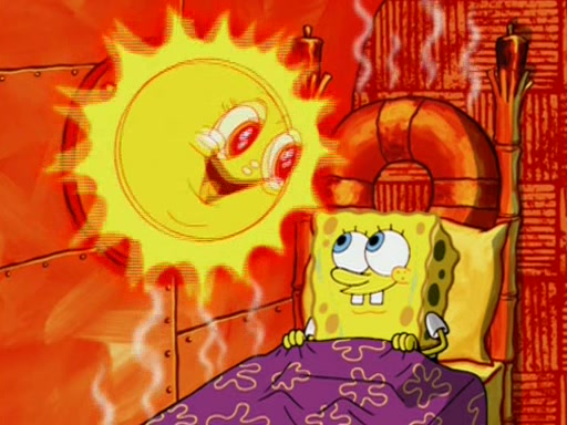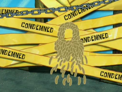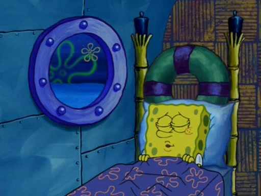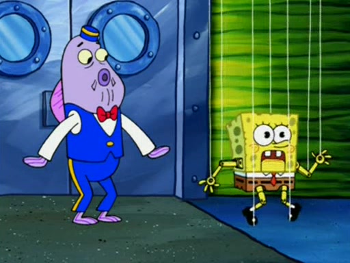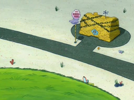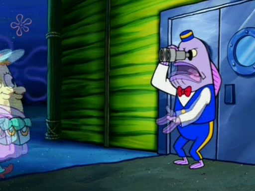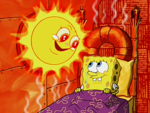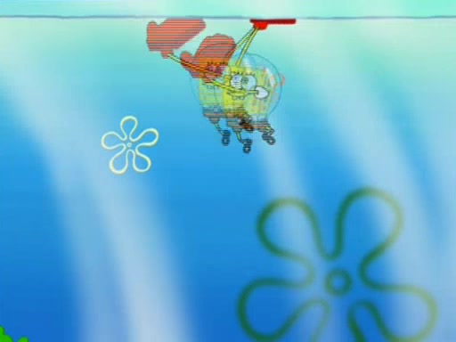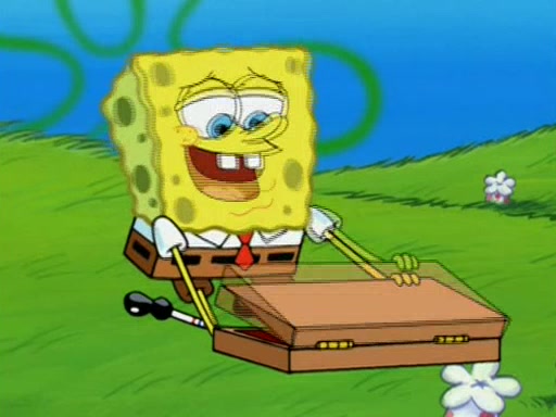 He then goes to Sandy's tree dome for karate, but Sandy is busy trying to fix a leak in the roof of her treedome. SpongeBob thinks that this is a trap, and attacks her anyway. Sandy hits him and sends him flying up to the roof, and his glove sticks to it, sealing the leak. Afterward, SpongeBob heads over to Jellyfish Fields to go jelly fishing with Patrick, but Patrick explains that he has broken his net. SpongeBob gives him his old net to use, but he quickly breaks it as well. Finally, SpongeBob gives Patrick his brand-new net, and sits there watching as Patrick has fun jellyfishing with it.