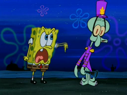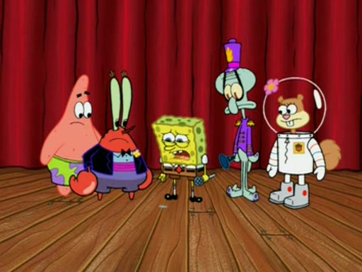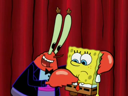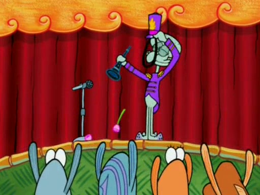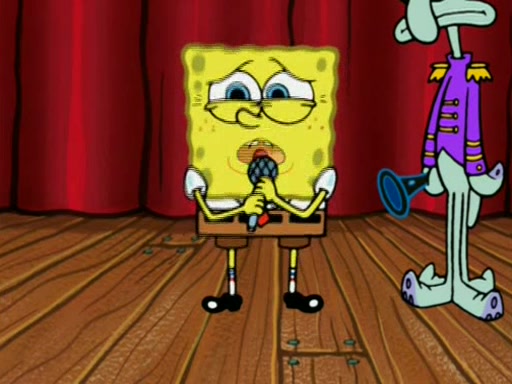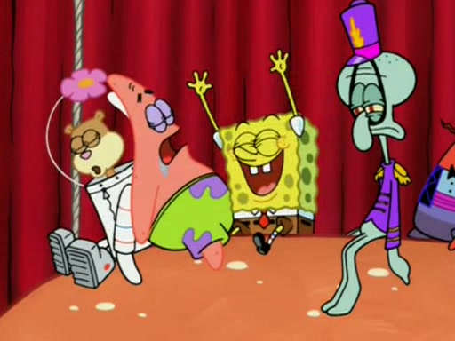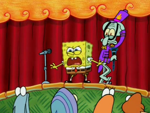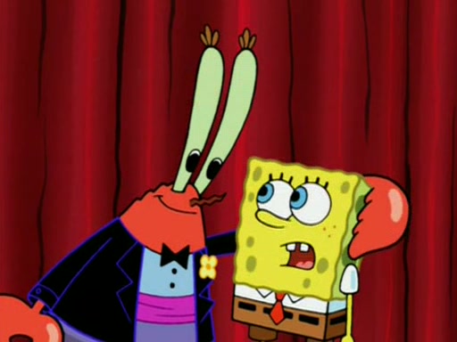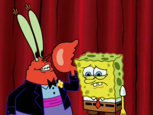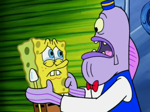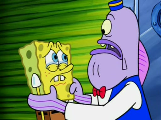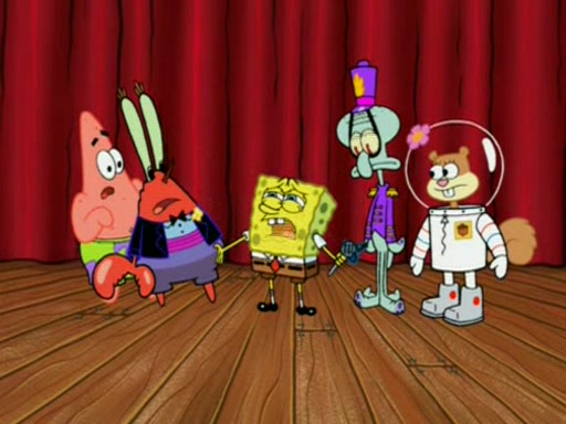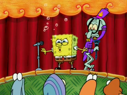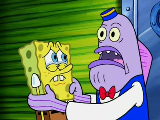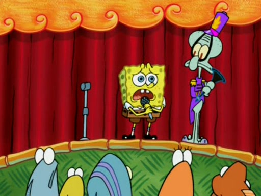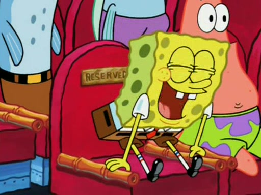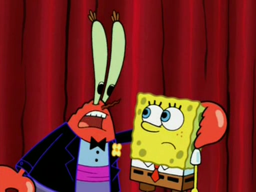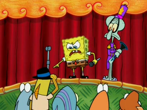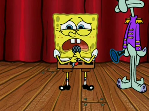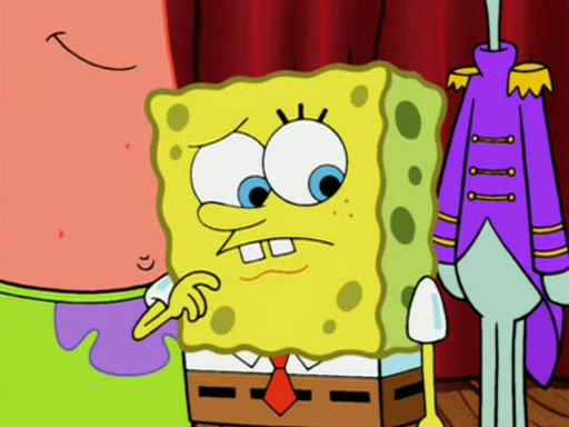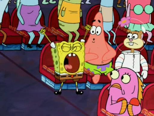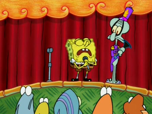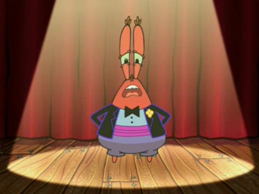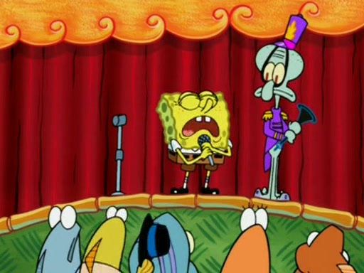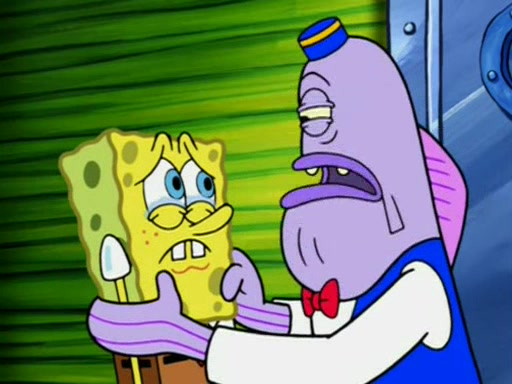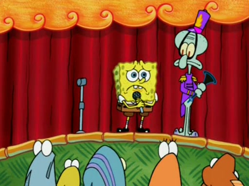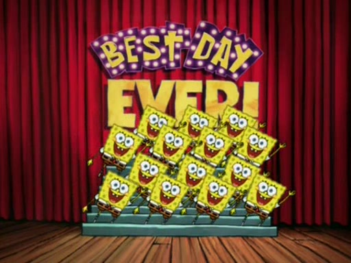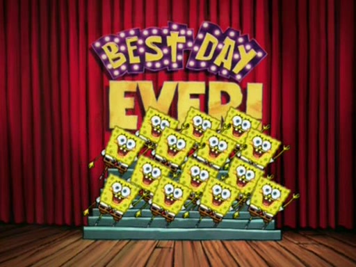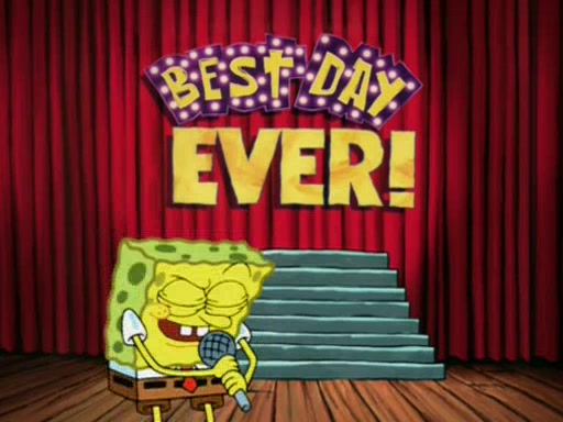 Finally, when SpongeBob goes to Squidward's clarinet recital but Squidward tells him that he cannot play in the concert because his clarinet reed is shot. SpongeBob pulls out one of his teeth to replace the reed, and angrily demands Squidward to put on the show, frustrated that the majority of his "Best Day Ever" is ruined. When SpongeBob tries to enter the concert, the doorman will not let him in because he does not have a ticket. He tries various methods of sneaking in, but is caught every time. Eventually, the doorman realizes who SpongeBob is, and lets him in because he is on the VIP list. However, the concert ends just as SpongeBob gets into his seat, and that's where he finally loses it. Hysterically frustrated, SpongeBob goes up on stage and starts angrily whining to the audience about how his "Best Day Ever" was completely destroyed. However, his friends then remind SpongeBob of how he helped them with their problems out of his kindness, and to make everything up to him, they hold a "very expensive" production in which SpongeBob performs his song, "Best Day Ever," to complete his real Best Day Ever with his friends by his side. After hours, SpongeBob, is still singing, his friends are tired and sleepy, the audience has left the concert hall, and the janitor is sweeping the floor. Squidward asks how long they will have to keep this up, and Mr. Krabs replies with "Just until his little heart gives out, Squidward. Just until his little heart gives out."