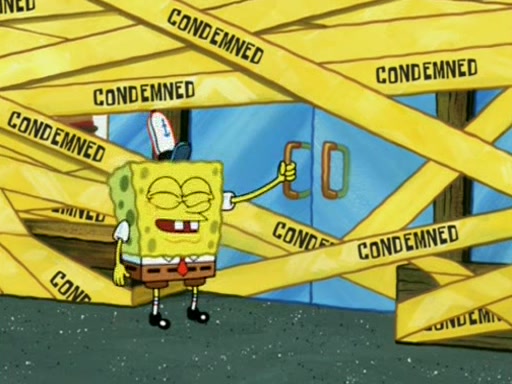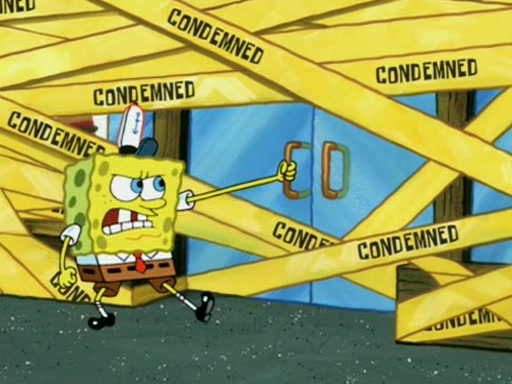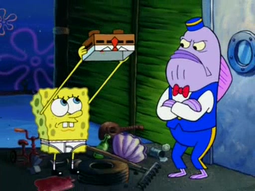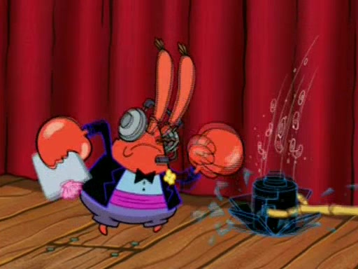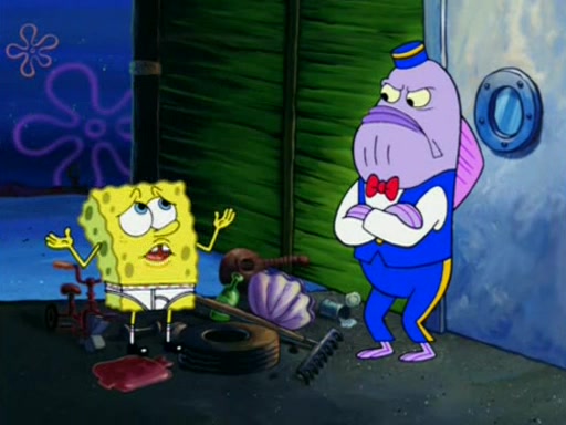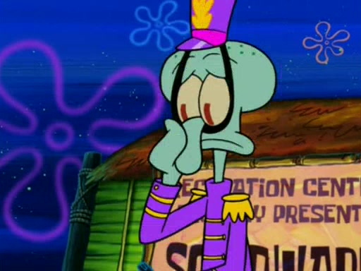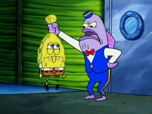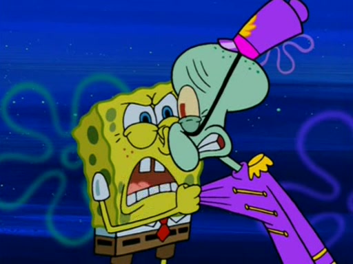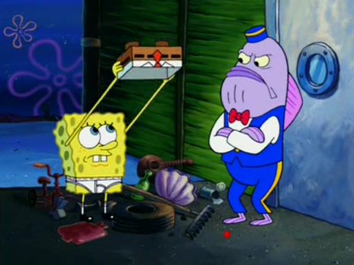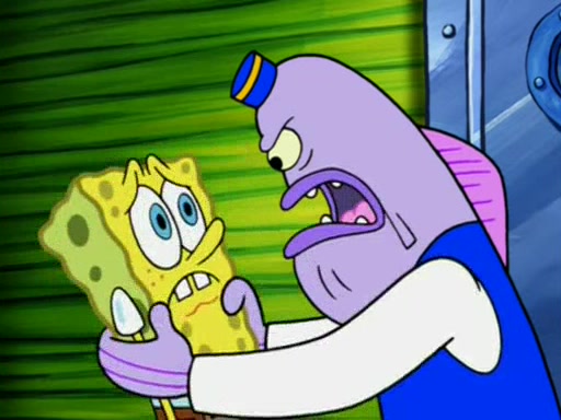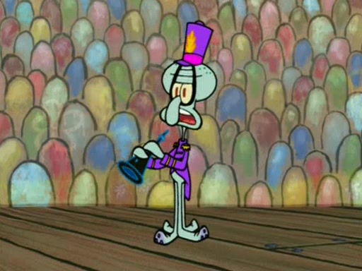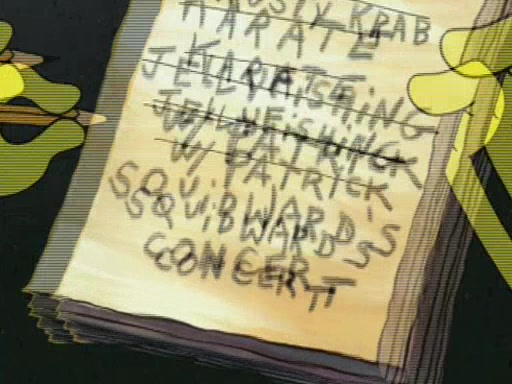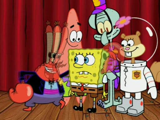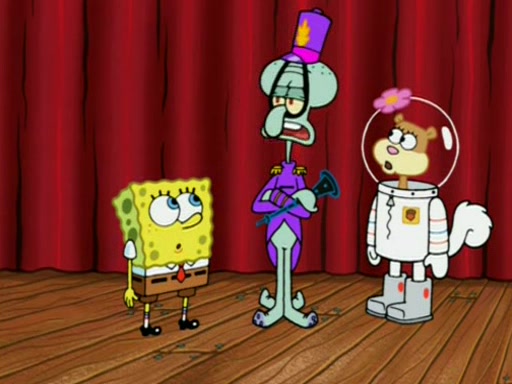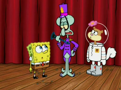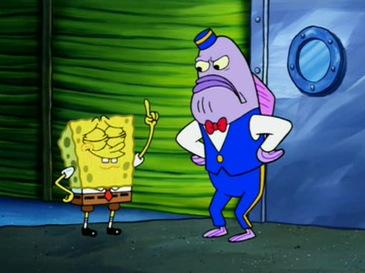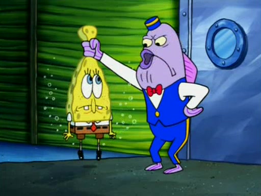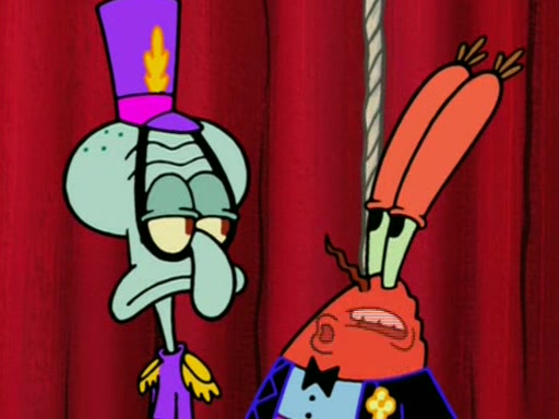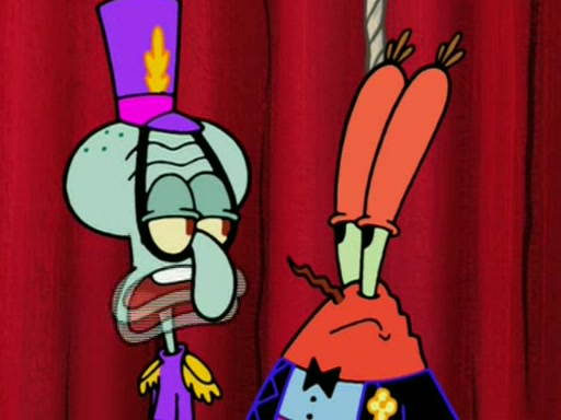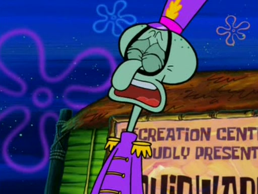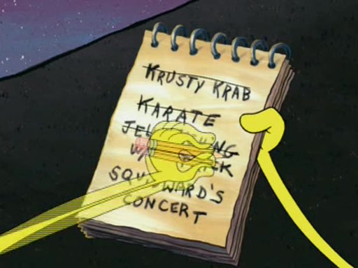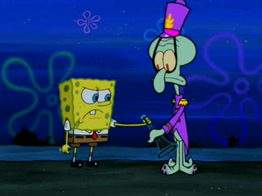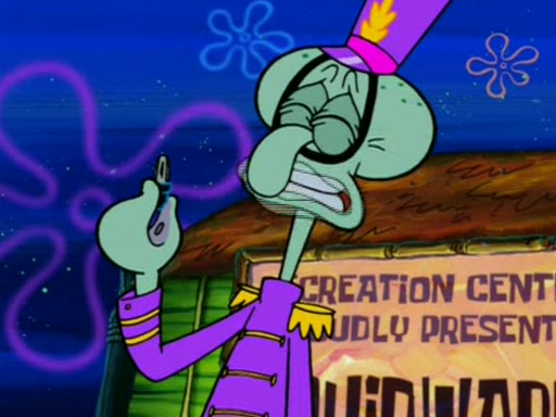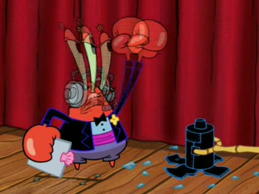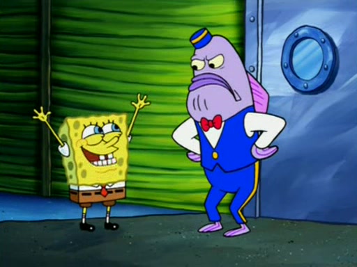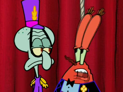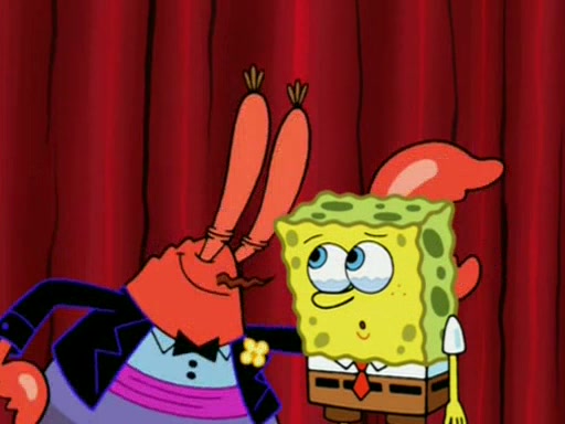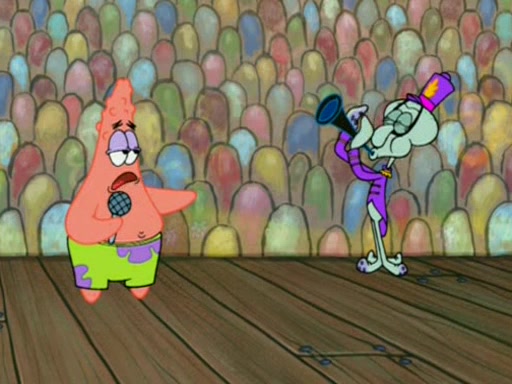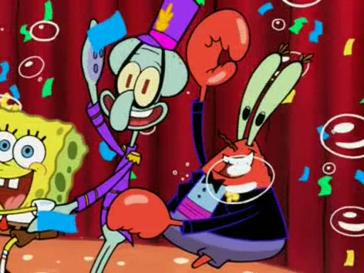Finally, when SpongeBob goes to Squidward's clarinet recital but Squidward tells him that he cannot play in the concert because his clarinet reed is shot. SpongeBob pulls out one of his teeth to replace the reed, and angrily demands Squidward to put on the show, frustrated that the majority of his "Best Day Ever" is ruined. When SpongeBob tries to enter the concert, the doorman will not let him in because he does not have a ticket. He tries various methods of sneaking in, but is caught every time. Eventually, the doorman realizes who SpongeBob is, and lets him in because he is on the VIP list. However, the concert ends just as SpongeBob gets into his seat, and that's where he finally loses it. Hysterically frustrated, SpongeBob goes up on stage and starts angrily whining to the audience about how his "Best Day Ever" was completely destroyed. However, his friends then remind SpongeBob of how he helped them with their problems out of his kindness, and to make everything up to him, they hold a "very expensive" production in which SpongeBob performs his song, "Best Day Ever," to complete his real Best Day Ever with his friends by his side. After hours, SpongeBob, is still singing, his friends are tired and sleepy, the audience has left the concert hall, and the janitor is sweeping the floor. Squidward asks how long they will have to keep this up, and Mr. Krabs replies with "Just until his little heart gives out, Squidward. Just until his little heart gives out."