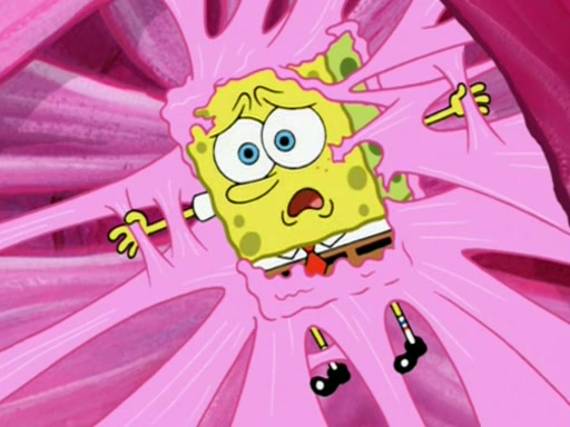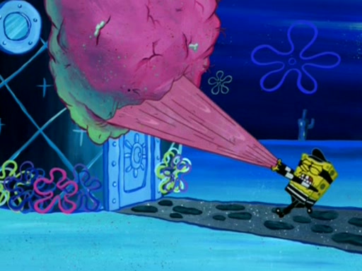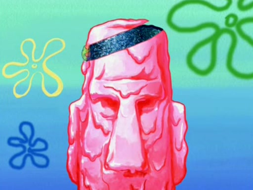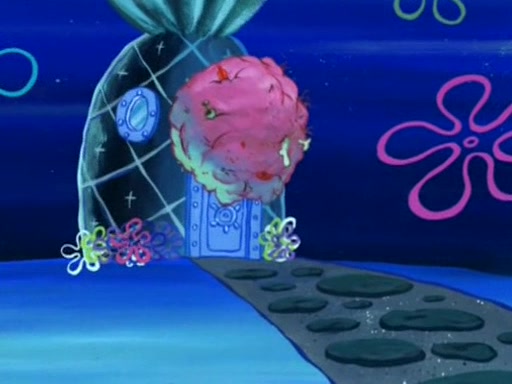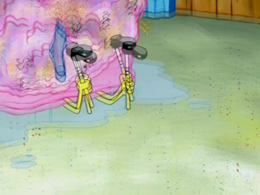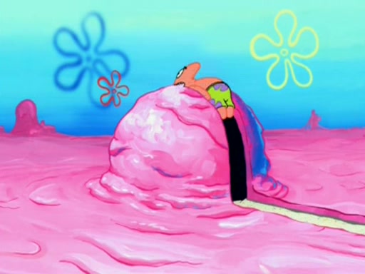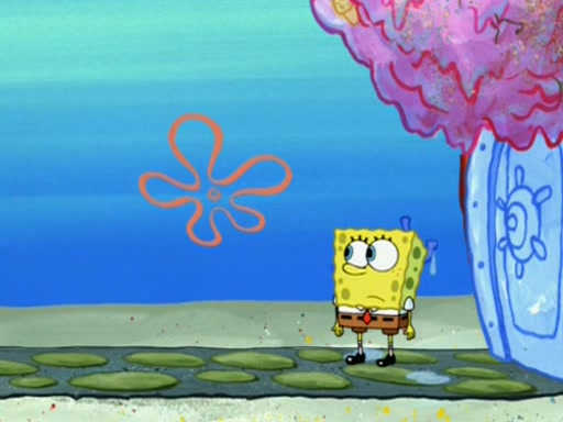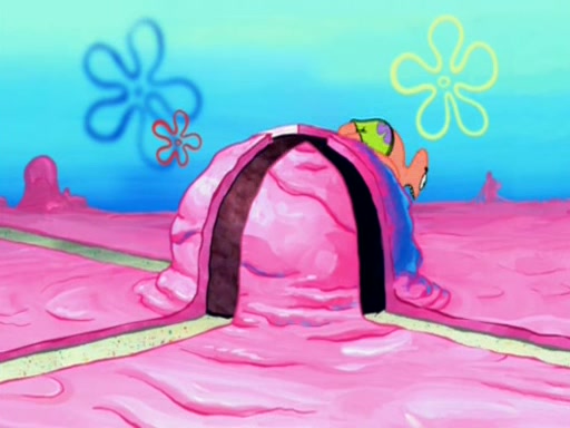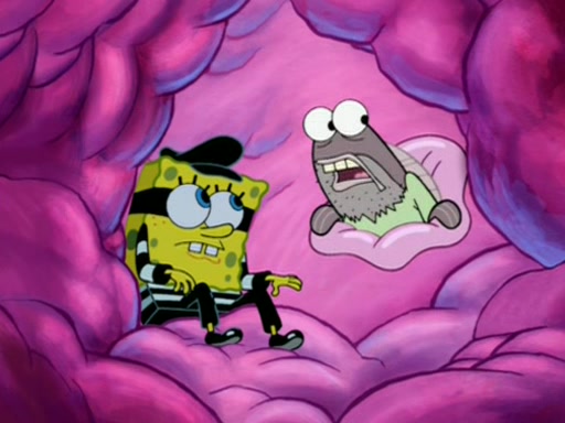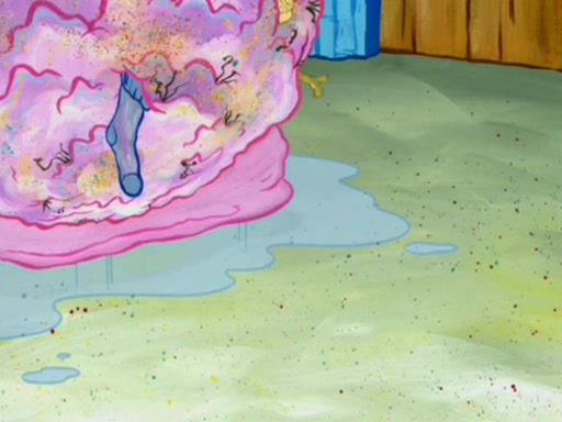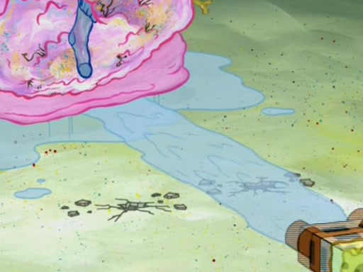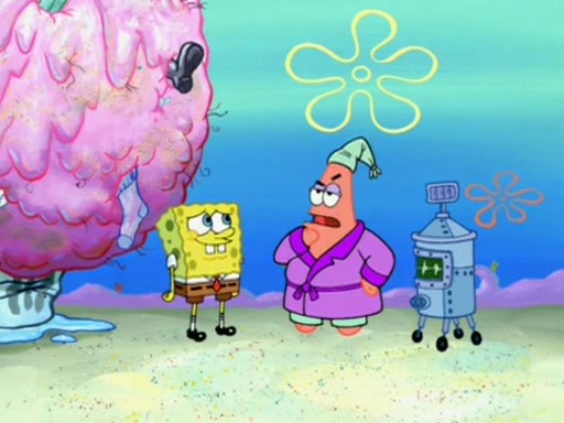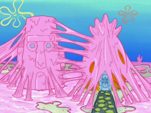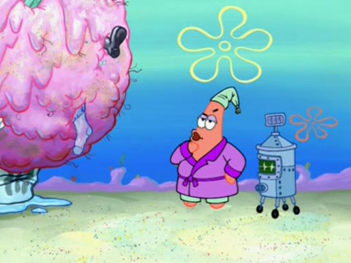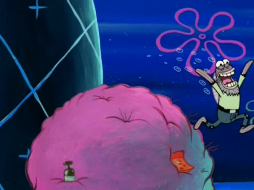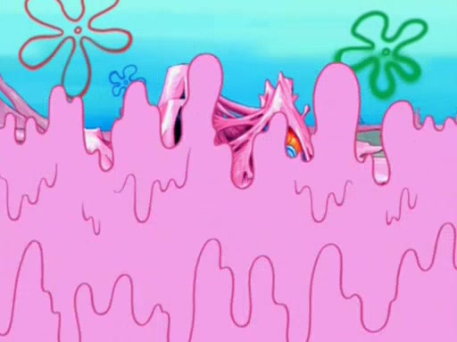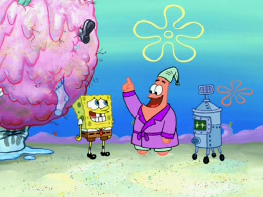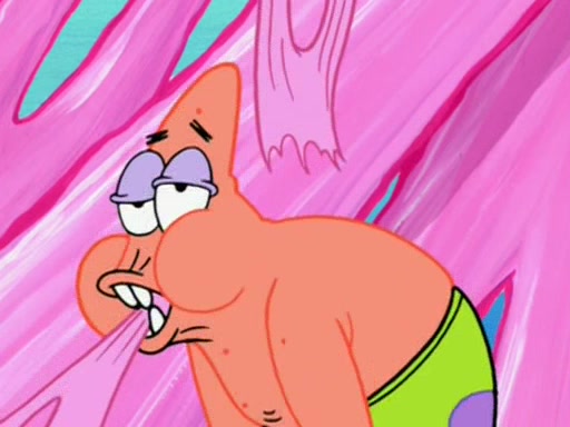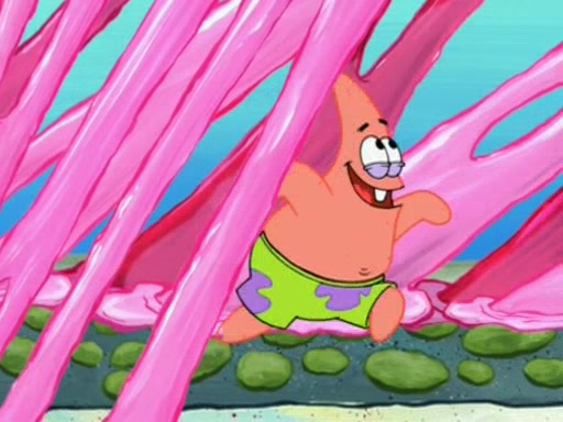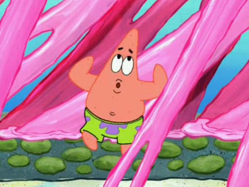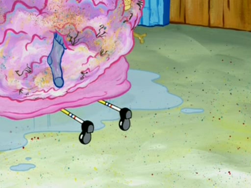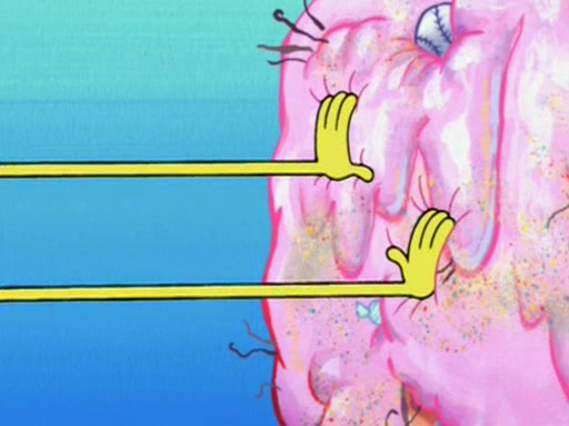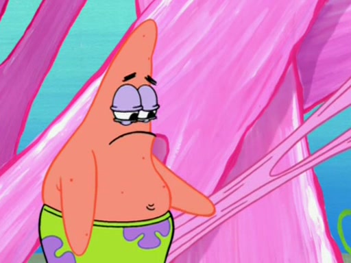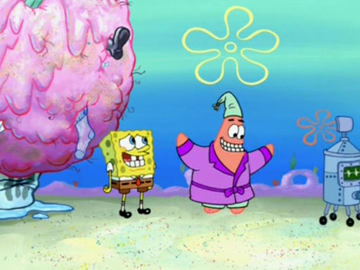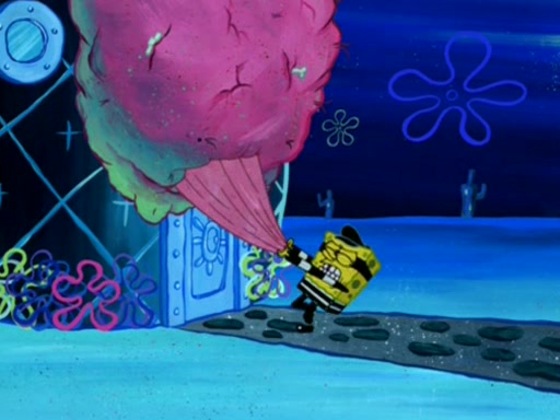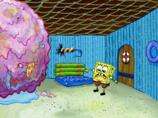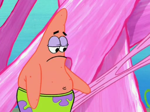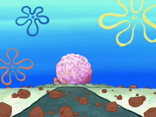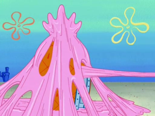 On "Best Friend's Day," Patrick gives SpongeBob an enormous wad of used gum he has amassed over his entire lifetime (fondly referred to as "Gummy"), and SpongeBob finds it a better gift than his own (a robotic butler). However, when he takes it inside, he realizes how disgusting it is, and it even starts to scare him, with a pair of underpants crawling out of the gum and saying in a demonic voice, "You're not Patrick!" First, SpongeBob tries to throw it away, but Patrick catches him in doing so, and he says that he was dressing it up with the garbage can. Later, SpongeBob tries to bury Gummy, but Patrick catches him again, and he says that he dug the hole to be able to look at Gummy from below. Patrick insists that it must be displayed properly, and places it above SpongeBob's doorway. SpongeBob next tries to dispose of it in the night, and in the process frees several people who were literally trapped inside it. He tries to pull Gummy off of his house, and fails, destroying the ball and getting stuck to it in the process.