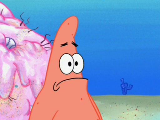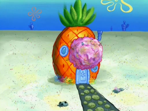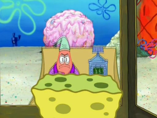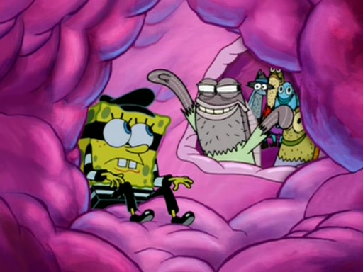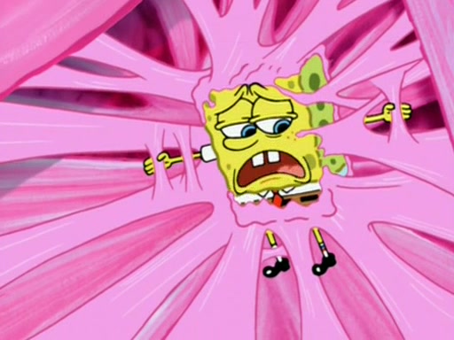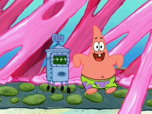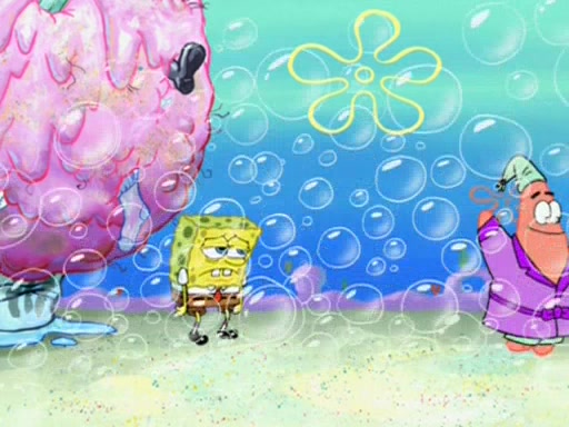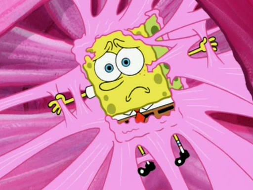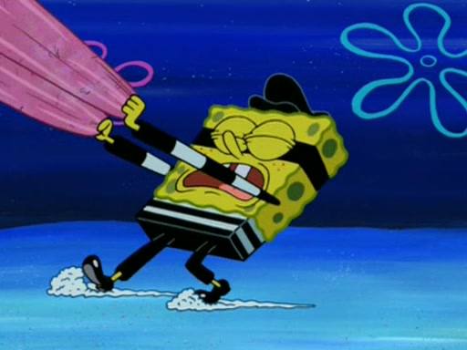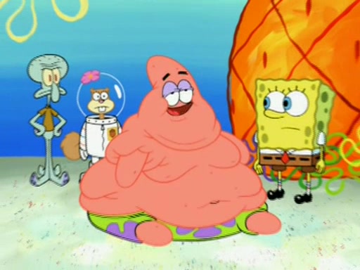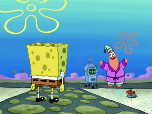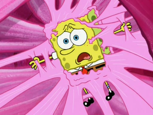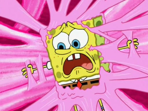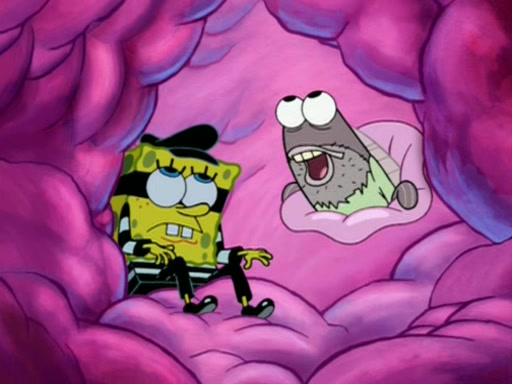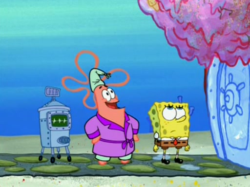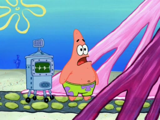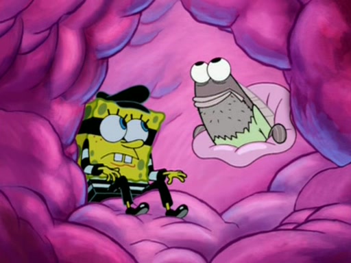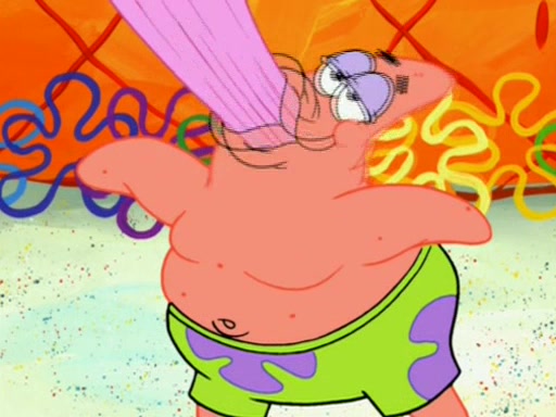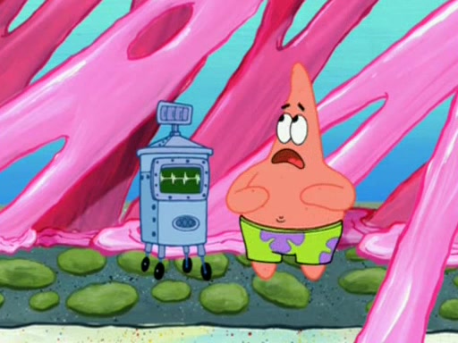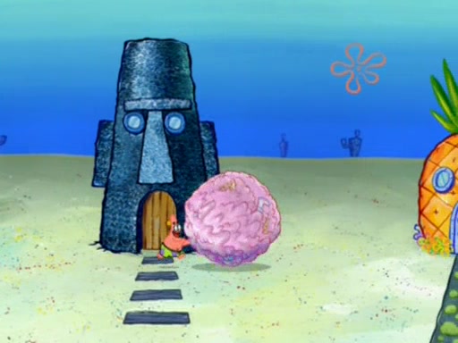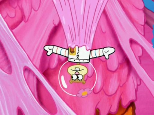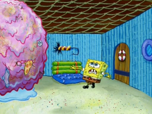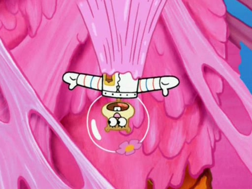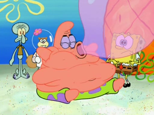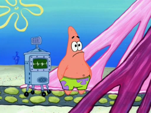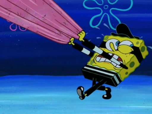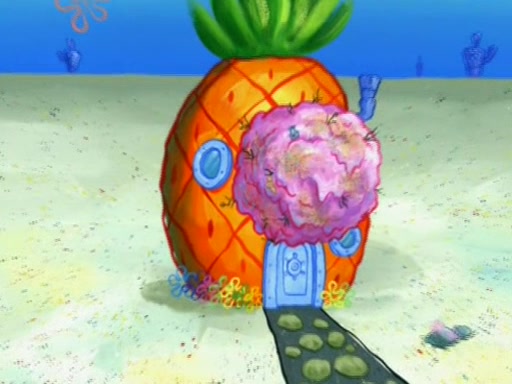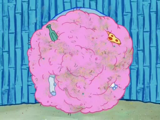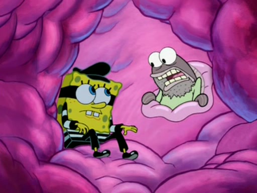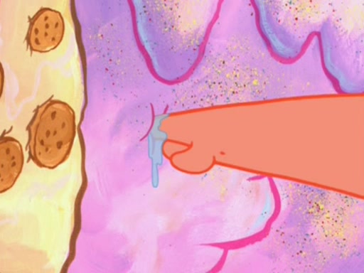 On "Best Friend's Day," Patrick gives SpongeBob an enormous wad of used gum he has amassed over his entire lifetime (fondly referred to as "Gummy"), and SpongeBob finds it a better gift than his own (a robotic butler). However, when he takes it inside, he realizes how disgusting it is, and it even starts to scare him, with a pair of underpants crawling out of the gum and saying in a demonic voice, "You're not Patrick!" First, SpongeBob tries to throw it away, but Patrick catches him in doing so, and he says that he was dressing it up with the garbage can. Later, SpongeBob tries to bury Gummy, but Patrick catches him again, and he says that he dug the hole to be able to look at Gummy from below. Patrick insists that it must be displayed properly, and places it above SpongeBob's doorway. SpongeBob next tries to dispose of it in the night, and in the process frees several people who were literally trapped inside it. He tries to pull Gummy off of his house, and fails, destroying the ball and getting stuck to it in the process.