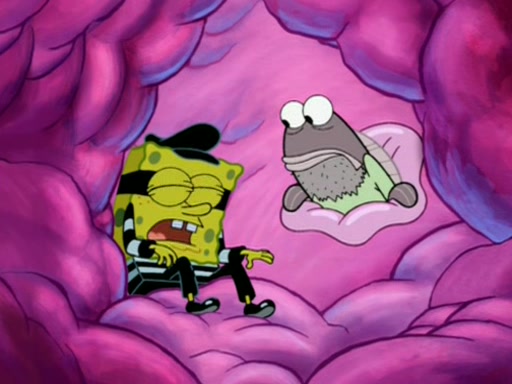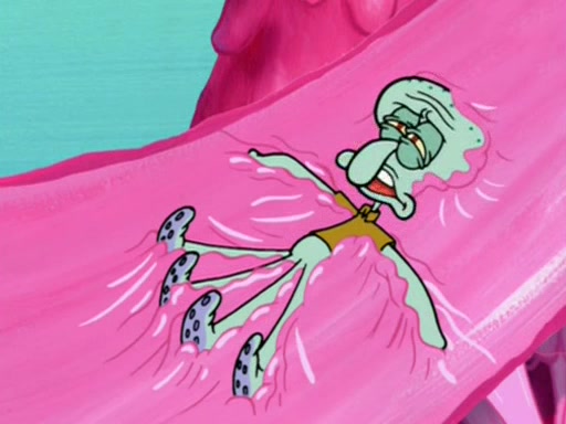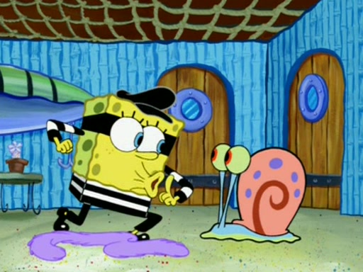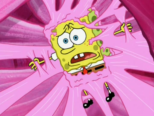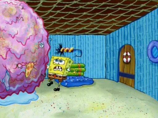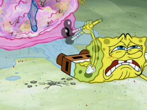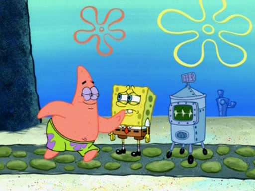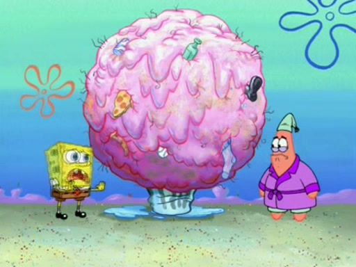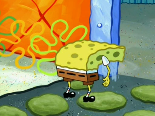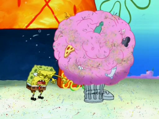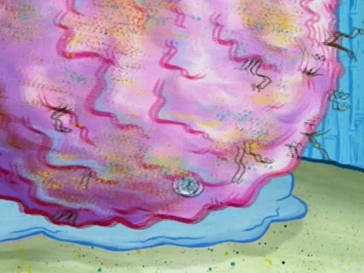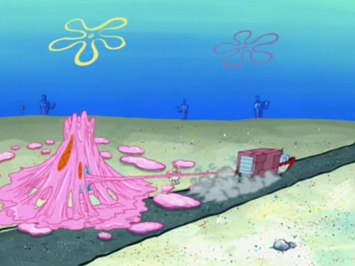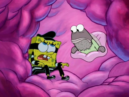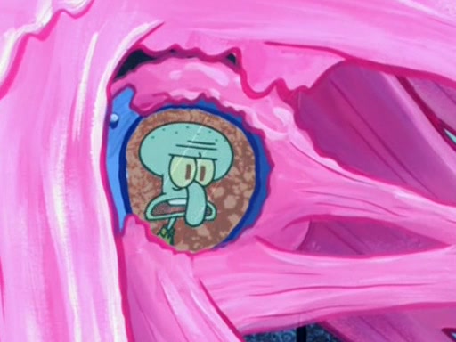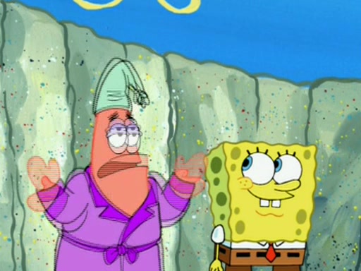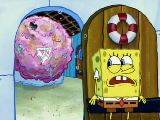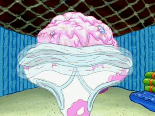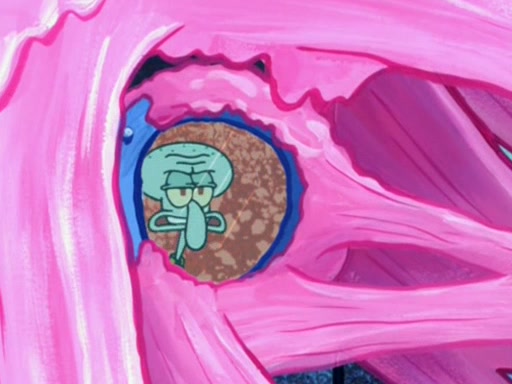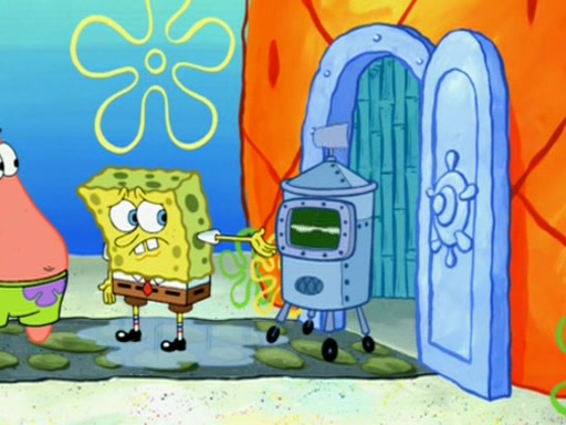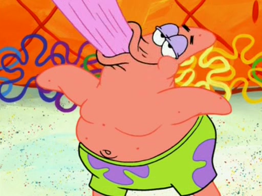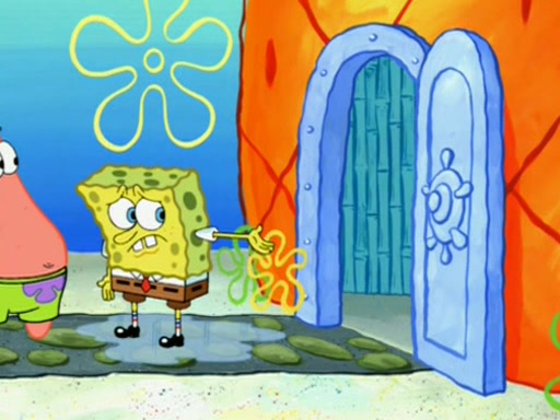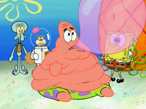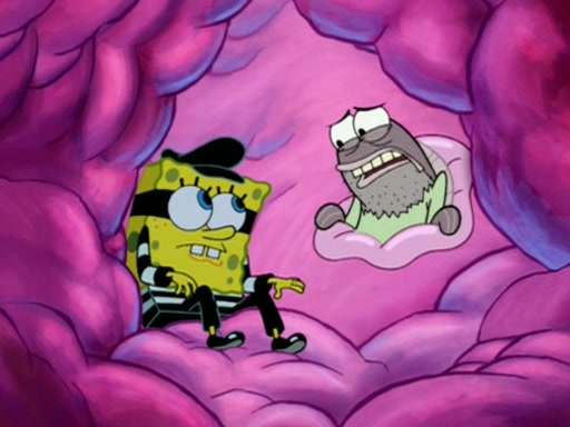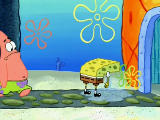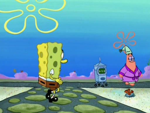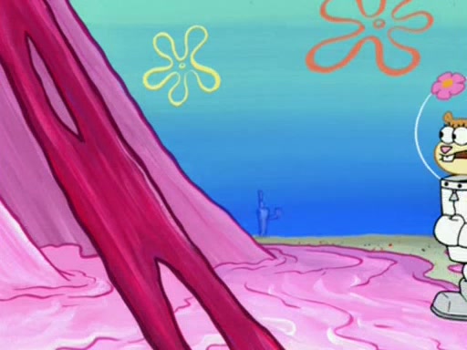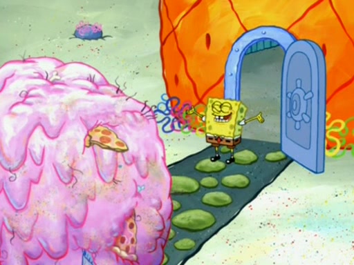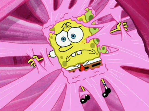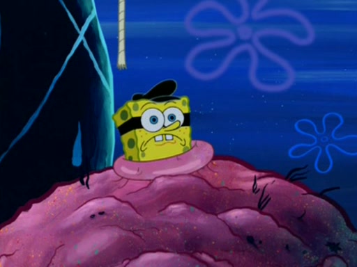 On "Best Friend's Day," Patrick gives SpongeBob an enormous wad of used gum he has amassed over his entire lifetime (fondly referred to as "Gummy"), and SpongeBob finds it a better gift than his own (a robotic butler). However, when he takes it inside, he realizes how disgusting it is, and it even starts to scare him, with a pair of underpants crawling out of the gum and saying in a demonic voice, "You're not Patrick!" First, SpongeBob tries to throw it away, but Patrick catches him in doing so, and he says that he was dressing it up with the garbage can. Later, SpongeBob tries to bury Gummy, but Patrick catches him again, and he says that he dug the hole to be able to look at Gummy from below. Patrick insists that it must be displayed properly, and places it above SpongeBob's doorway. SpongeBob next tries to dispose of it in the night, and in the process frees several people who were literally trapped inside it. He tries to pull Gummy off of his house, and fails, destroying the ball and getting stuck to it in the process.