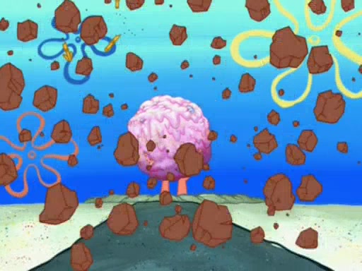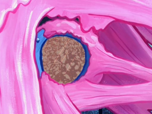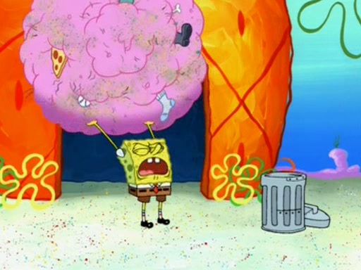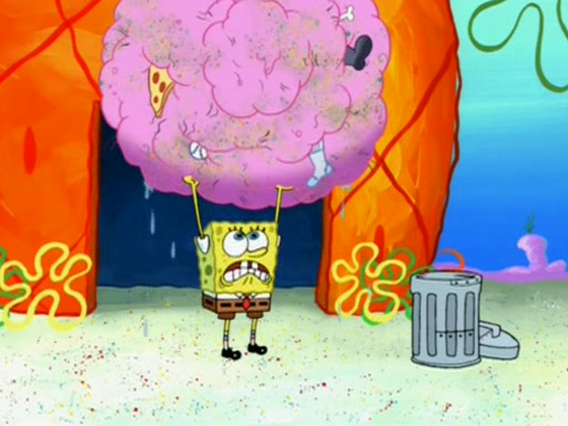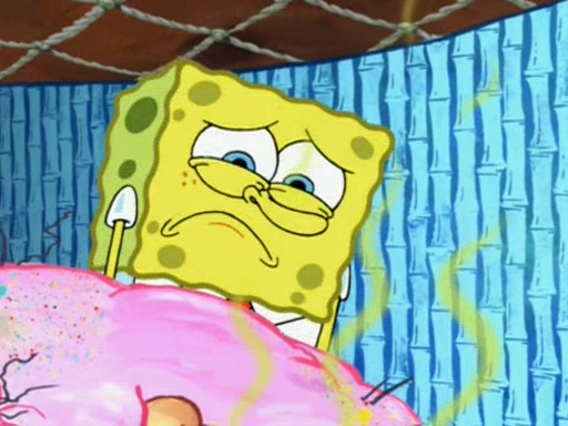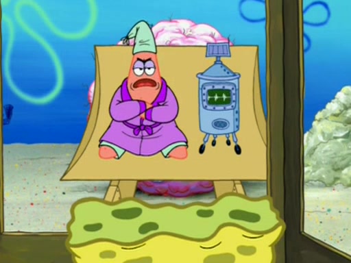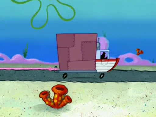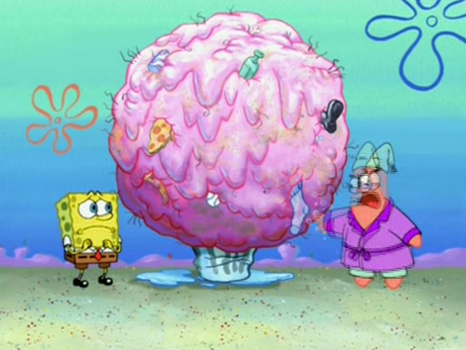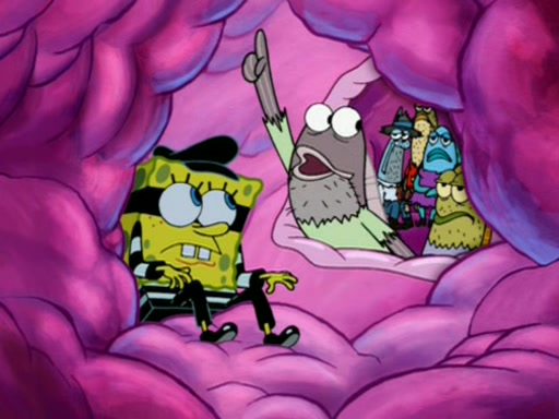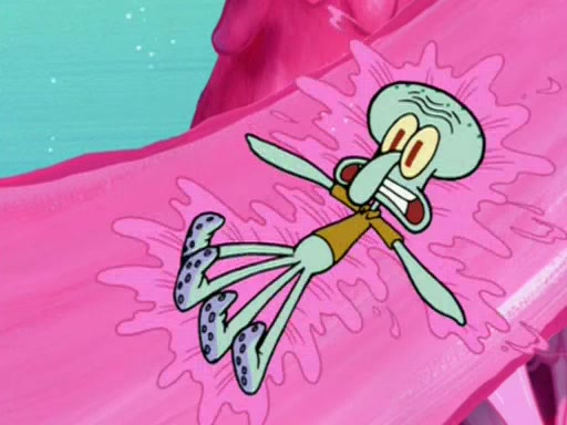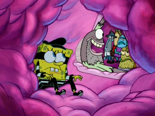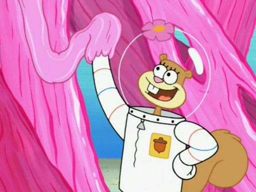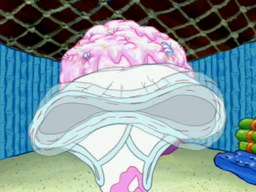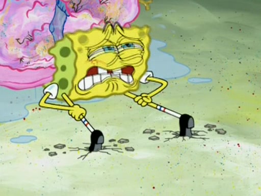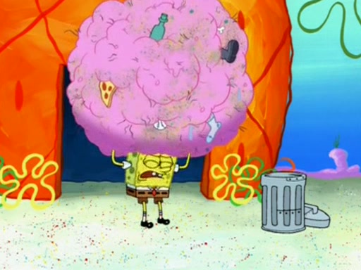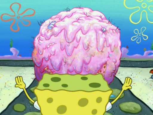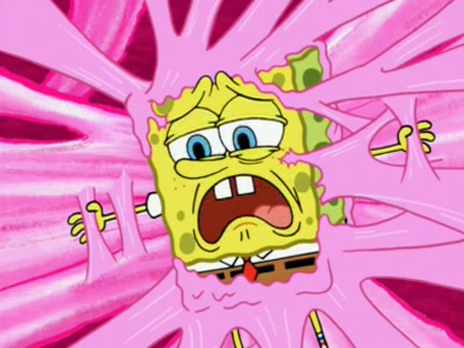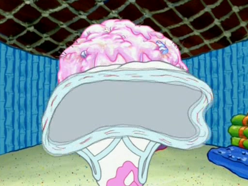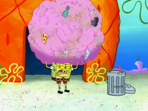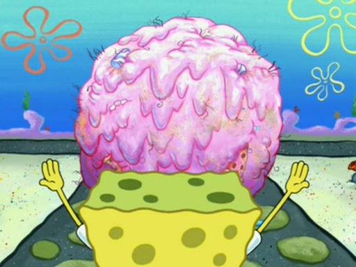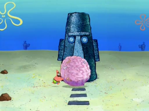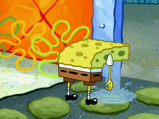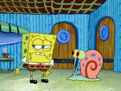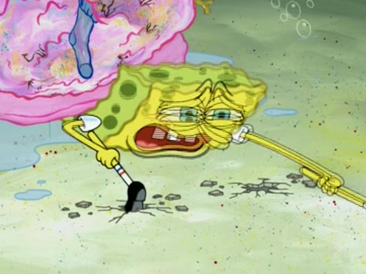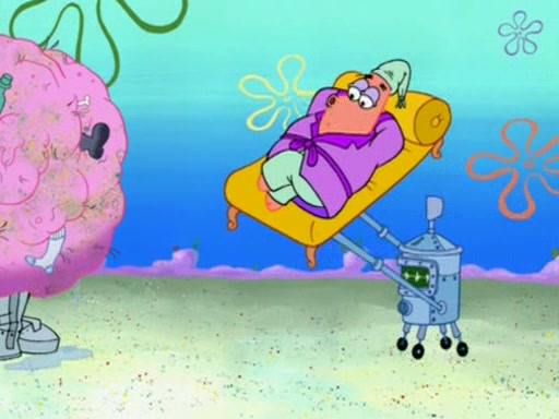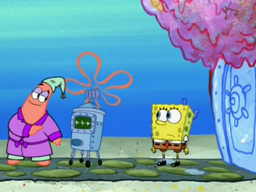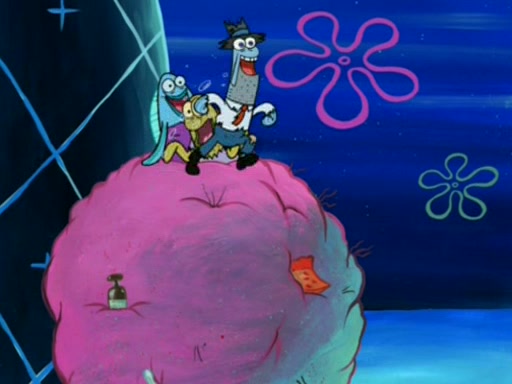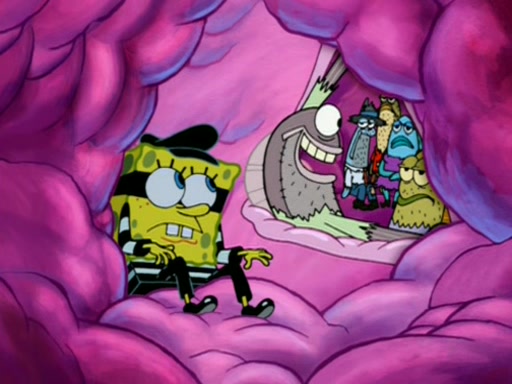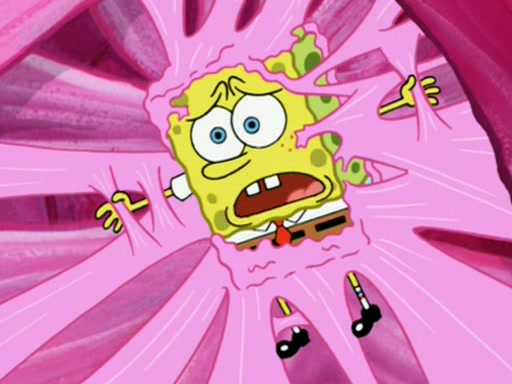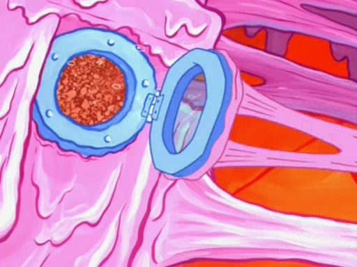On "Best Friend's Day," Patrick gives SpongeBob an enormous wad of used gum he has amassed over his entire lifetime (fondly referred to as "Gummy"), and SpongeBob finds it a better gift than his own (a robotic butler). However, when he takes it inside, he realizes how disgusting it is, and it even starts to scare him, with a pair of underpants crawling out of the gum and saying in a demonic voice, "You're not Patrick!" First, SpongeBob tries to throw it away, but Patrick catches him in doing so, and he says that he was dressing it up with the garbage can. Later, SpongeBob tries to bury Gummy, but Patrick catches him again, and he says that he dug the hole to be able to look at Gummy from below. Patrick insists that it must be displayed properly, and places it above SpongeBob's doorway. SpongeBob next tries to dispose of it in the night, and in the process frees several people who were literally trapped inside it. He tries to pull Gummy off of his house, and fails, destroying the ball and getting stuck to it in the process.