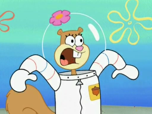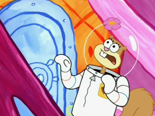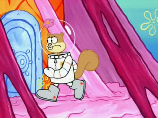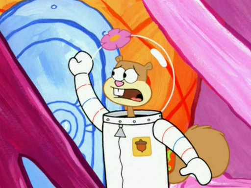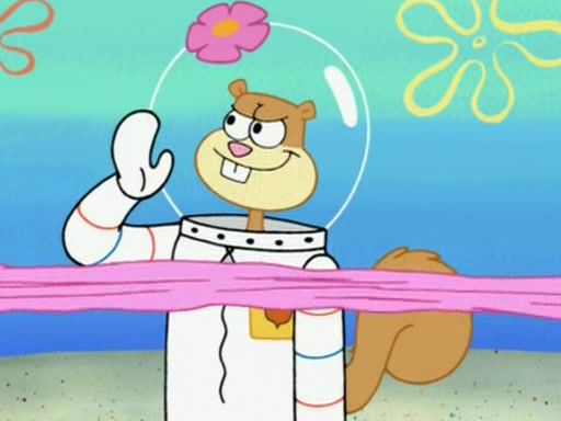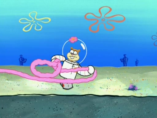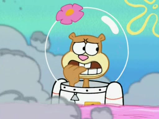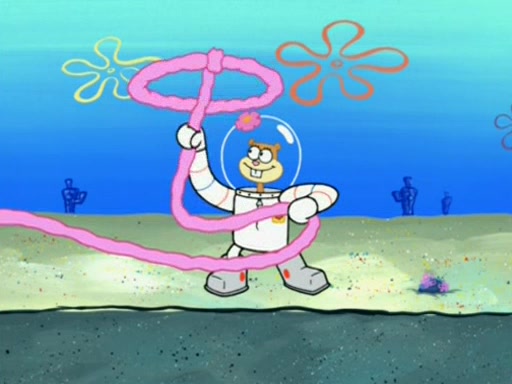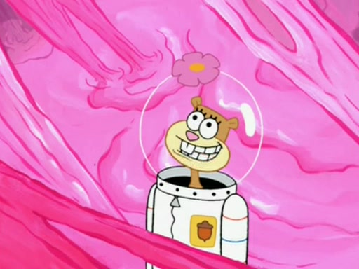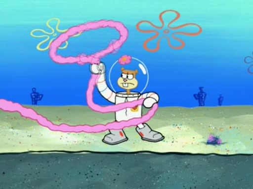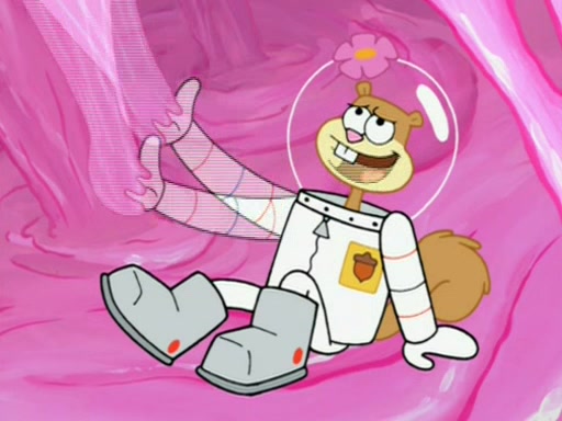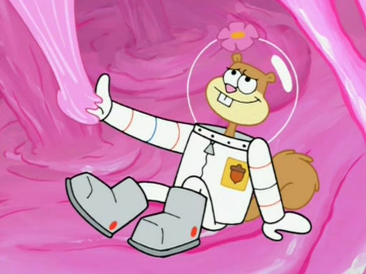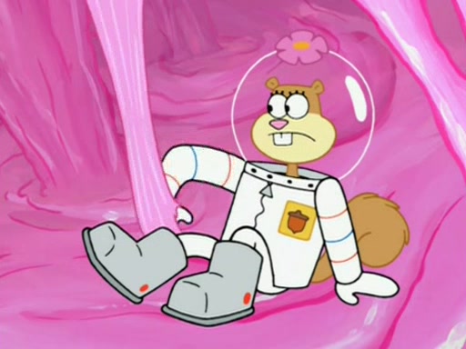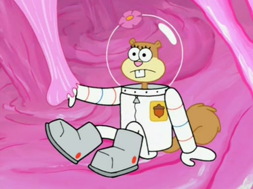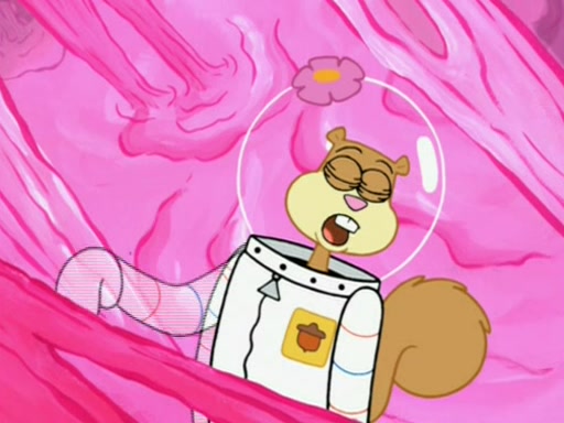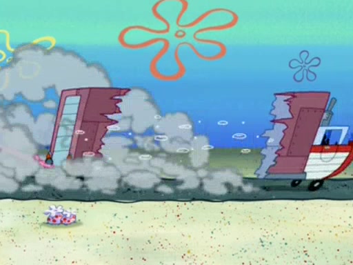 The next day, Sandy visits SpongeBob's house to see it covered in the sticky remains of Gummy, with SpongeBob hanging above his doorway. She tries to free him by lassoing a piece of Gummy onto a passing truck, which is almost able to pull it away, but is ultimately pulled in by it, hitting SpongeBob's house and causing the gum to explode, completely covering the houses of SpongeBob, Squidward and Patrick, and trapping Squidward and Sandy as well. Patrick then appears, and SpongeBob tells him he can have Gummy back. Patrick then wolfs down all of the gum making Patrick obese, freeing SpongeBob, his friends and their houses. However, he then hiccups a massive bubble, which explodes and covers the whole town in gum.