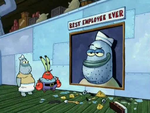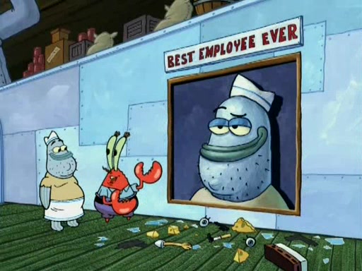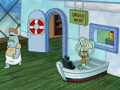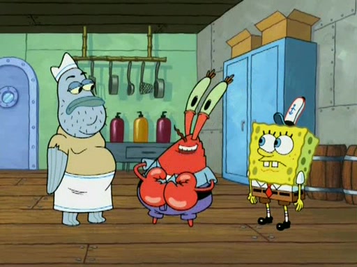 It is a normal day at the Krusty Krab until Jim, the Original Fry Cook, arrives in his golden limousine. He, Mr. Krabs, and Squidward remember back when the Krusty Krab had "class." Jim makes a Krabby Patty and SpongeBob eats it and loves it. He wants to cook like Jim, and Jim says not to step on the patty, since the customers run over a Krabby Patty made by SpongeBob when headed to greet Jim. He then gives SpongeBob real lessons. But SpongeBob can't meet Jim's standards. So SpongeBob decides to resign and give his job to Jim. Jim tells SpongeBob he quit because Mr. Krabs laughed at him when he asked for a raise. Mr. Krabs reveals that SpongeBob has one thing Jim doesn't have: he's cheap! Jim tells SpongeBob that he could be an even greater frycook, but only if he leaves the Krusty Krab which he calls a dump. SpongeBob says that the restaurant isn't a dump. Mr. Krabs says it is a dump, but it's his dump.