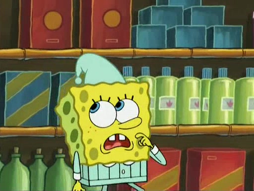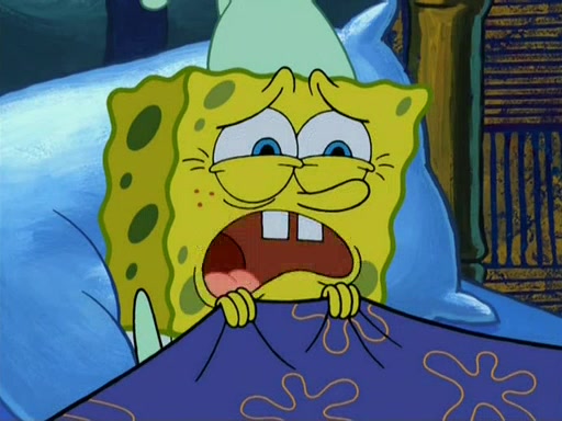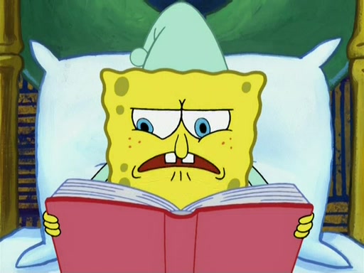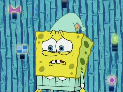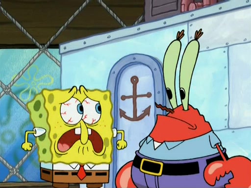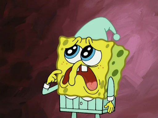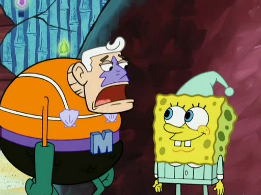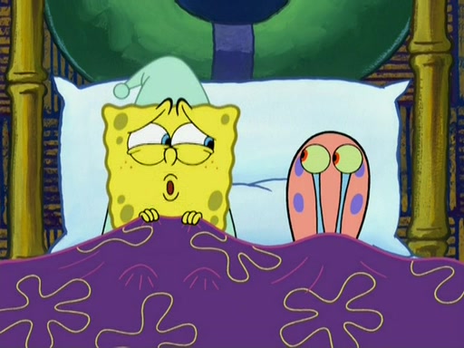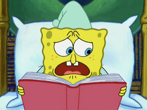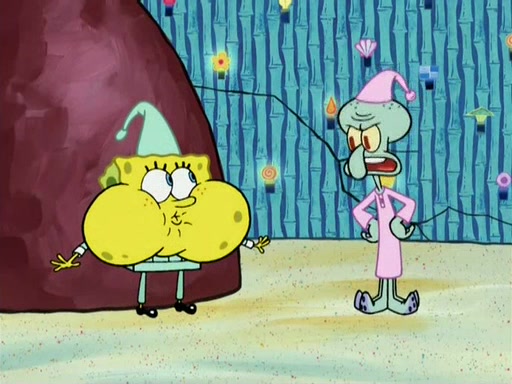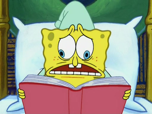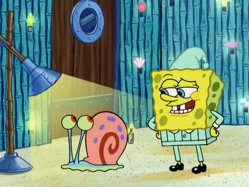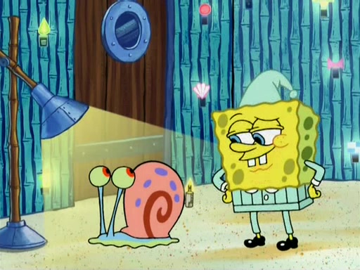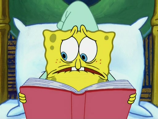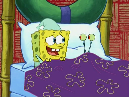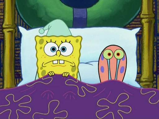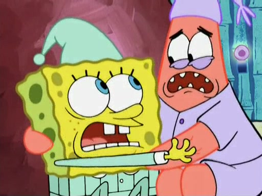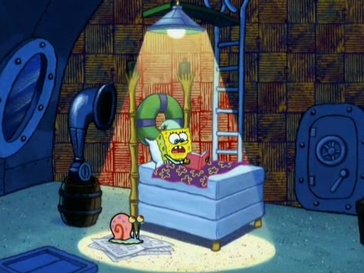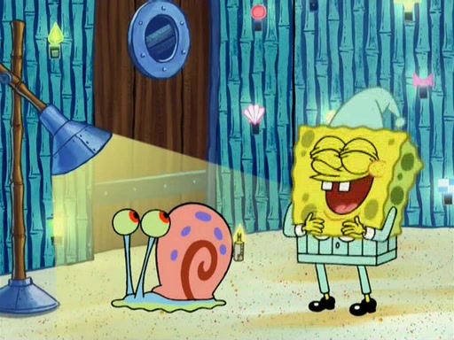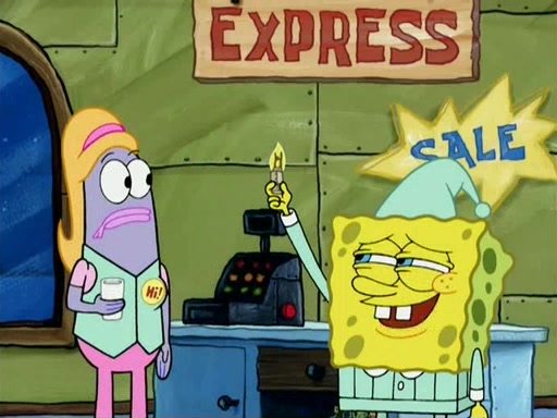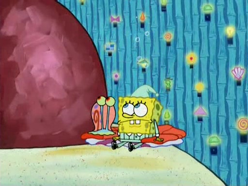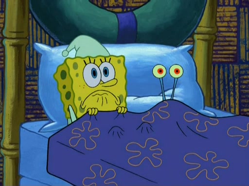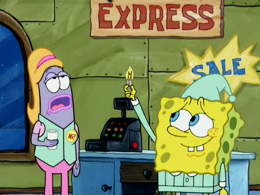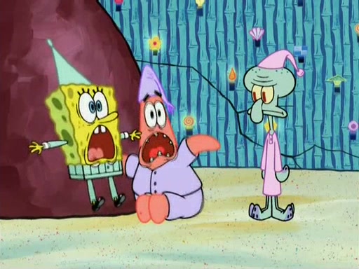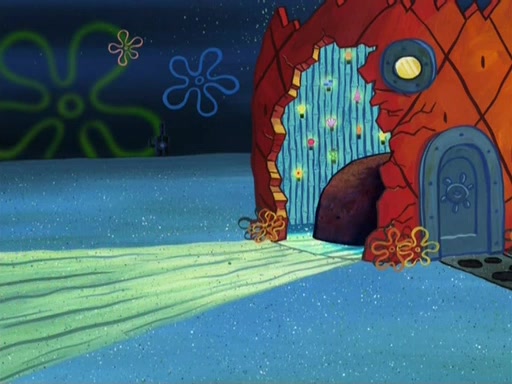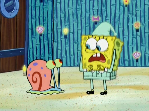 SpongeBob reads a scary book before bedtime. Because of that he sees scary creatures when he turns off the light (Such as the chair as a monstrous brain beast, and coral branch tapping the window as a monsters hand). When at the Krusty Krab, he gets terrified of a pot on his head, then he tells Mr. Krabs that if he blinks, he sees something scary, he then tries not to blink, but doesn't work, he then gets spooked by the dark in the freezer when Mr. Krabs wanted him to get some fresh patties. Mr. Krabs tells SpongeBob to get a night light so he won't be scared of the dark. However, he buys more when he finds more darkness in the house. Eventually, there are thousands of night lights in every room.
