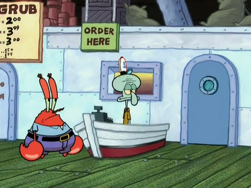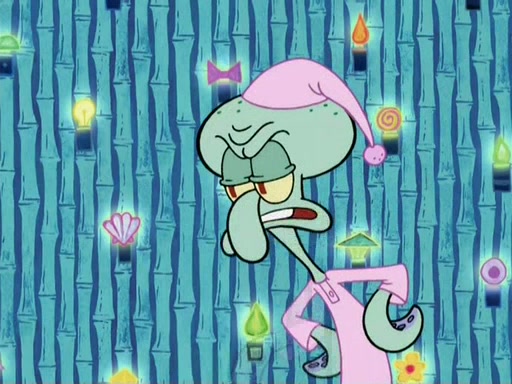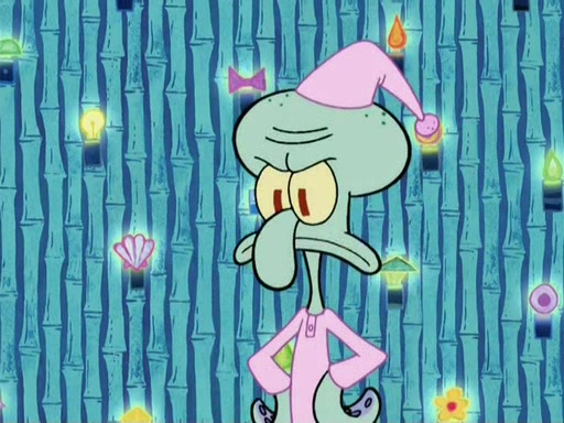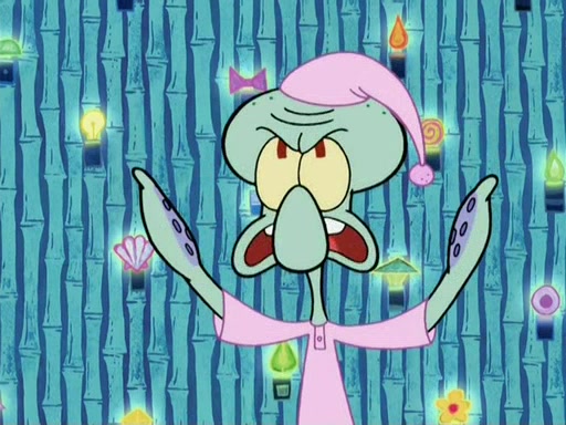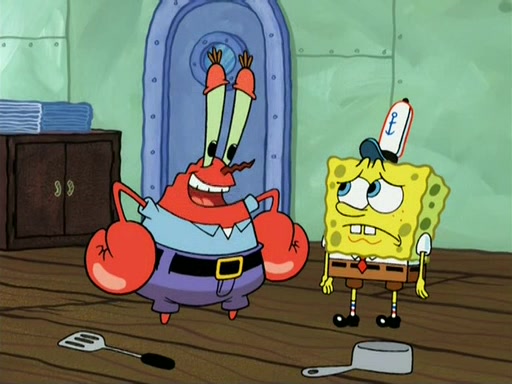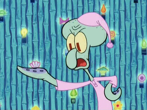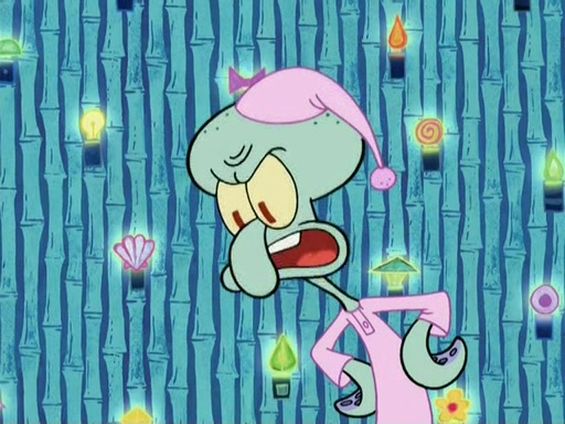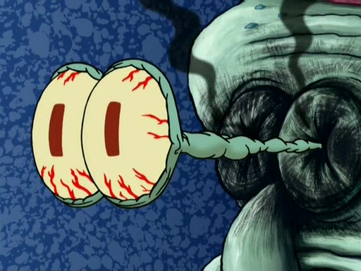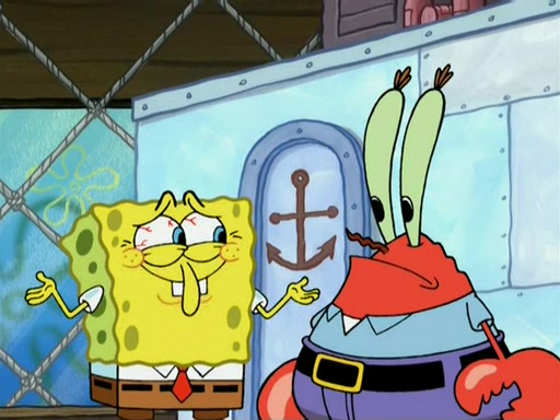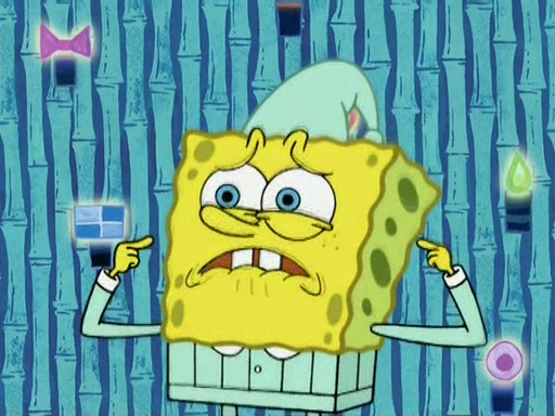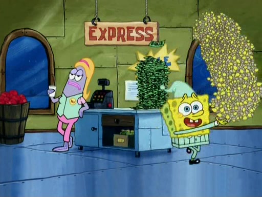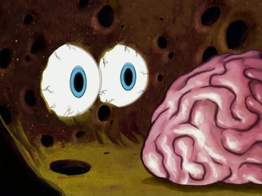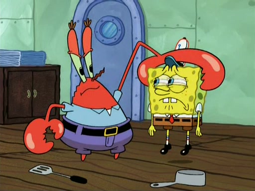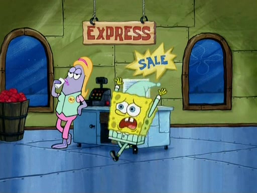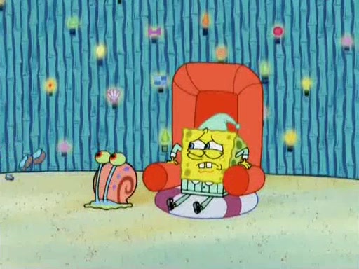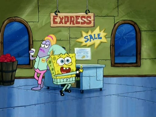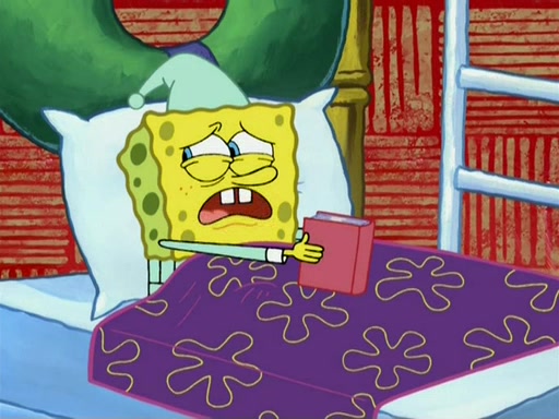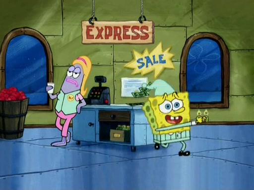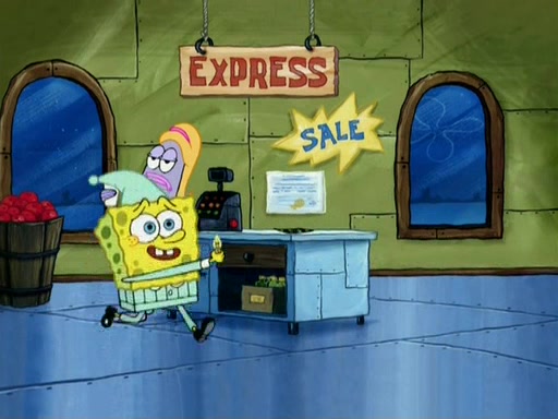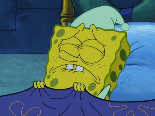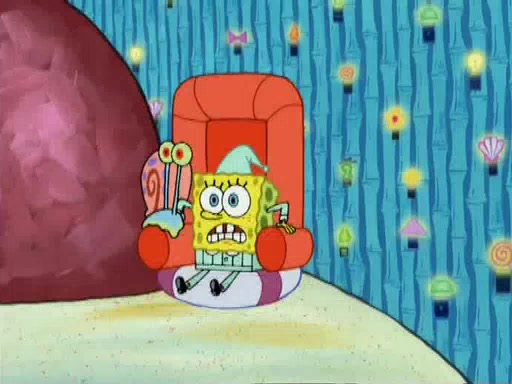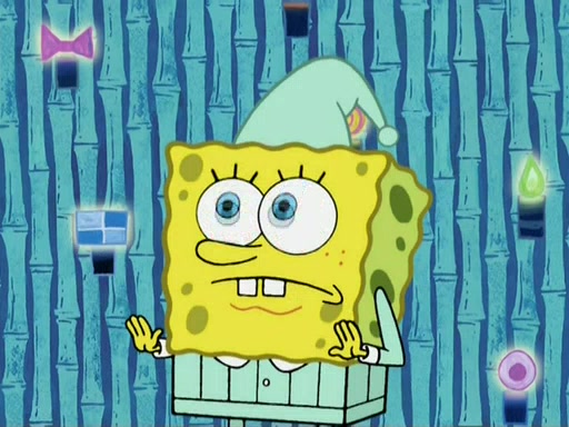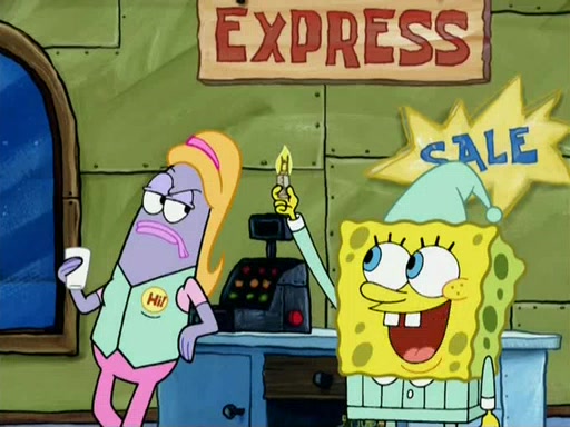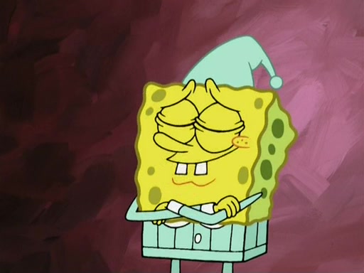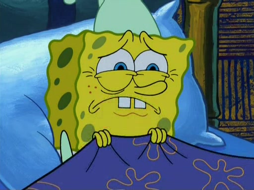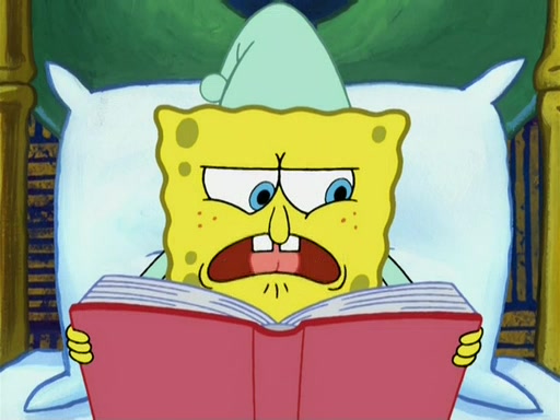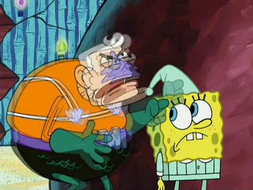 SpongeBob reads a scary book before bedtime. Because of that he sees scary creatures when he turns off the light (Such as the chair as a monstrous brain beast, and coral branch tapping the window as a monsters hand). When at the Krusty Krab, he gets terrified of a pot on his head, then he tells Mr. Krabs that if he blinks, he sees something scary, he then tries not to blink, but doesn't work, he then gets spooked by the dark in the freezer when Mr. Krabs wanted him to get some fresh patties. Mr. Krabs tells SpongeBob to get a night light so he won't be scared of the dark. However, he buys more when he finds more darkness in the house. Eventually, there are thousands of night lights in every room.