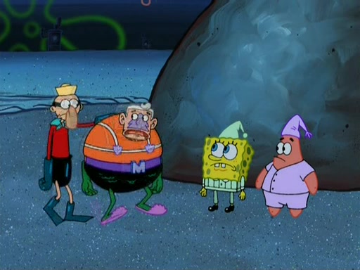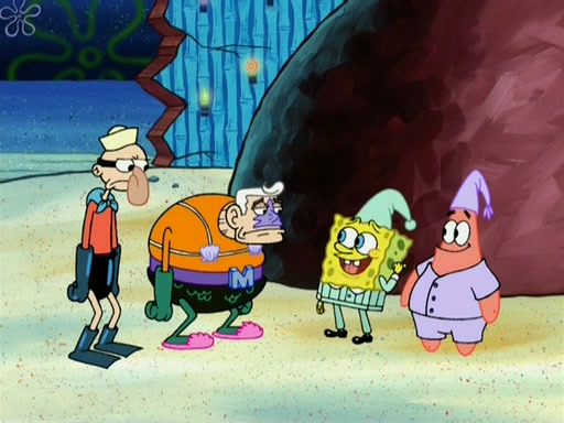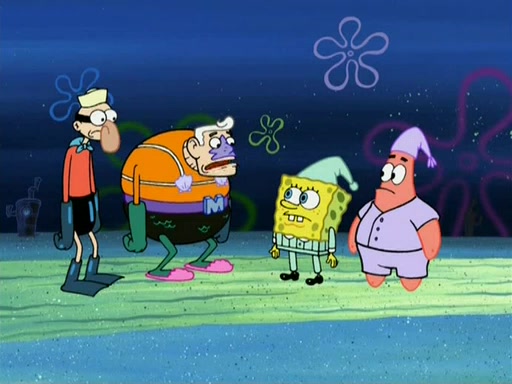 Patrick wakes up and sees SpongeBob's house lit up. He thinks SpongeBob is throwing a party and goes to his house, but SpongeBob warns him about the dark so he brings his rock inside SpongeBob's pineapple. While getting more night lights, Squidward tells them that they have too many lights and that the creepy creatures of the dark are just their imagination. While getting a lighthouse, it makes an M in the sky so Mermaid Man and Barnacle Boy come. Meanwhile, the Moth, one of Mermaid Man's enemies who he has been searching 57 years for, finds the light, but SpongeBob traps him inside the lighthouse, but the Moth carries the lighthouse along with the Pineapple.